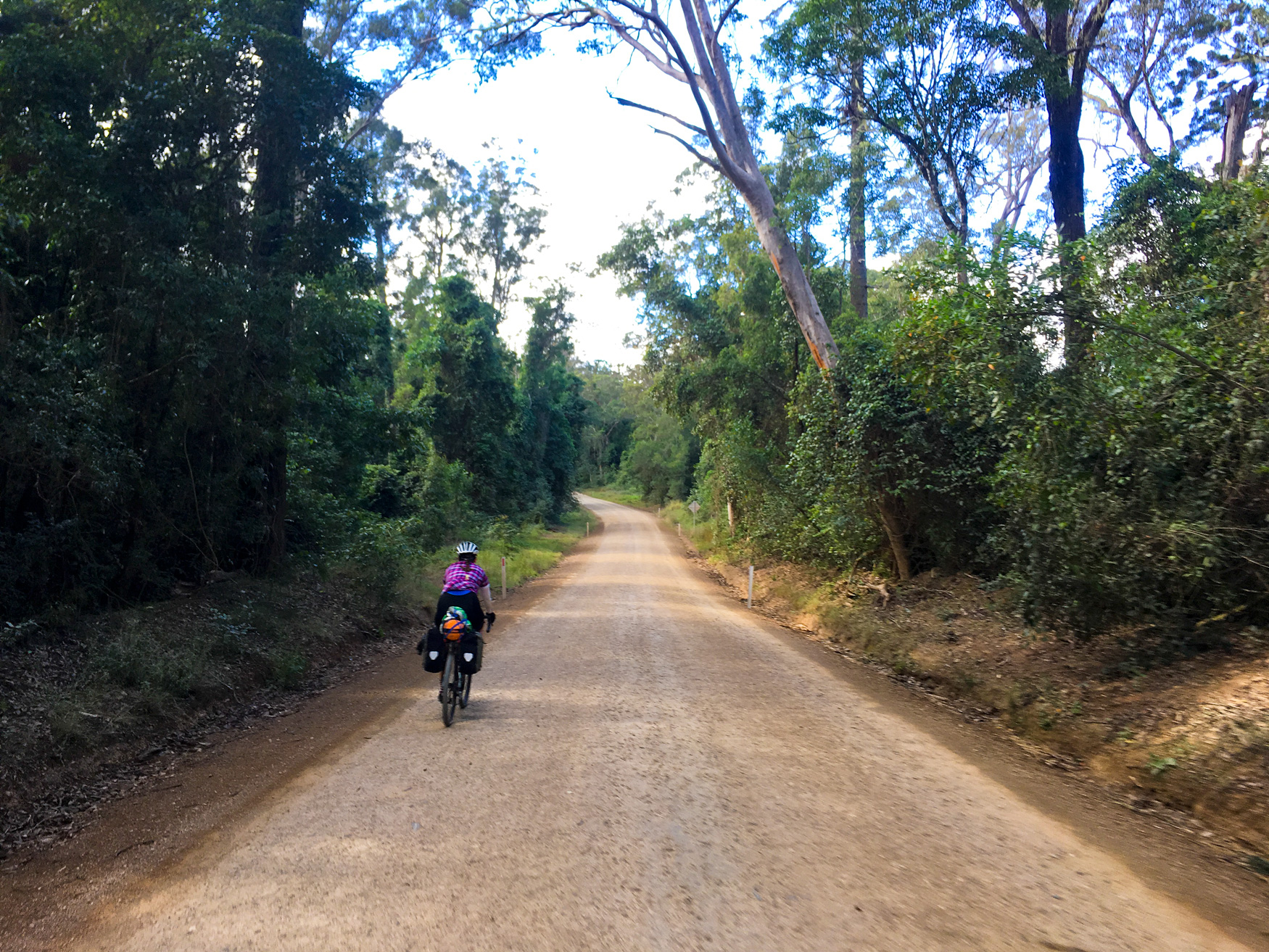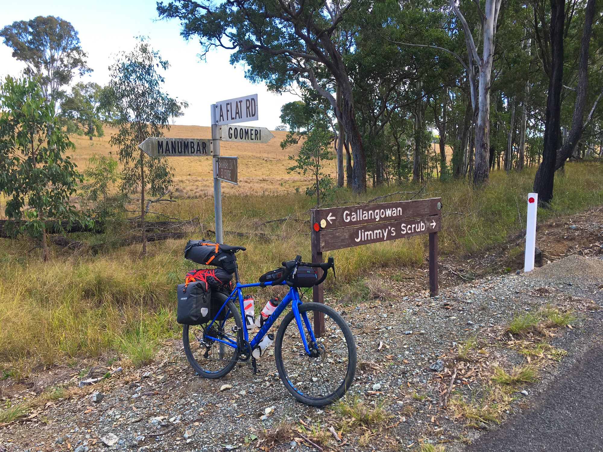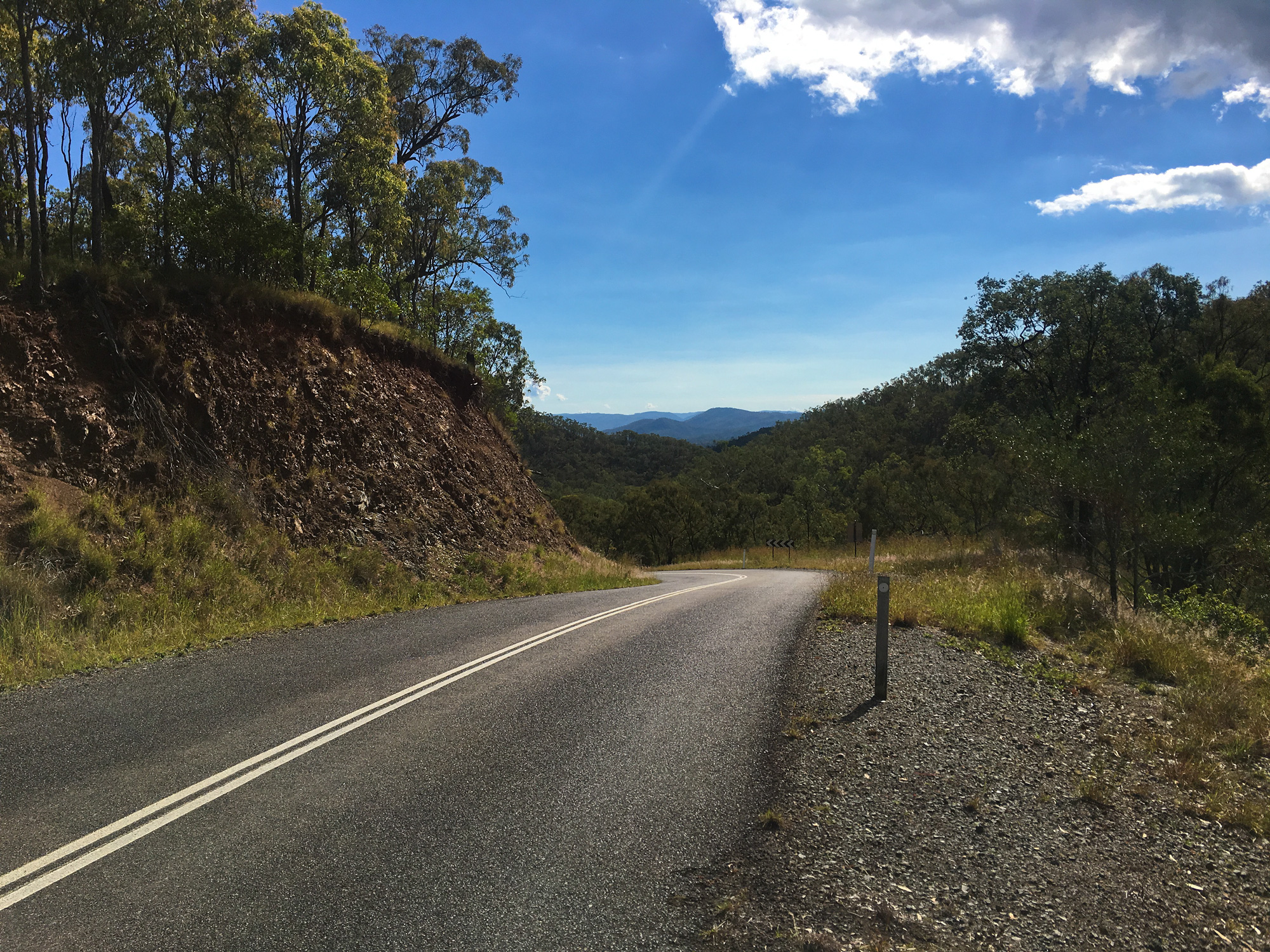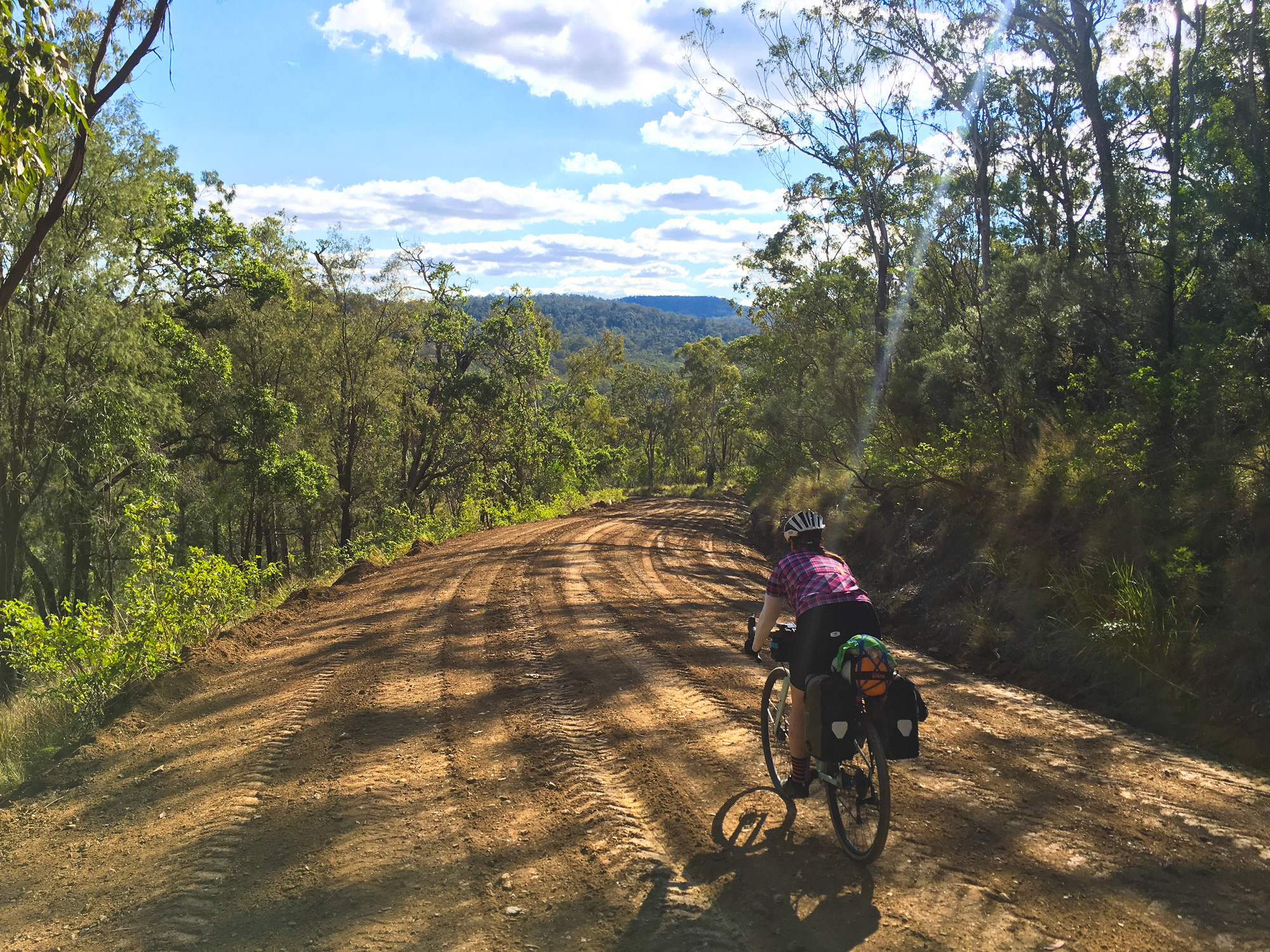 As we were travelling along dirt roads through multiple state forests we lost all track of time and where we were in relation to Jimna as there was no landmarks to gauge references because of the to the thick forest scrub. Jimna always seemed to be “Just around the corner”. But once the gravel road turned to tarmac that’s when we knew Jimna was actually just around the corner…. which we passed very quickly as we made our way down the hill to Sunday Creek road. This section of road was where all the elevation, steep climbs and steep descents were hiding. And that was confirmed a couple hundred meters after the turn off when we came to a 20% wall that wasn’t the ideal for our loaded gravel bikes.