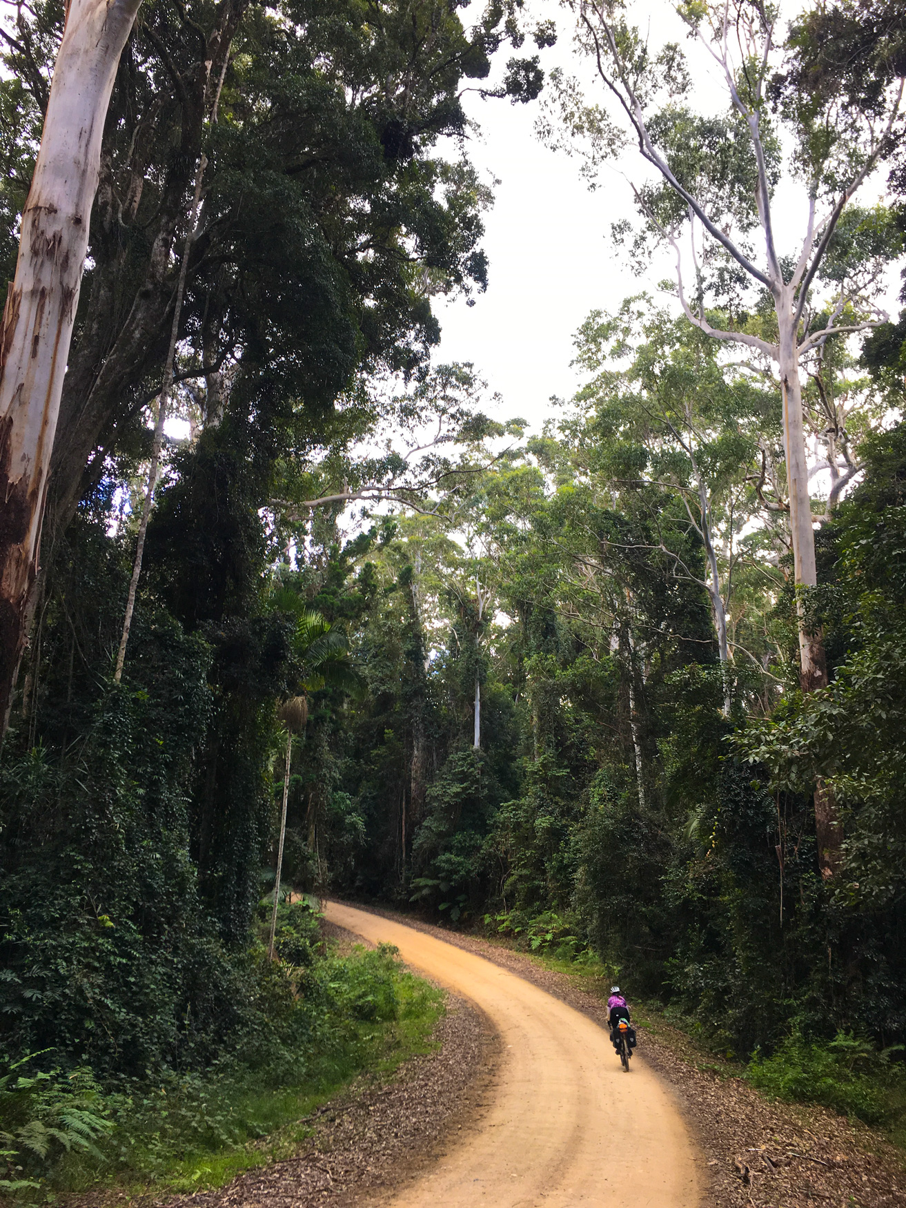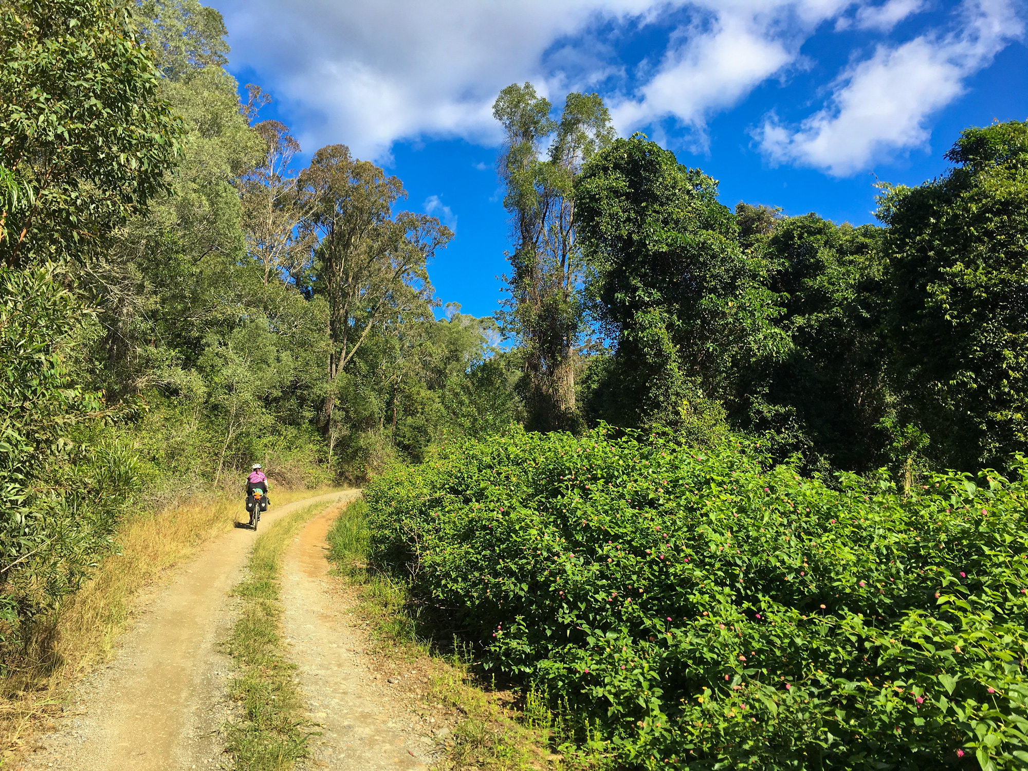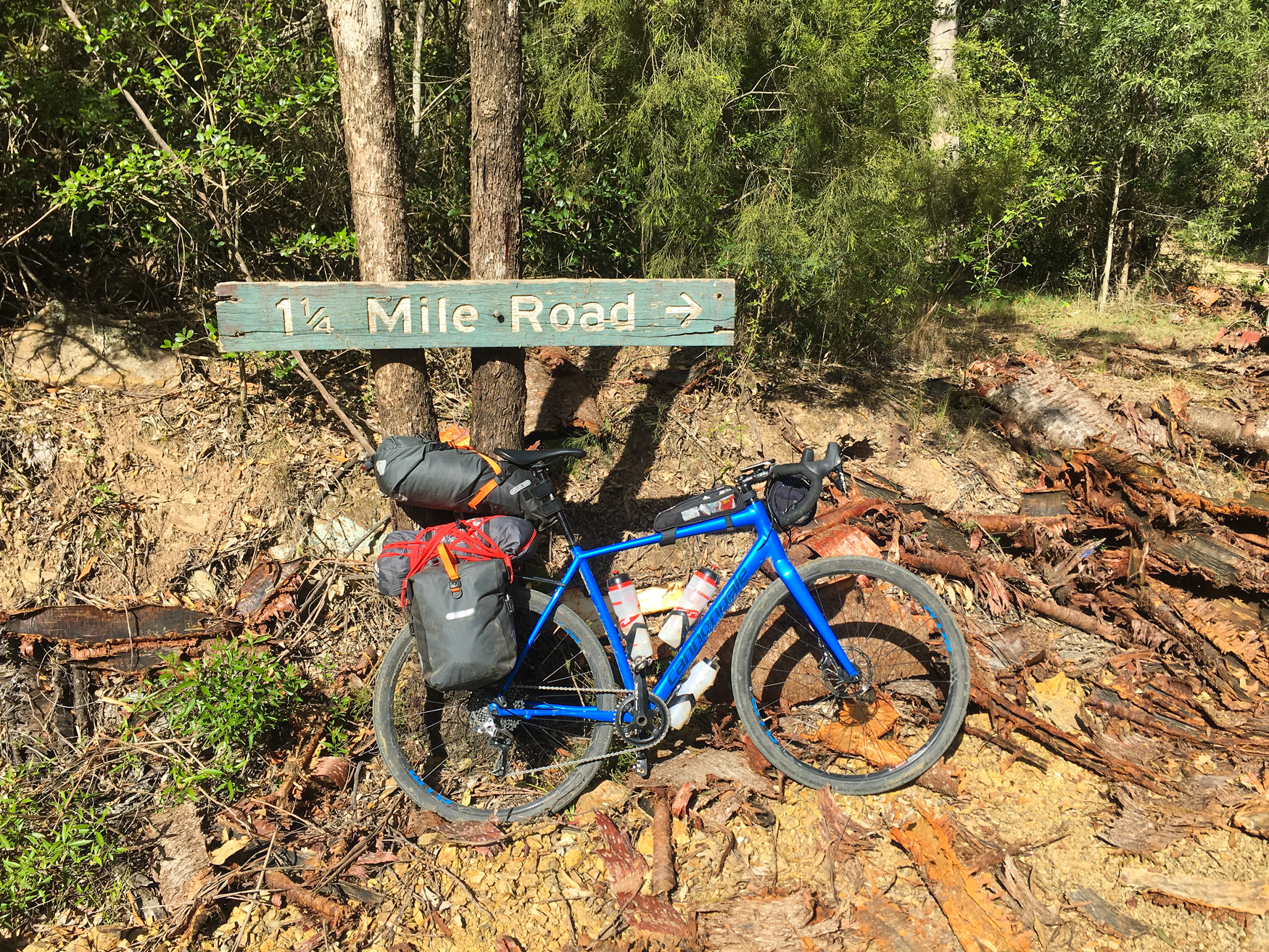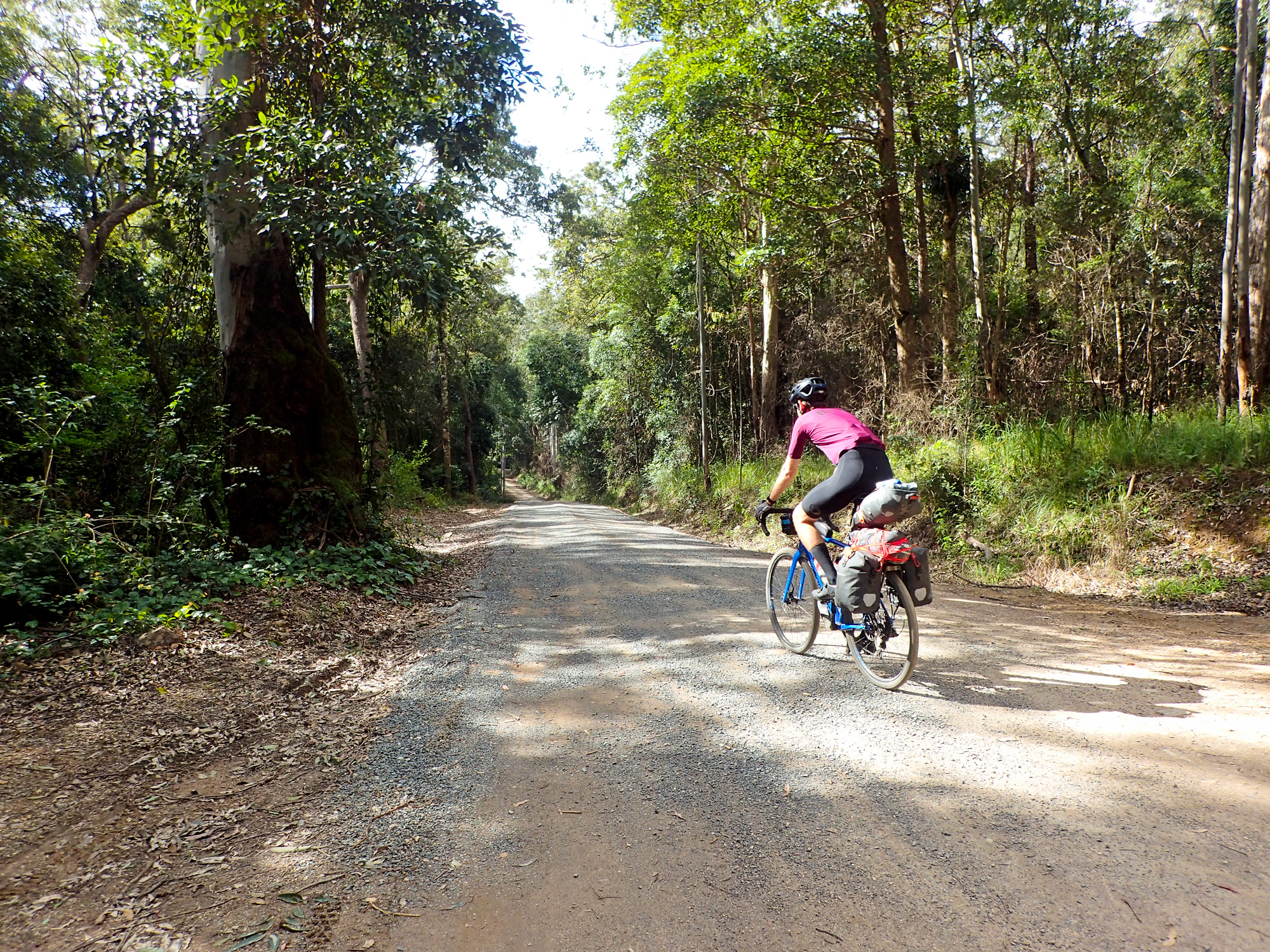 As we were travelling along dirt roads through multiple state forests we lost all track of time and where we were in relation to Jimna as there was no landmarks to gauge references because of the to the thick forest scrub. Jimna always seemed to be “Just around the corner”. But once the gravel road turned to tarmac that’s when we knew Jimna was actually just around the corner…. which we passed very quickly as we made our way down the hill to Sunday Creek road. This section of road was where all the elevation, steep climbs and steep descents were hiding. And that was confirmed a couple hundred meters after the turn off when we came to a 20% wall that wasn’t the ideal for our loaded gravel bikes.