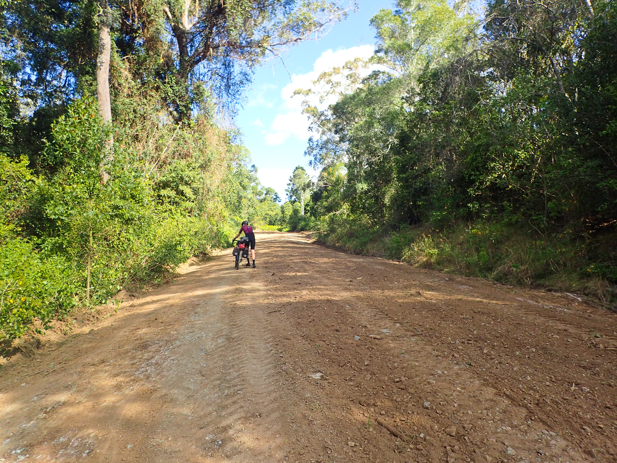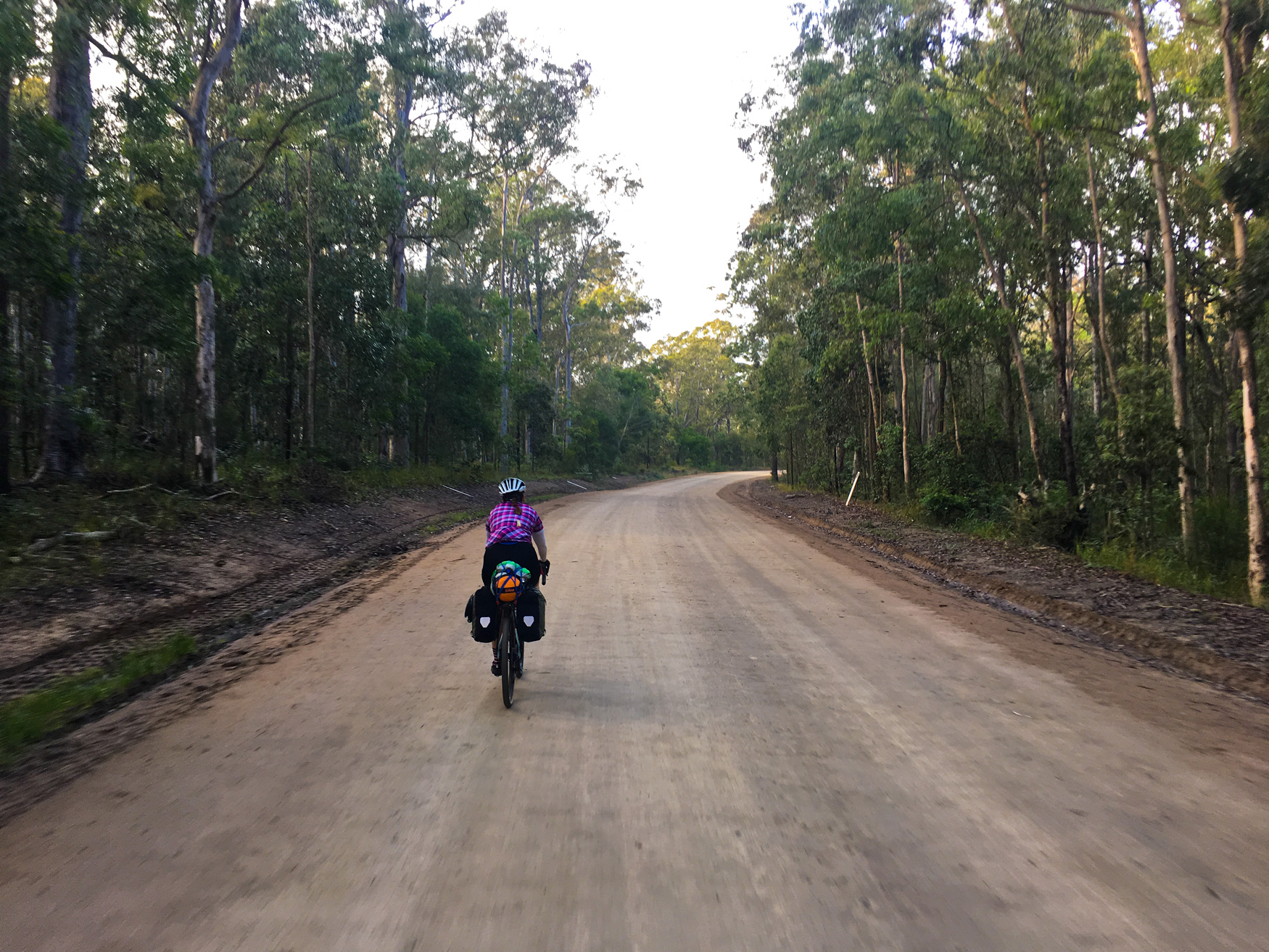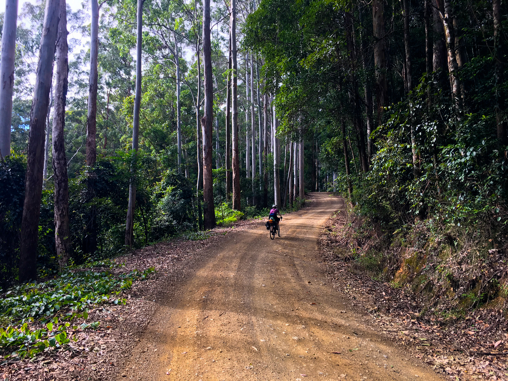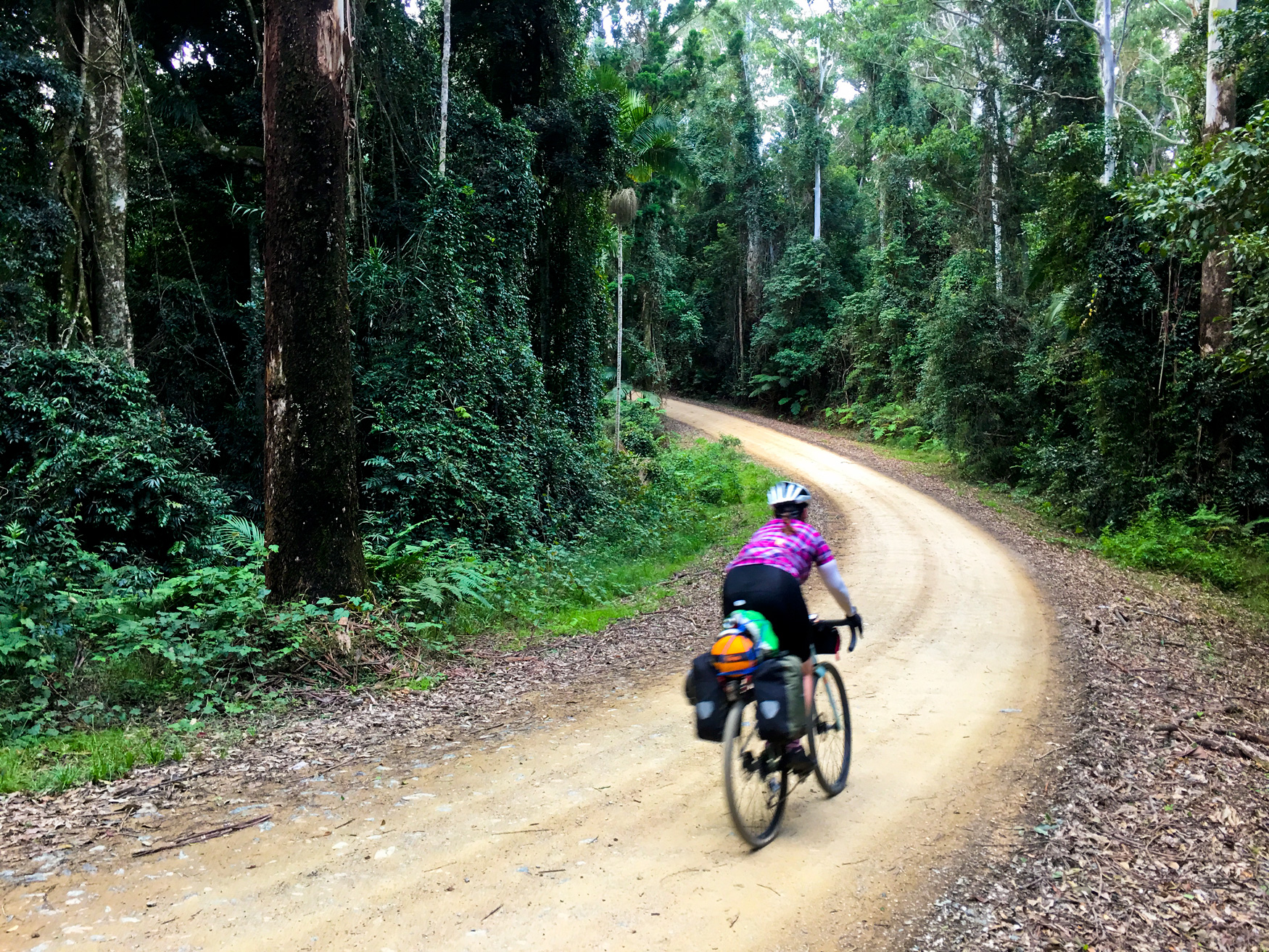 As we were travelling along dirt roads through multiple state forests we lost all track of time and where we were in relation to Jimna as there was no landmarks to gauge references because of the to the thick forest scrub. Jimna always seemed to be “Just around the corner”. But once the gravel road turned to tarmac that’s when we knew Jimna was actually just around the corner…. which we passed very quickly as we made our way down the hill to Sunday Creek road. This section of road was where all the elevation, steep climbs and steep descents were hiding. And that was confirmed a couple hundred meters after the turn off when we came to a 20% wall that wasn’t the ideal for our loaded gravel bikes.