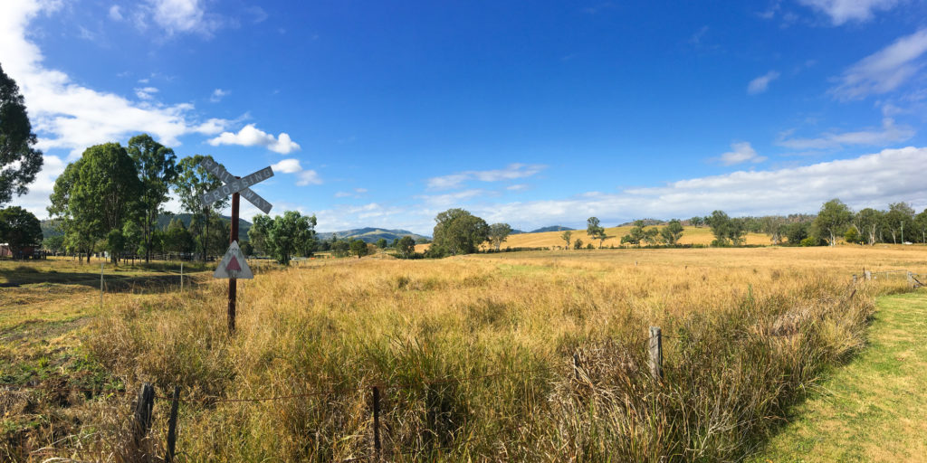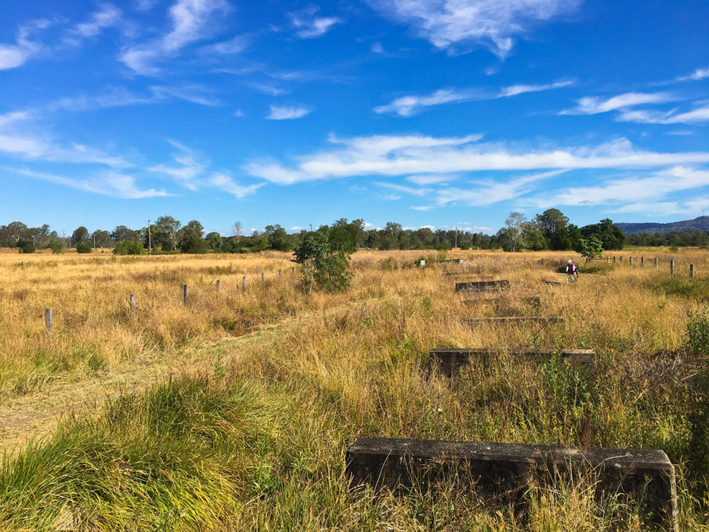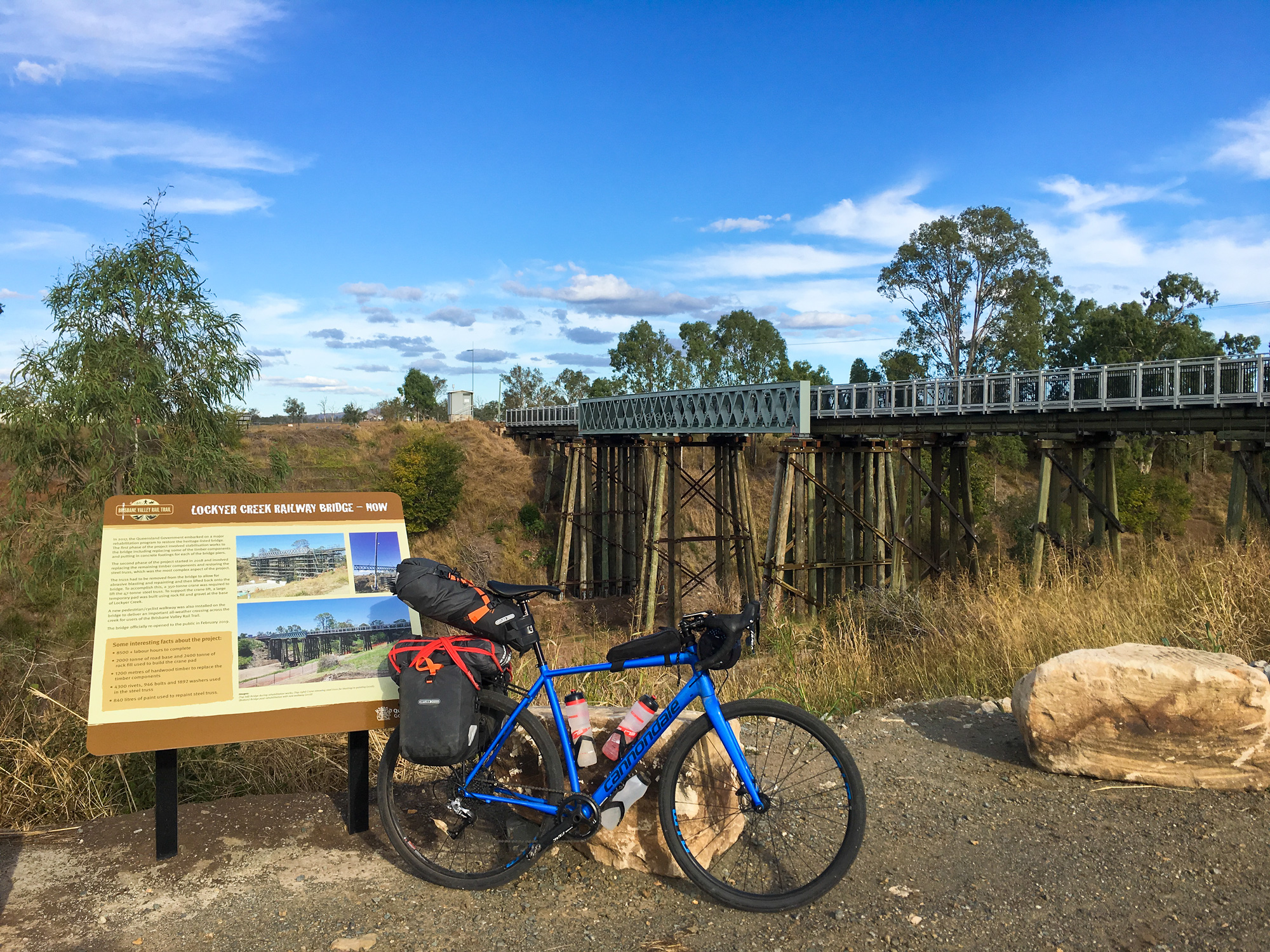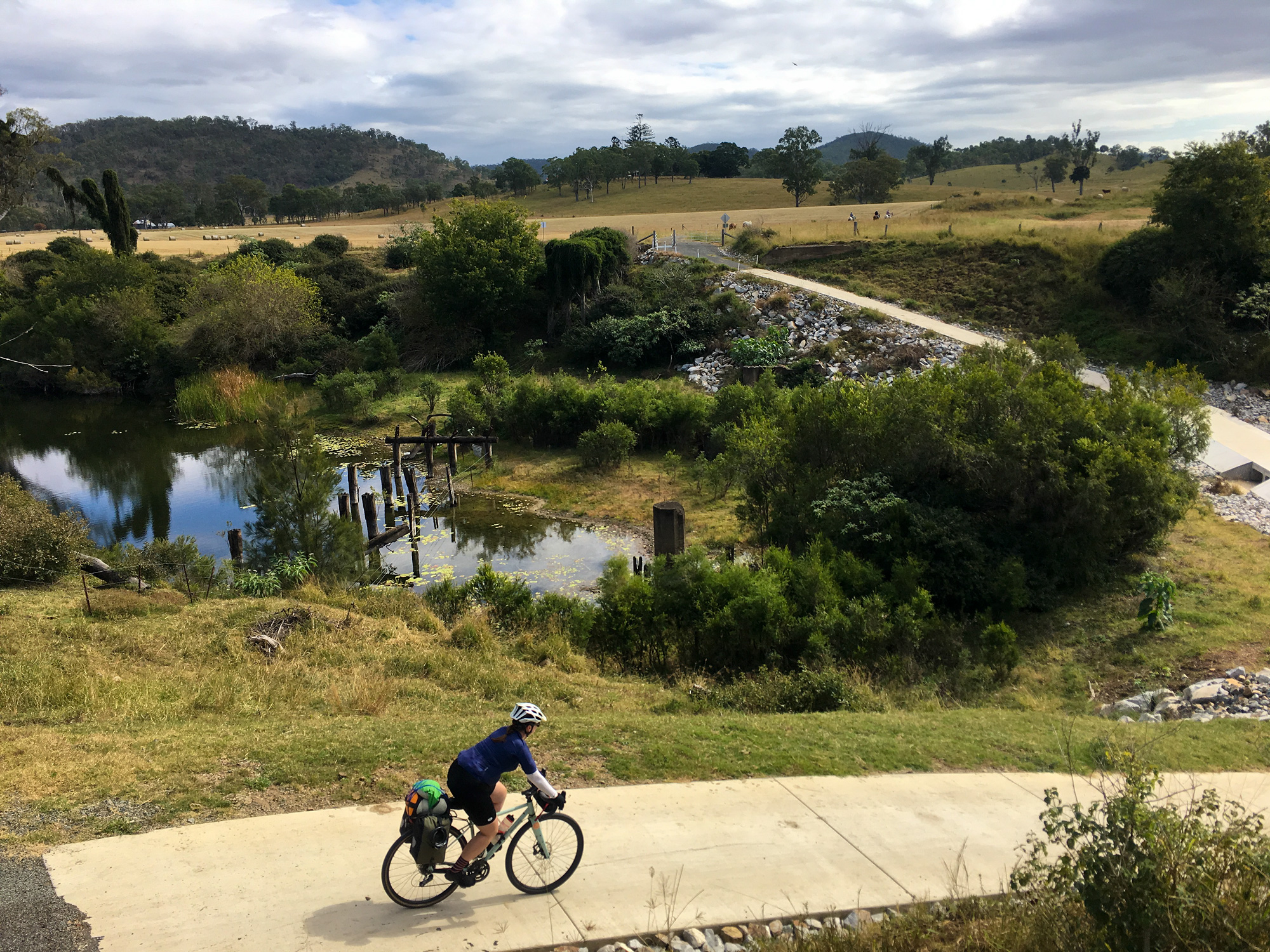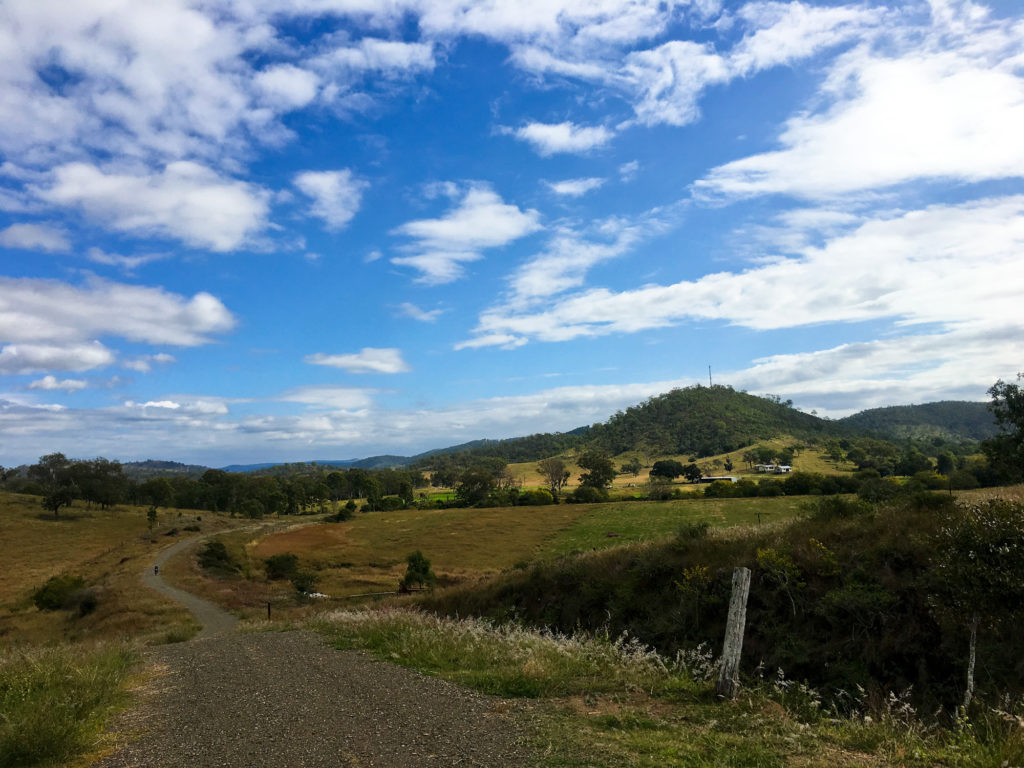 After all the sight seeing from Ipswich and the multiple start photos at Wulkuraka railway station and where the Brisbane Valley Railway Line spurred off the Western Line it was time to start the epic adventure. Day 01 we had planned to ride the 68km to our first night stop at Esk. With the scenic detour from Ipswich that ended up being a nice even 80km. Recent rains had made some sections quite green and lush while other areas were still quite dusty and dry. By the time we arrived at Fernvale for lunch we were already running quite a bit behind schedule which wasn’t helped by a long lunch at the Fernvale Bakery and 3D Tinder at the local pub.