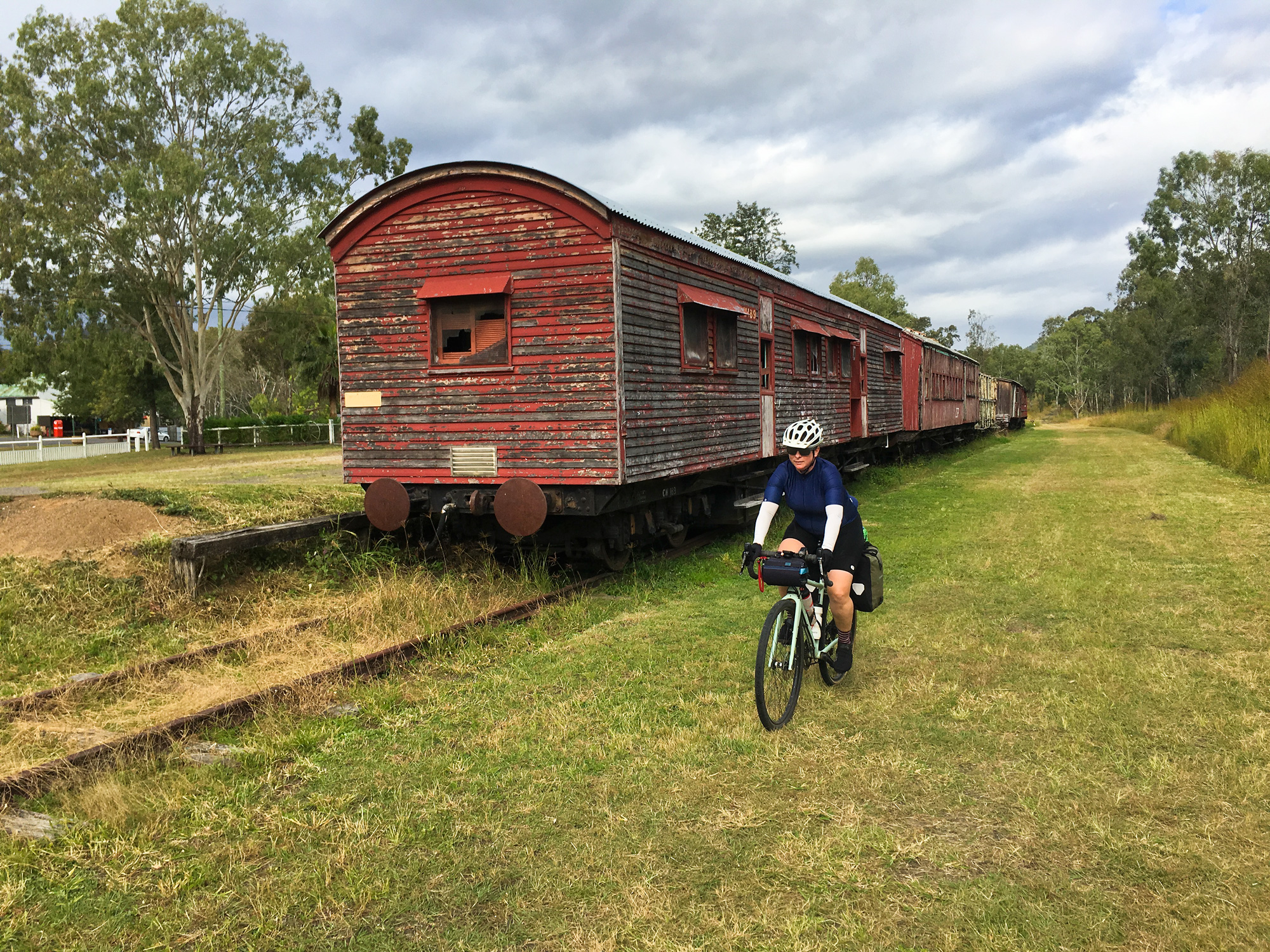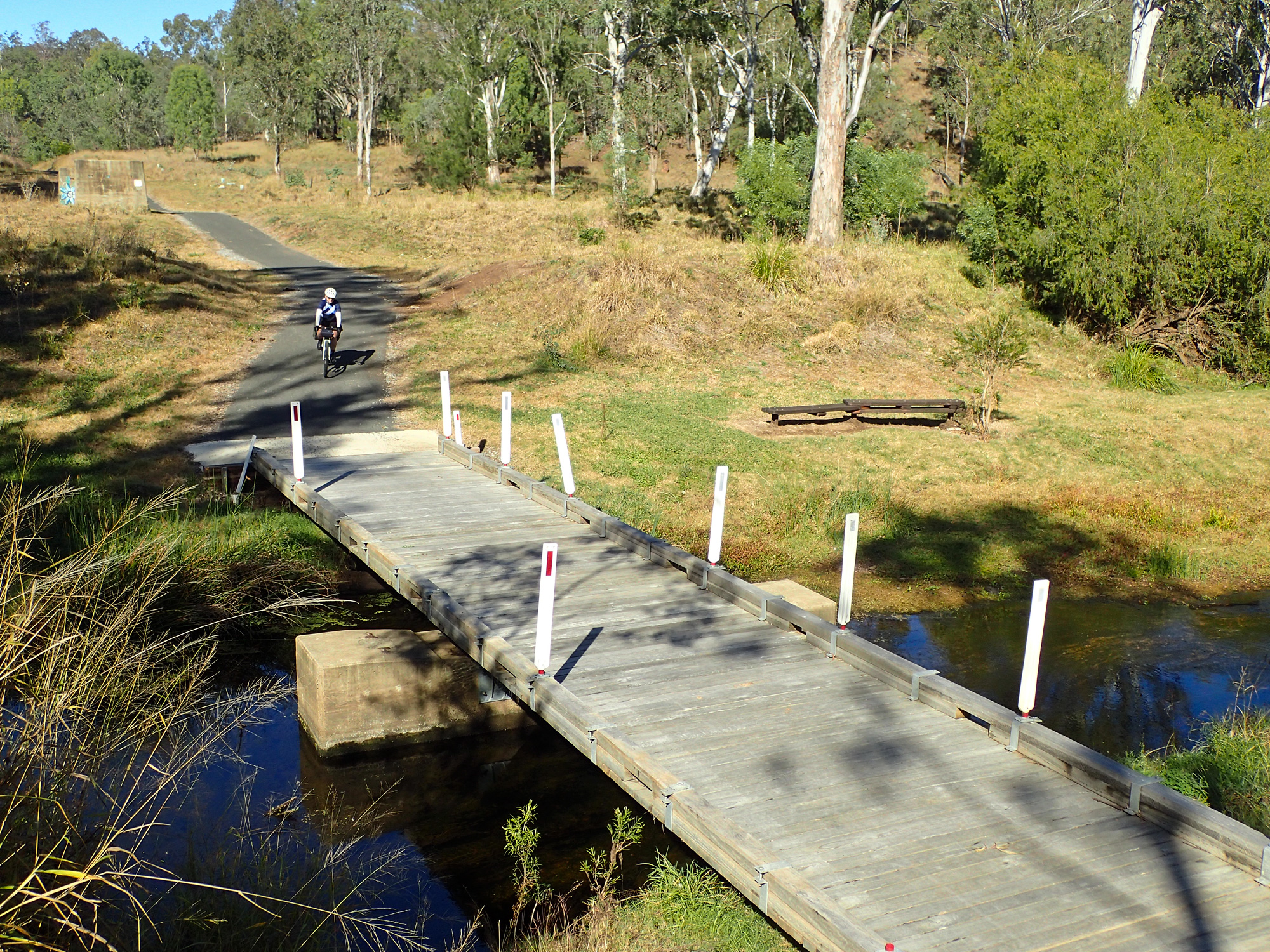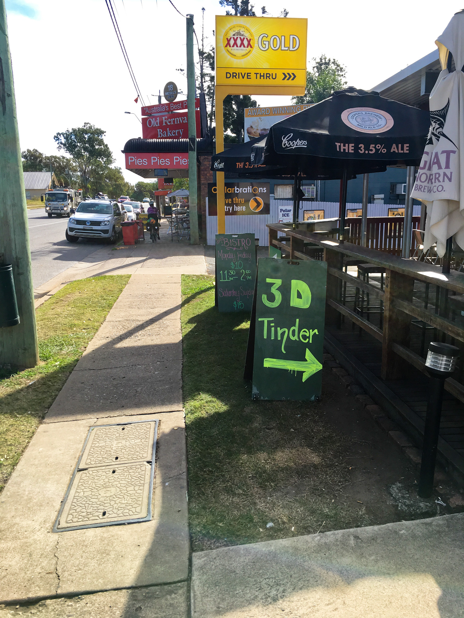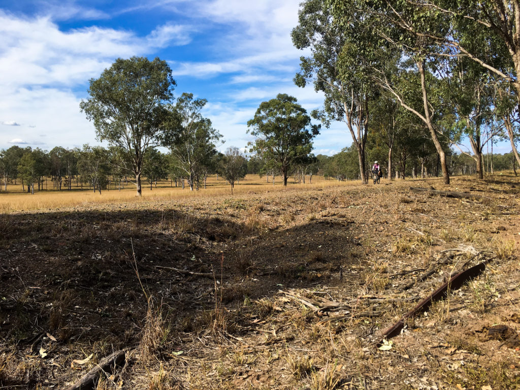After all the sight seeing from Ipswich and the multiple start photos at Wulkuraka railway station and where the Brisbane Valley Railway Line spurred off the Western Line it was time to start the epic adventure. Day 01 we had planned to ride the 68km to our first night stop at Esk. With the scenic detour from Ipswich that ended up being a nice even 80km. Recent rains had made some sections quite green and lush while other areas were still quite dusty and dry. By the time we arrived at Fernvale for lunch we were already running quite a bit behind schedule which wasn’t helped by a long lunch at the Fernvale Bakery and 3D Tinder at the local pub.