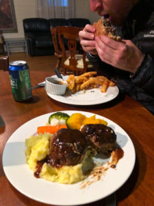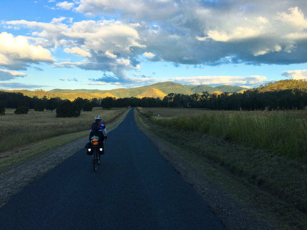 After we departed Fernvale we passed through Lowood and later on came across the newly refurbished and opened Lockyer Creek Railway Bridge. Despite the bridge being constructed in 1885 and the line now part of the rail trail prior to its refurbishment in 2018-2019 it was closed off to pedestrian access. Previously to cross the Lockyer Creek one would have to zig zag their way down, cross the stepping stones (or as Luke would yell “SPEED.. SEND IT! POWER!!! SHIT WRONG GEAR”) and zig zag up the other side to rejoin and continue along the rail trail. Coming into Cominya which is the start of the long climb up to Mount Hallen the winter sun was already getting quite low in the sky (even less light was available as we rode through the bushland) and by the time we got to the top of Mount Hallen it was starting set on us so the race was on to get to Esk before night fall. As we descended into Esk dusk had well and truly started. It was a good thing that we weren’t camping the first night as we were avoiding having to set up the tent after such a short ride. As we had a motel room we had a shower (which had a footrest in the shower much to the amazement of Bronwyn) and then headed off to the pub for a good feed. The good thing about country pubs is that you always get bang for buck compared to in Brisbane.