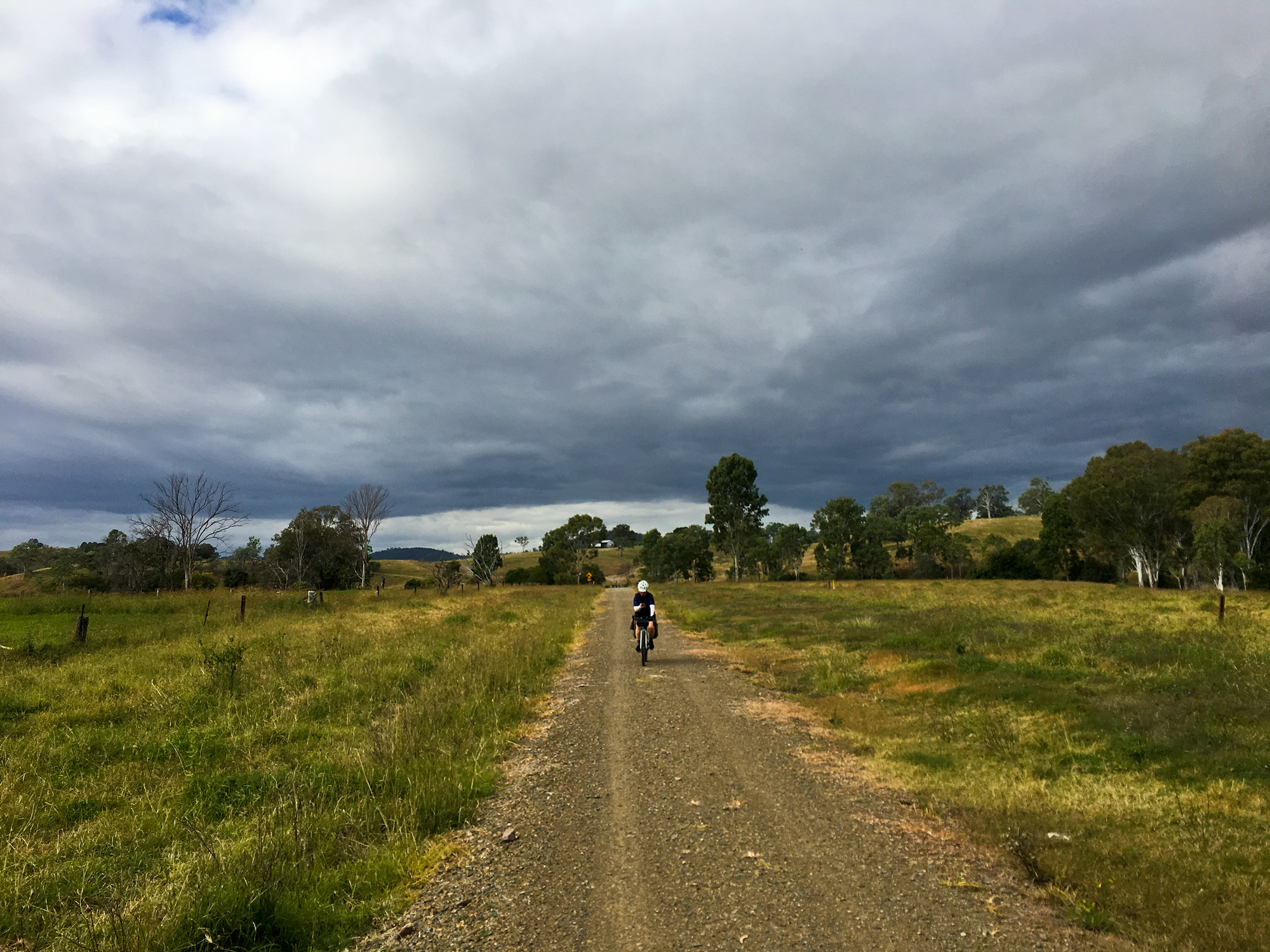 A few kilometers south of Moore was when we saw the first signs of the storm developing behind us but everything was still looking good ahead of us and on the radar. We arrived at Moore for lunch and to top up on liquids and food as the next stop was going to be either Blackbutt or if we were running late for time – Yarraman. The whole route from Moore to Blackbutt was just green grass and green trees as far as you could see. A nice reminder of how good the area is to ride when there’s been a constant amount of rain fall in the area. This would be a far cry different in the following months as very large bushfires ravaged the landscape around Lineville and all the way up the range to Benarkin on and around the rail trail. In fact the only way in to fight the fires in the valley was via the rail trail. As we started the climb from Linville to Blackbutt the temperature was slowly dropping from around 19 degrees to the 15 degrees when we arrived at Blackbutt as the sun slowly went down.
