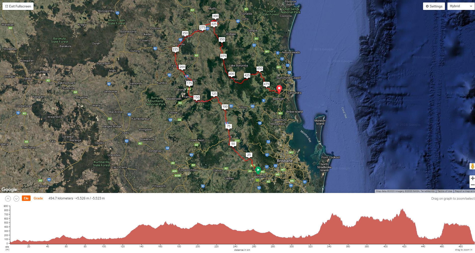 The original plan was to catch the train from Brisbane to Wulkuraka and ride to Landsborough via Kilkivan/Kenilworth/Maleny and then catch the train back to Brisbane with a couple ‘rest’ days riding around the Yarraman and Kenilworth state and national forests. It was estimated to be about 500km in length and 5500m of elevation gain (+ the exploration rides at Yarraman and Kenilworth).