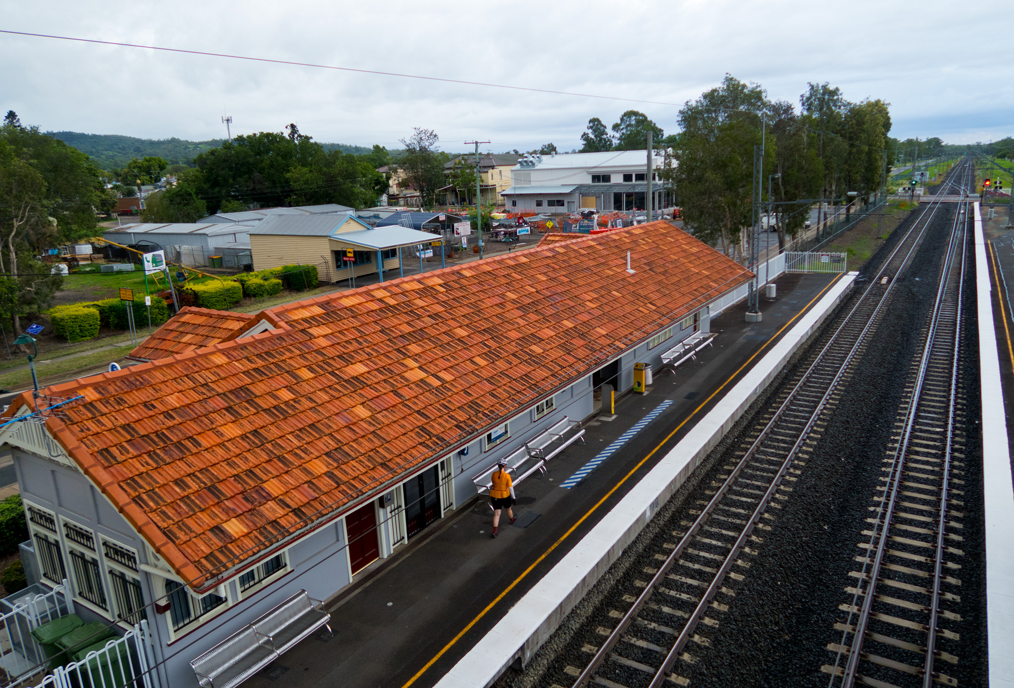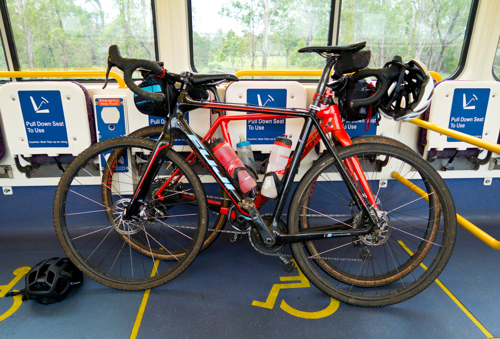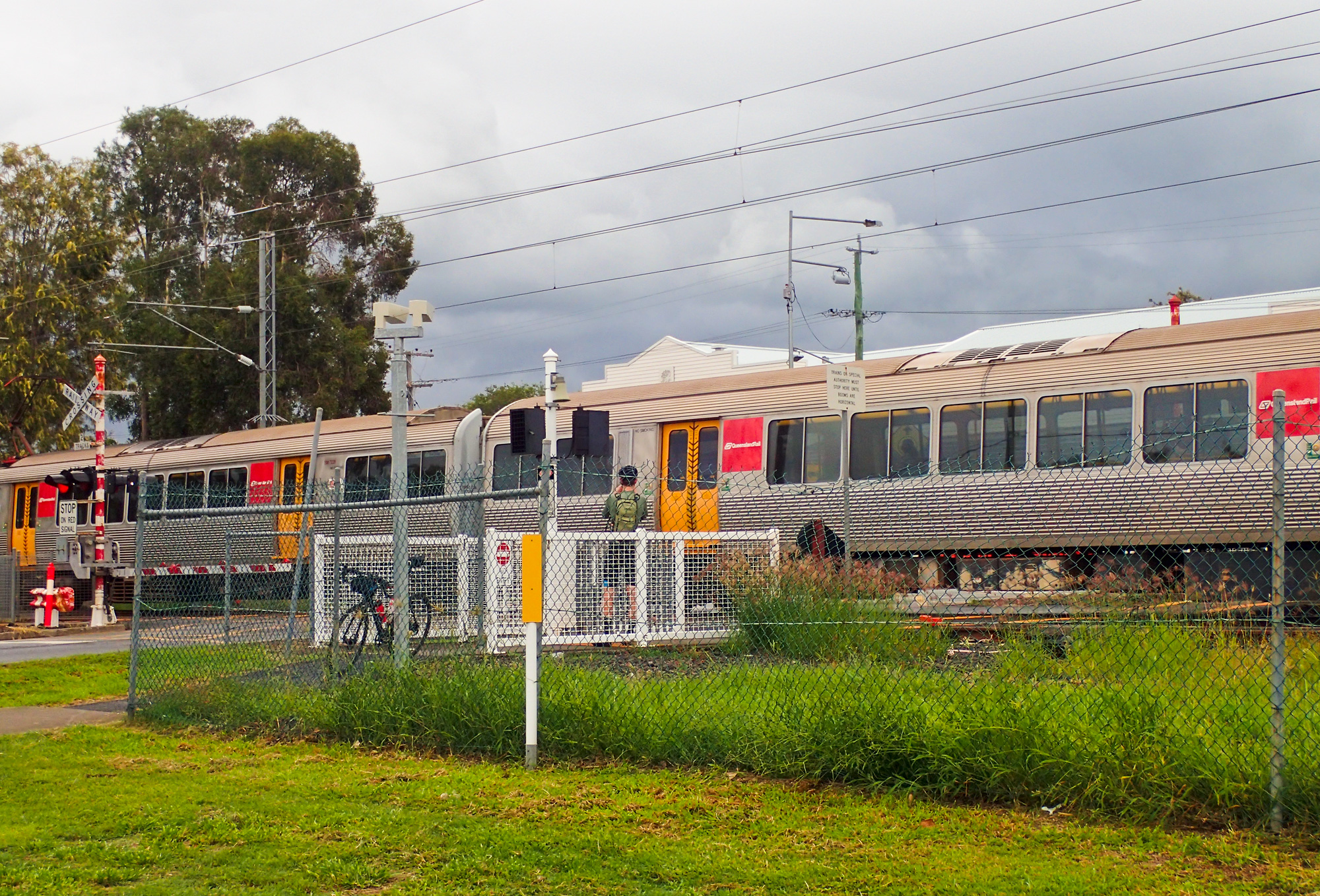 Along the way back to Rosewood we caught the tail end of the storm in front of us with some drizzle here and there but it looked like we were well ahead of the storm behind us. Just before we get to Rosewood the road travels east with a short southern run around a few farms. Heading east the sky didn’t look too bad with trees blocking our view to the south but as we made the southern turn and popped out into the farm land that’s when we saw the dark clouds and the grey mist of rain falling in the distance. With a few bits of spitting rain in the air, the wind starting to pick up and the sky getting darker we arrived back at Rosewood railway station just as the train from Ipswich was arriving. We quickly jumped on the train dry as a bone and about 5 minutes later the train departed with constant drizzle in the air hitting the side of the train.Made it just in time.