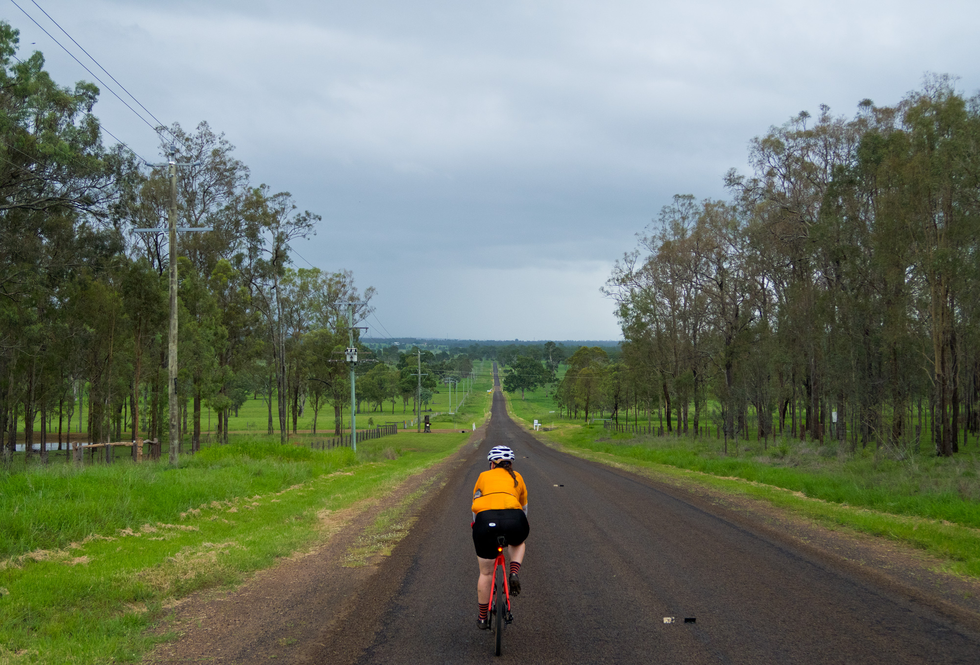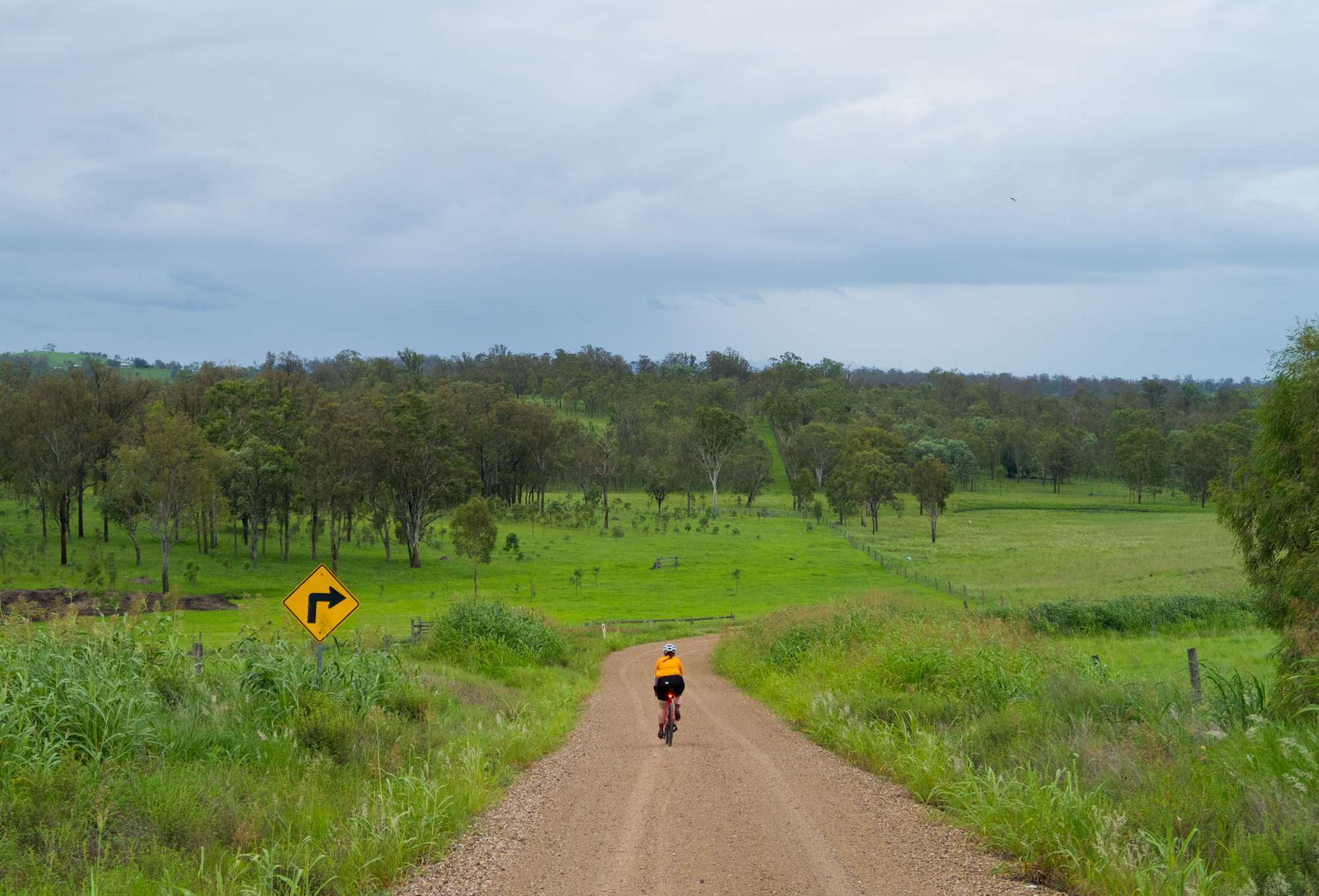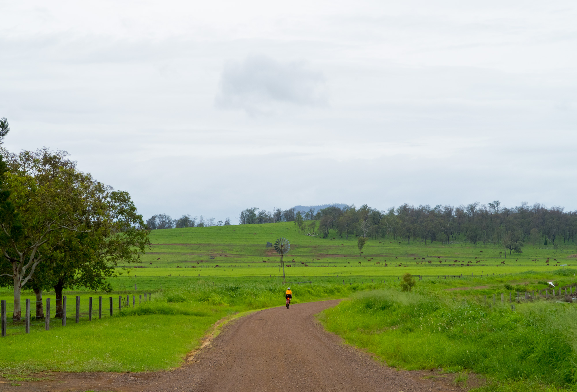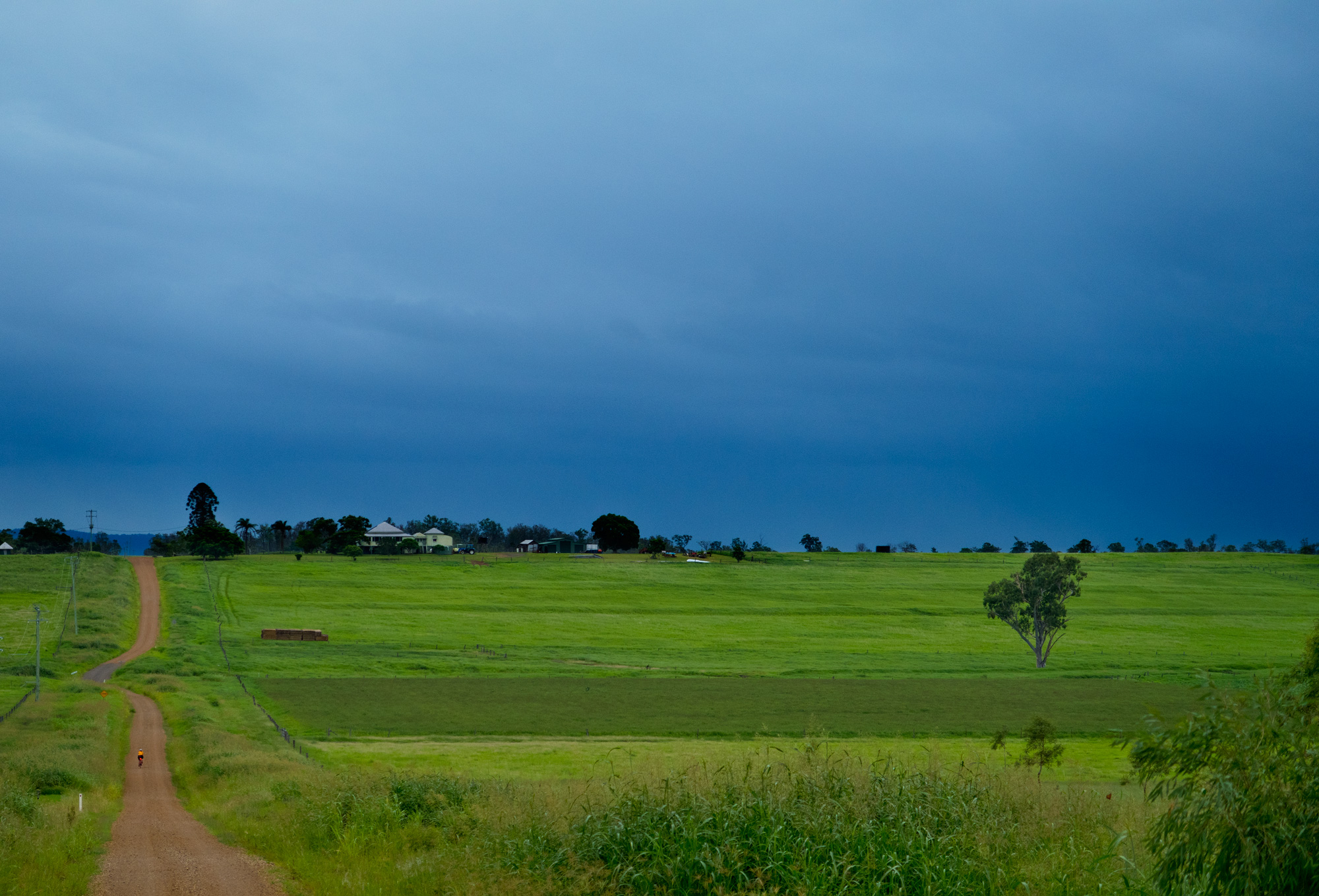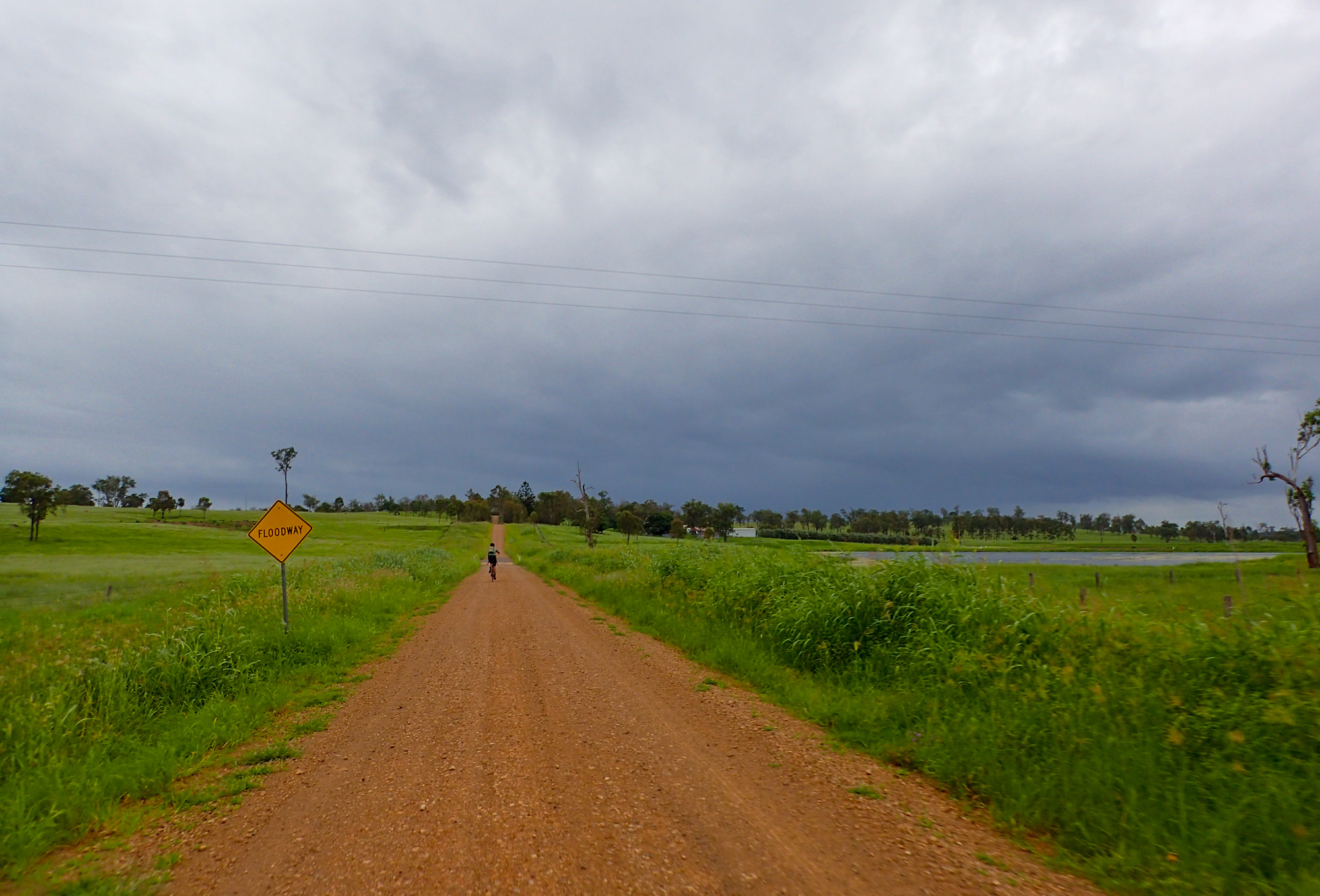 Conditions were overcast with scattered showers and sever thunderstorms. It seemed that we had missed the majority of the showers and the yellow/red thunderstorms on the radar but just as we were about leave Rosewood some light rain came so we waited at the railway station for a few minutes to let it pass. When we finally got under way to the south it was a light grey mist hiding the thunderstorm behind it but every now and then you’d catch a glimpse of the lighting that was in it. For a brief time the sun came out but as we made our way towards Calvert the sun was gone and the rain was back.