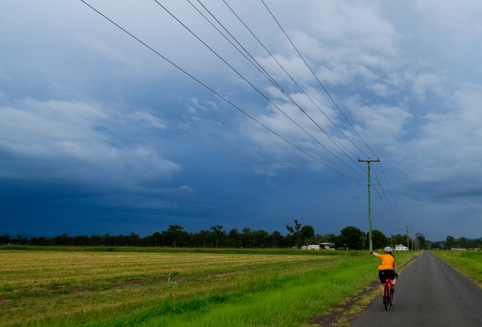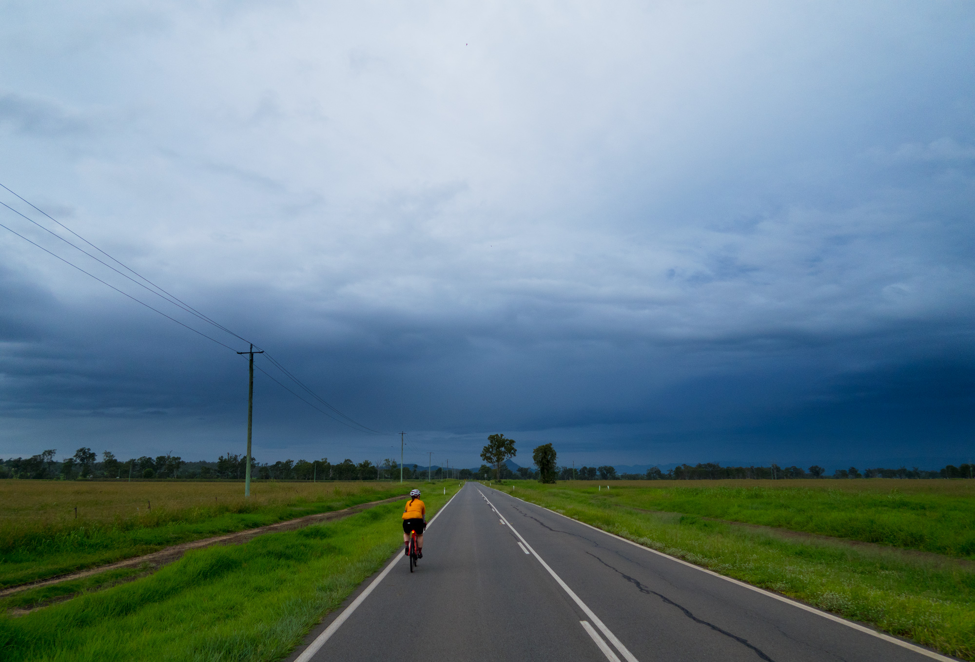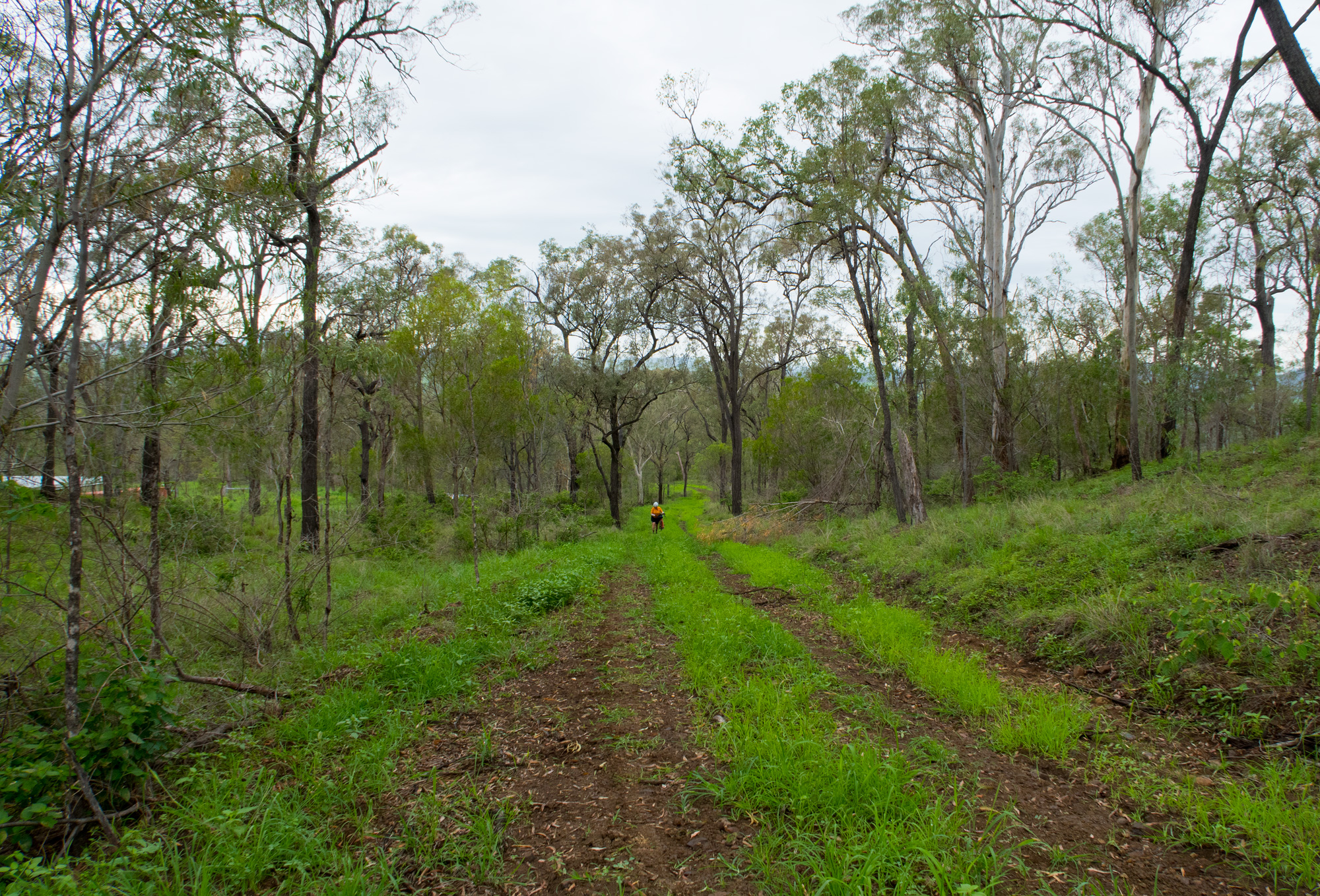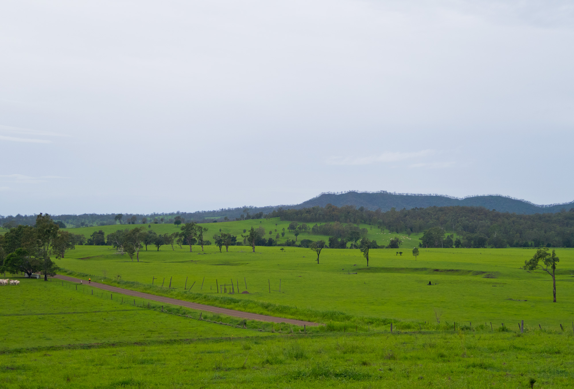 Conditions were overcast with scattered showers and sever thunderstorms. It seemed that we had missed the majority of the showers and the yellow/red thunderstorms on the radar but just as we were about leave Rosewood some light rain came so we waited at the railway station for a few minutes to let it pass. When we finally got under way to the south it was a light grey mist hiding the thunderstorm behind it but every now and then you’d catch a glimpse of the lighting that was in it. For a brief time the sun came out but as we made our way towards Calvert the sun was gone and the rain was back.
