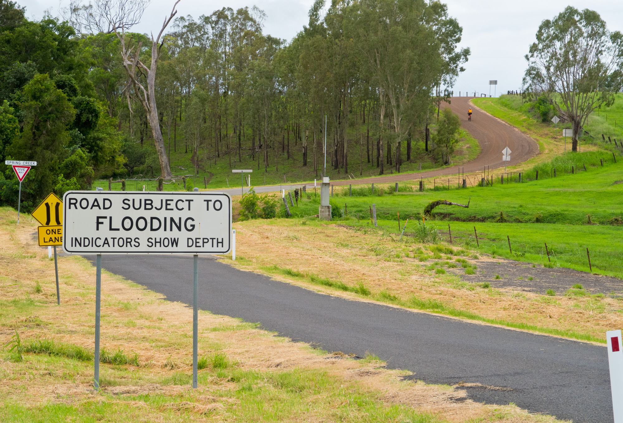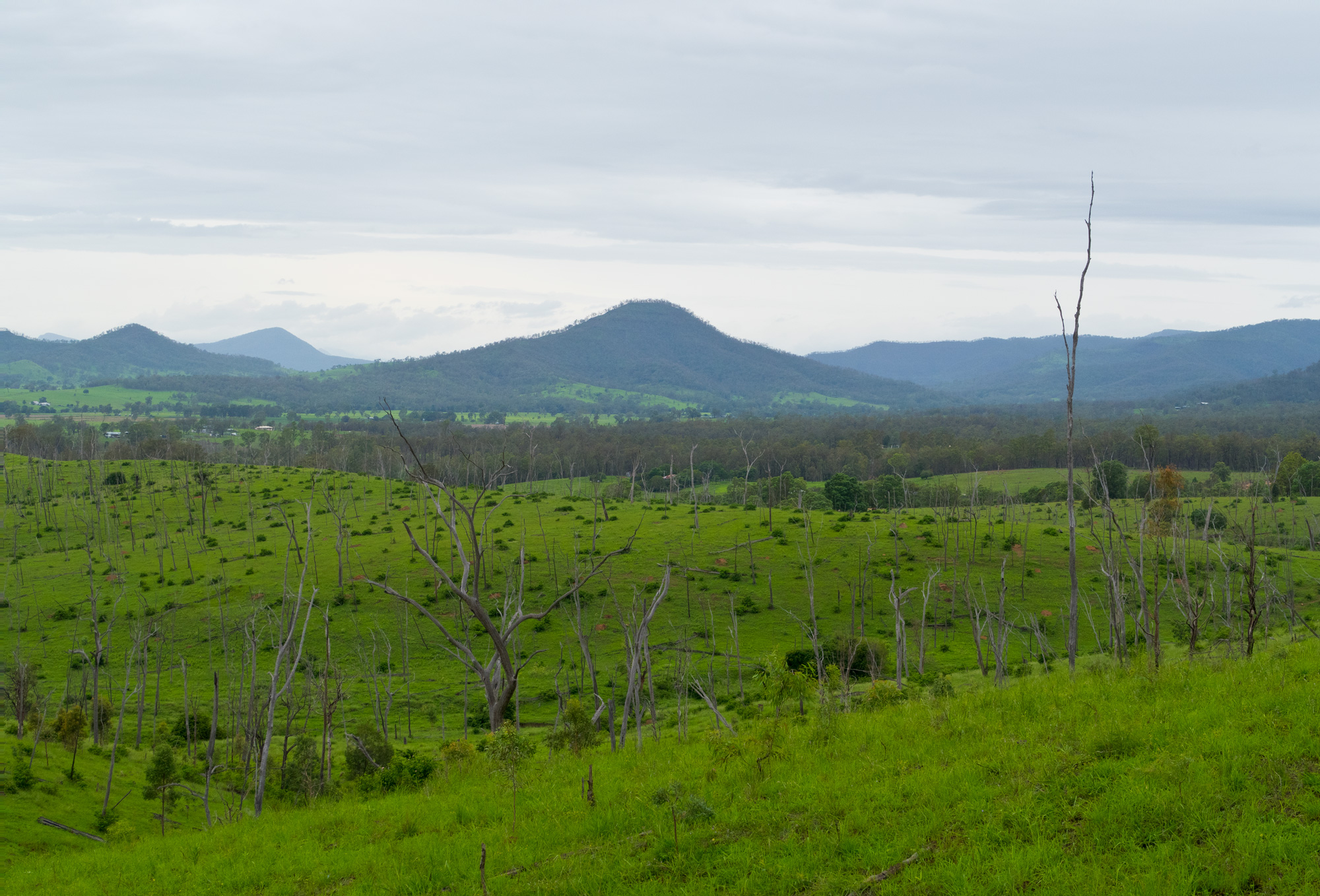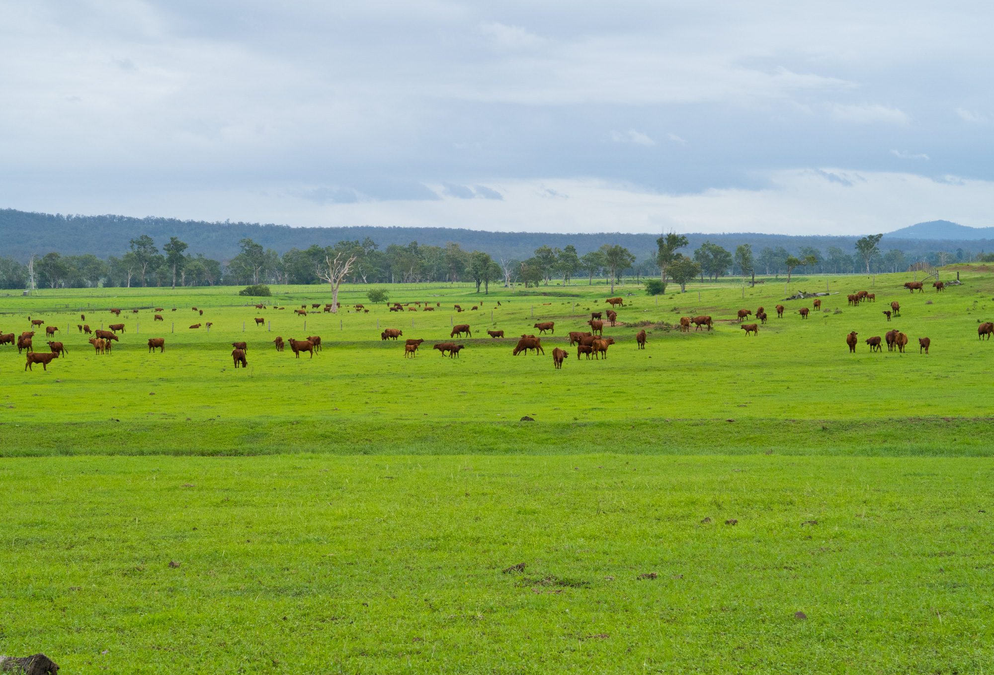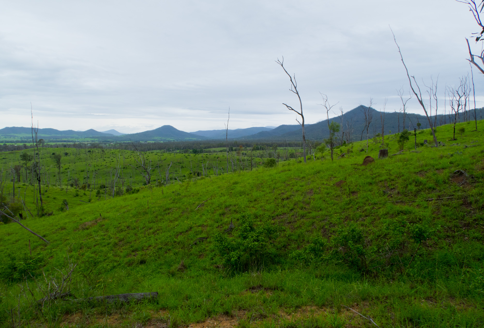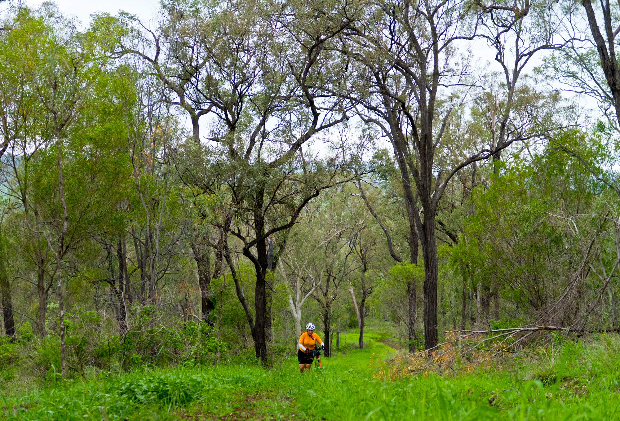 Conditions were overcast with scattered showers and sever thunderstorms. It seemed that we had missed the majority of the showers and the yellow/red thunderstorms on the radar but just as we were about leave Rosewood some light rain came so we waited at the railway station for a few minutes to let it pass. When we finally got under way to the south it was a light grey mist hiding the thunderstorm behind it but every now and then you’d catch a glimpse of the lighting that was in it. For a brief time the sun came out but as we made our way towards Calvert the sun was gone and the rain was back.