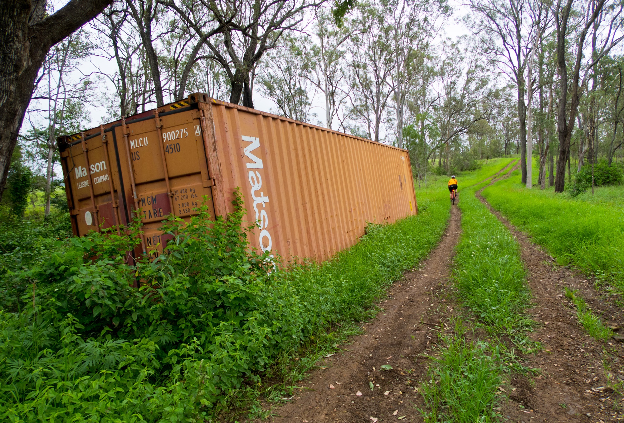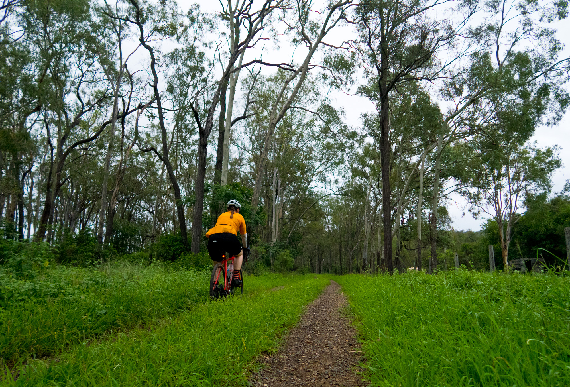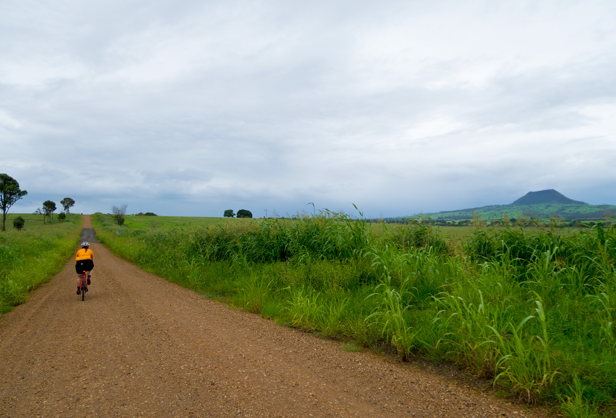 From Calvert to the start of the climb up up and over Mount Beau it was wet roads and scattered showers but the dirt roads seemed to have avoided most of the heavy rain from the morning storms. But as we got further and further along the dirt road it became obvious that it wasn’t going to be an easy ride as we transitioned from a used dirt road to unused dirt roads. The red clay road had dried out from the drought but the recent rains had allowed for the grass to grow through quite thick along with the clay being dried out on top but very loose/muddy underneath which didn’t allow for a lot of traction as it built up on the tread allowing for wheelspin and a quick dismount on 8-15% gradients.