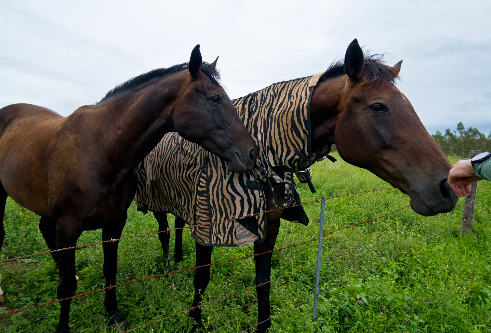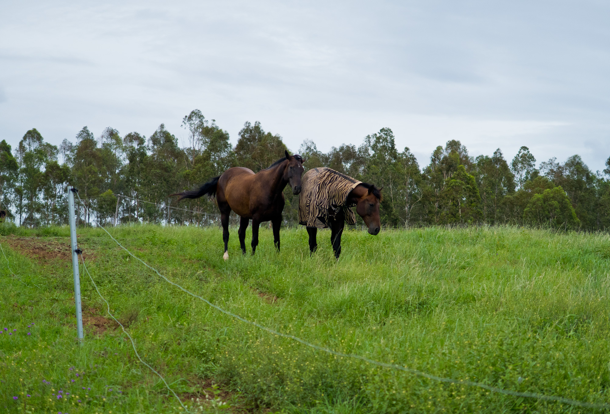 As we were having a brief lunch break with two friendly horses we could now see the thunderstorm to the north in the distance coming out from behind Mount Walker. We checked the radar and it was yellow/red over Amberley but travelling in a north/west direction so we were quite safe from it. Even though it was just gloomy grey skies to the south what we didn’t realise was that there was a secondary and even worse looking storm brewing behind Boonah/Mount French heading in our direction. So we said goodbye to the horses and told the harvest files to hurry up and jump on as we were now leaving to quickly get back to Rosewood to beat that approaching southern storm.