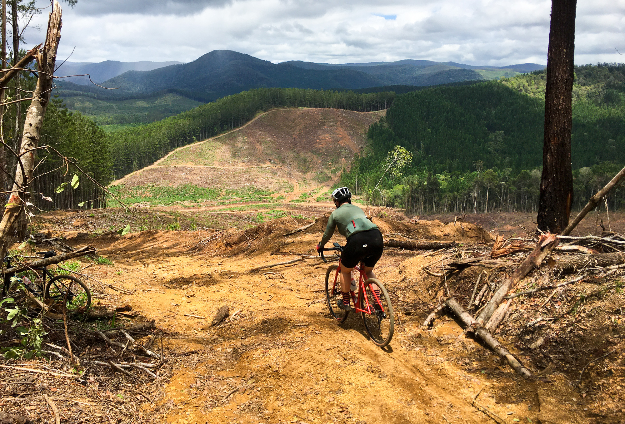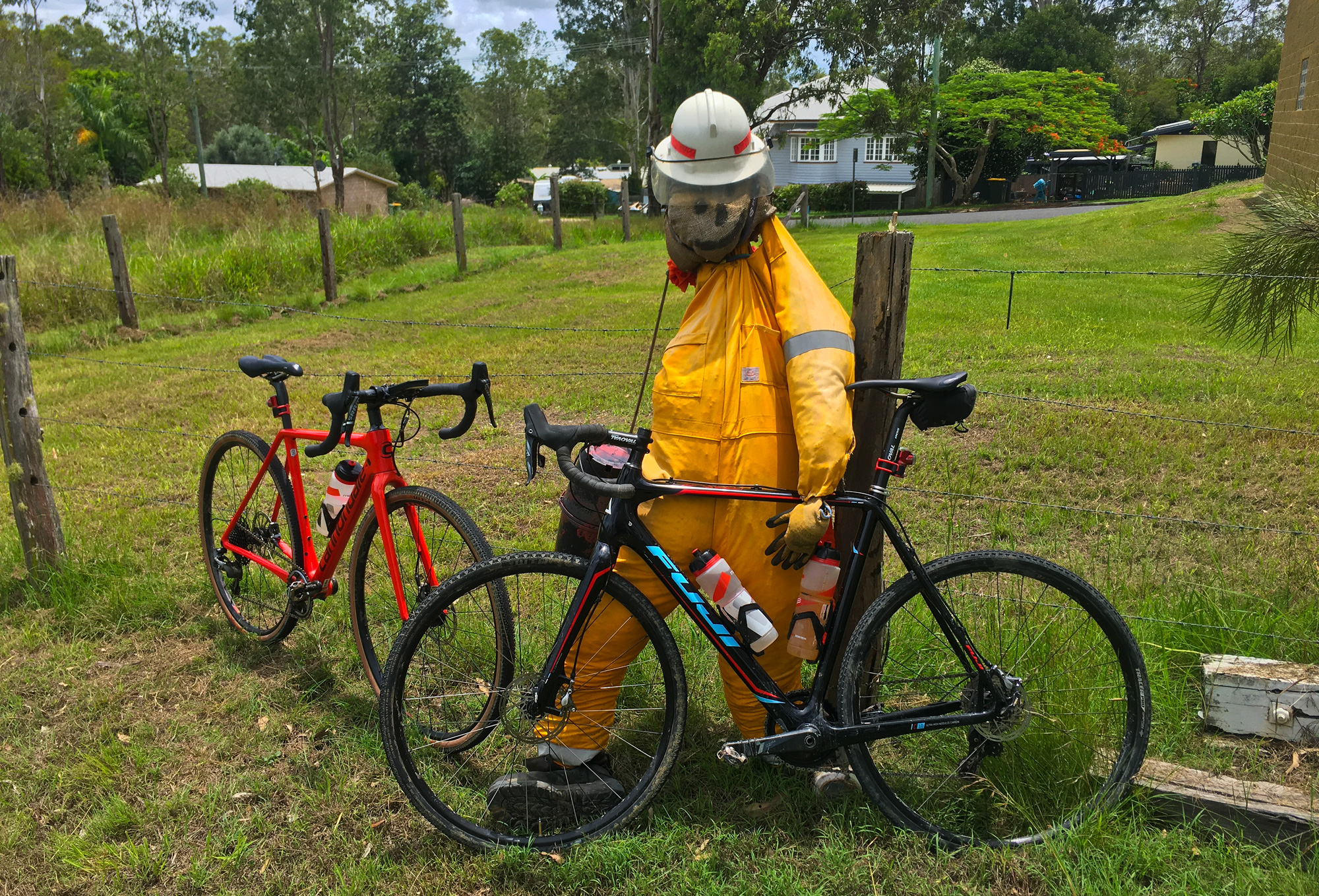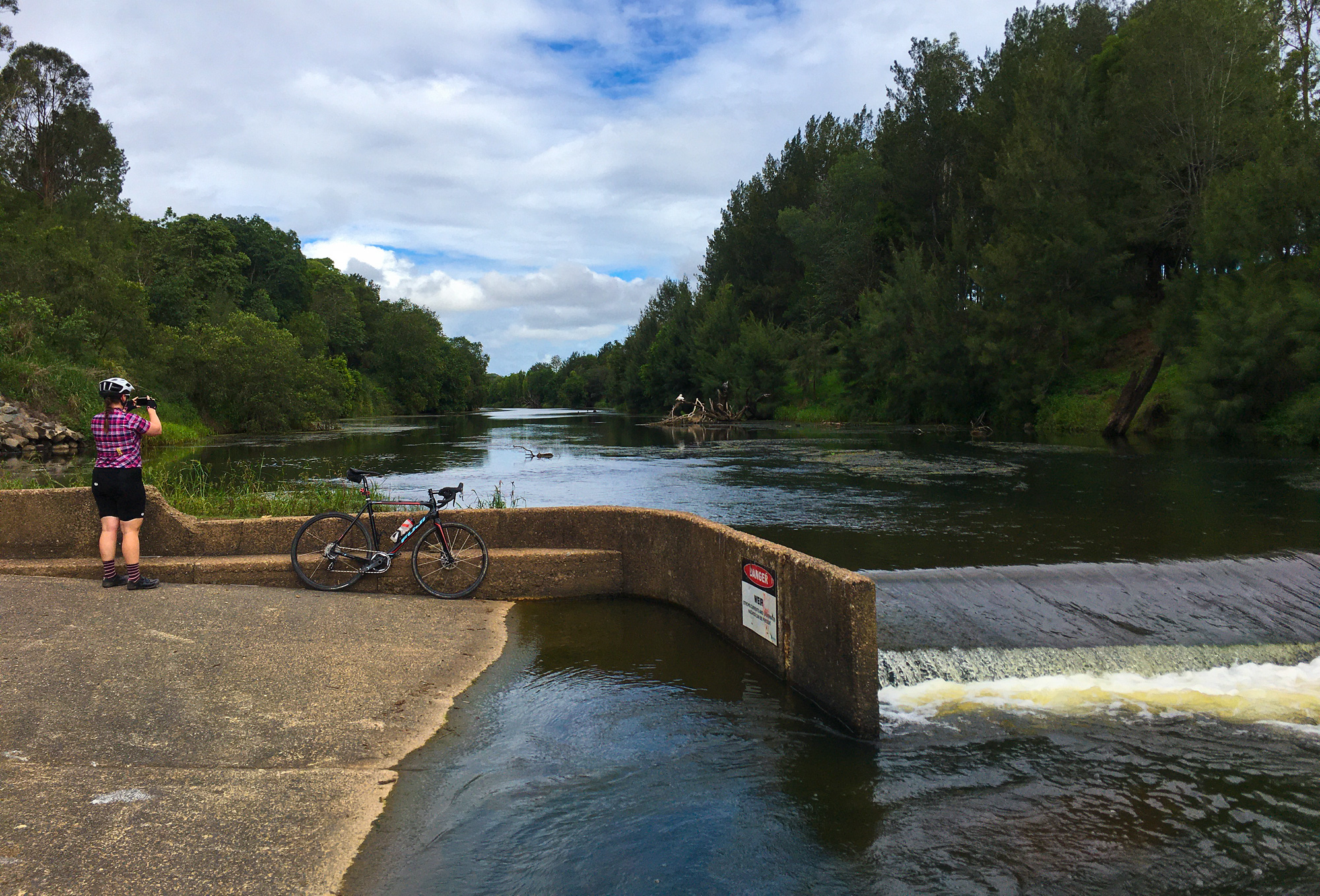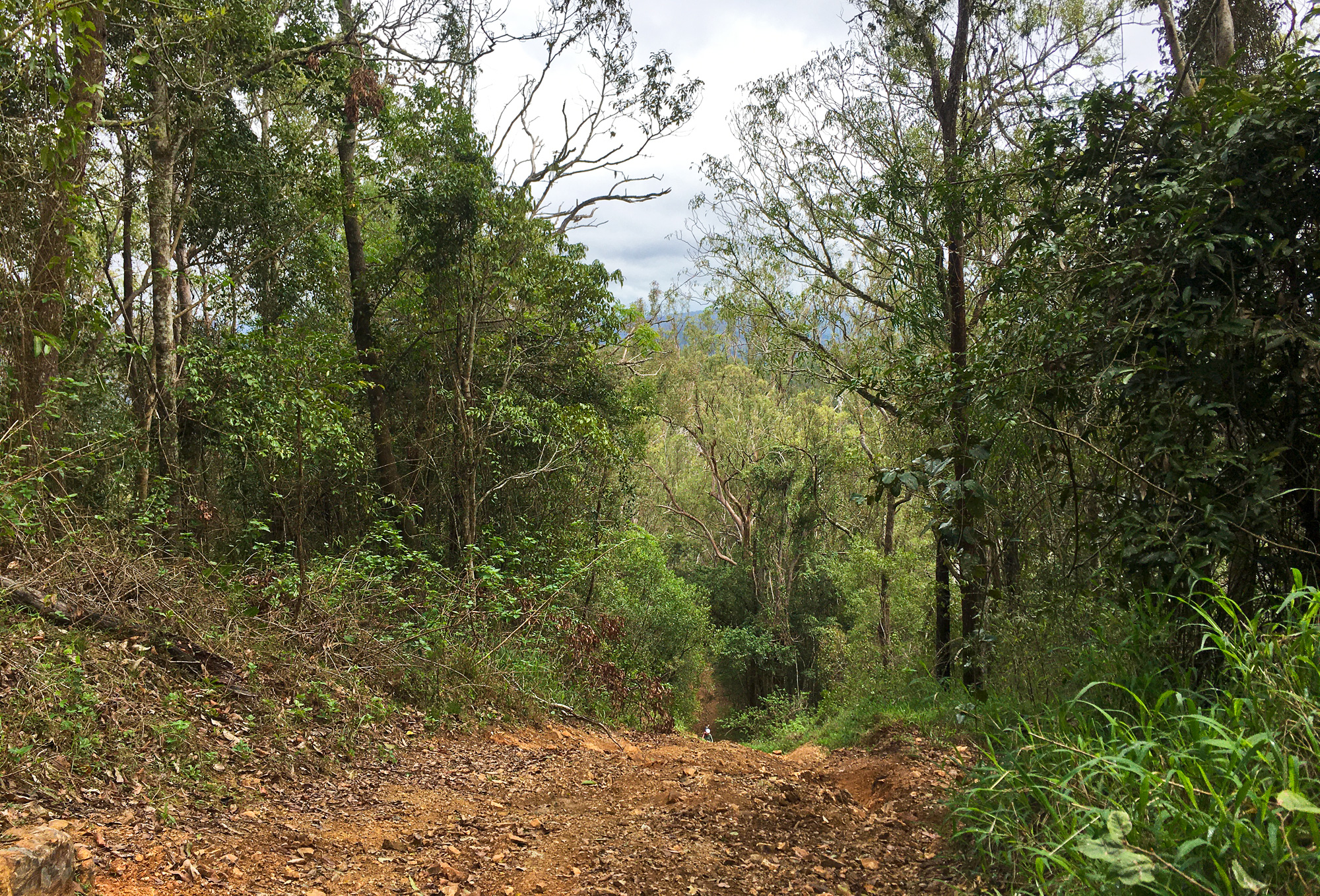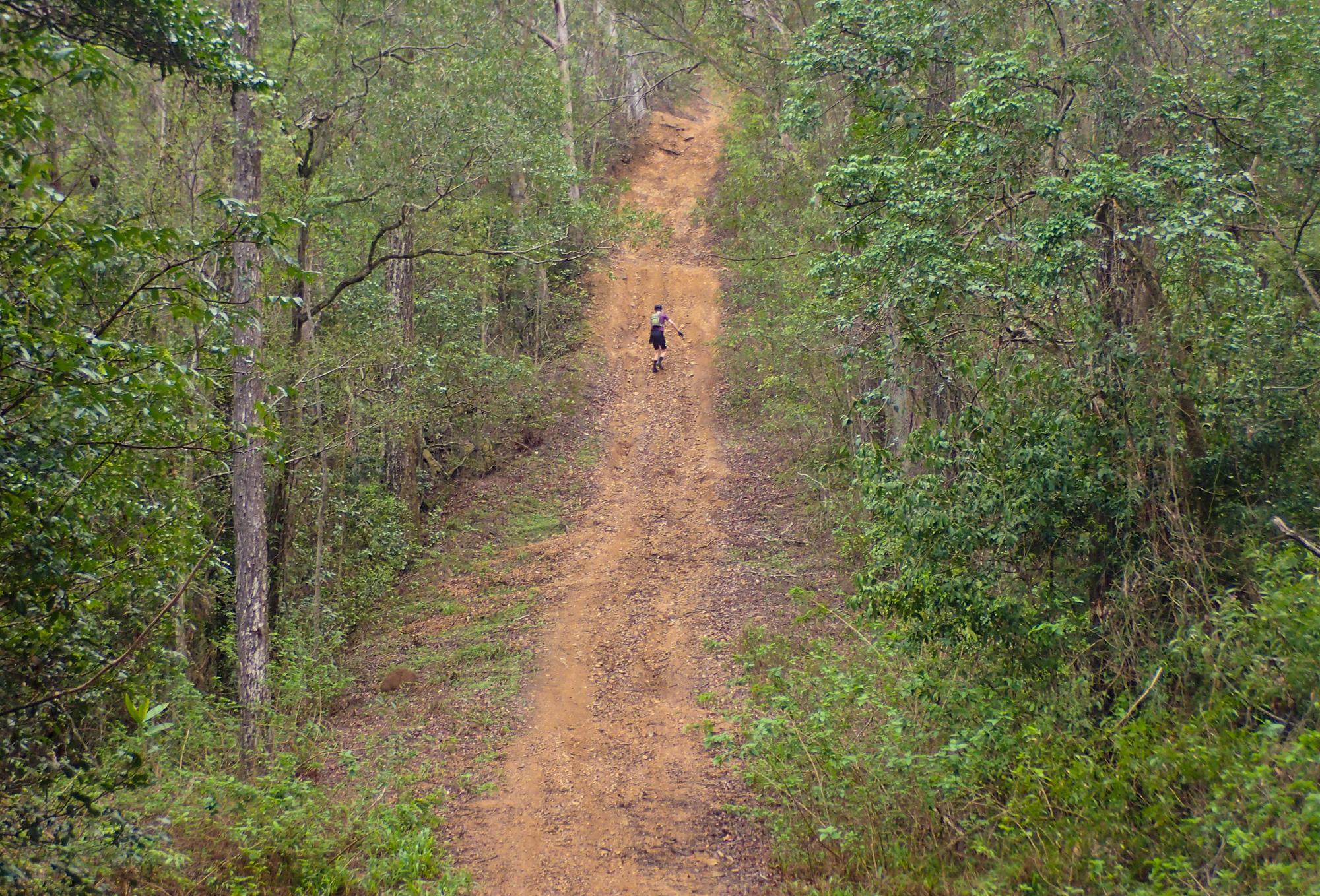 Eventually we made the way to the top of the climb. After removing the built up clay in the pedals, cleats and shoes we started out descent to the bottom of the valley. However it wasn’t to last very long. On the -10% and at times -15% gradients long ruts had formed and combined with the wet thick/tall grass made spotting them difficult which was made even worse with the slippery red clay. It wasn’t long until Bronwyn had her first couple moments shortly followed by a slow speed stack when she lost the front on some slippery clay. Luke quickly followed in a more dramatic fashion as he lost the front on one bit of slippery clay, into a long rut covered in grass, across the track into another rut and eventually losing the rear as it lost traction with the wet clay and spun around. We both decided to attempt the Mulgowie section another day when it wasn’t as wet on the steeper side. As we made our way back to Grandchester Mount Mort Road it still wasn’t stack free. One one -12% section Luke lost the bike on a soft section of clay when the front dug in and the rear slid out at low speed. Once we got back to the dirt road normal riding was resumed. The only problem we now had was avoiding eye level chunks of clay that were now being flicked off our wheels/bikes which was easily solved by grabbing a low hanging stick from a tree and scraping the clay off while riding. Once we got back onto Grandchester Mount Mort Road heading south it was 85% gravel roads over just about every single ridge line all the way back to Rosewood. You couldn’t see them all but when you got to the crest you knew there was another one just on the other side.