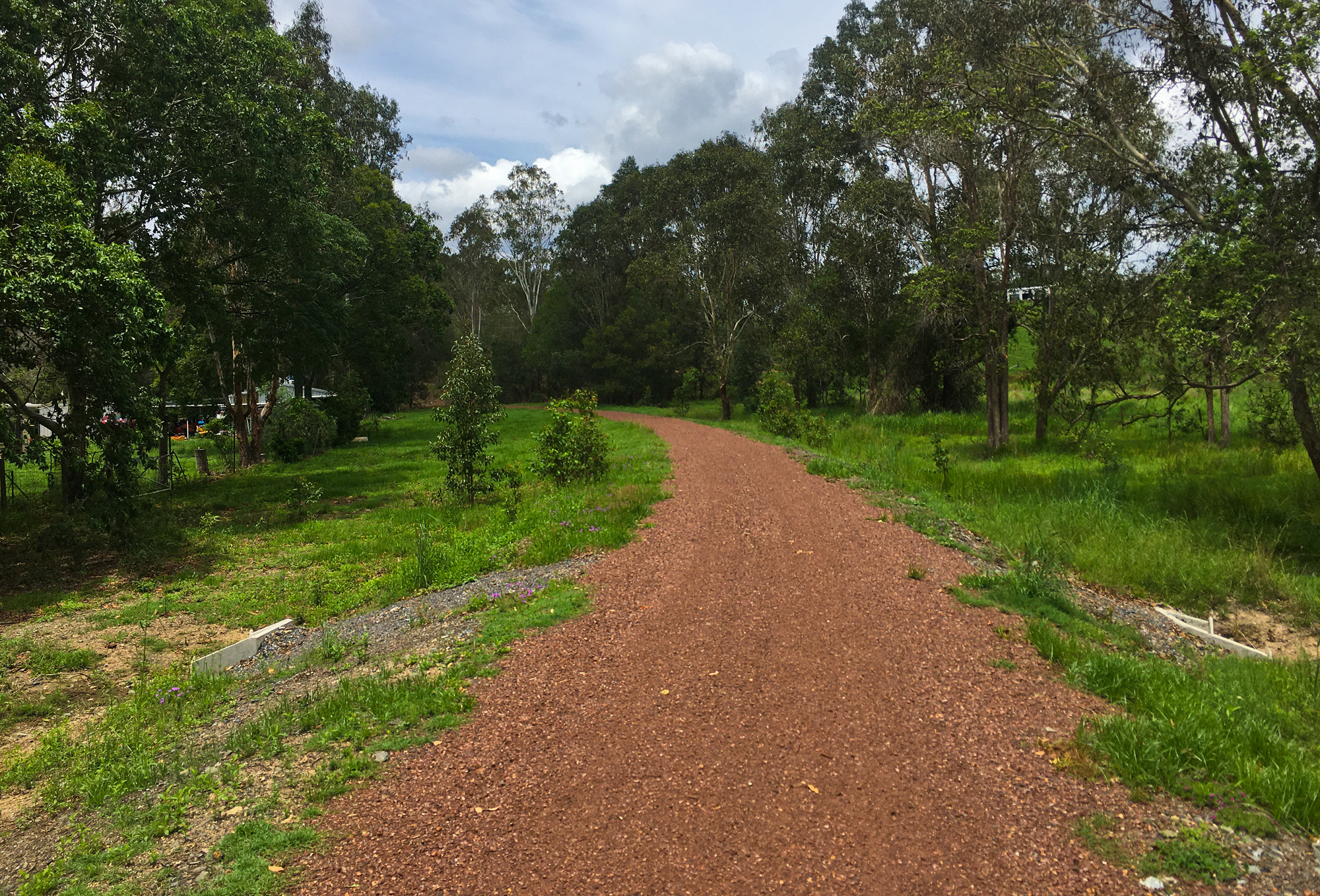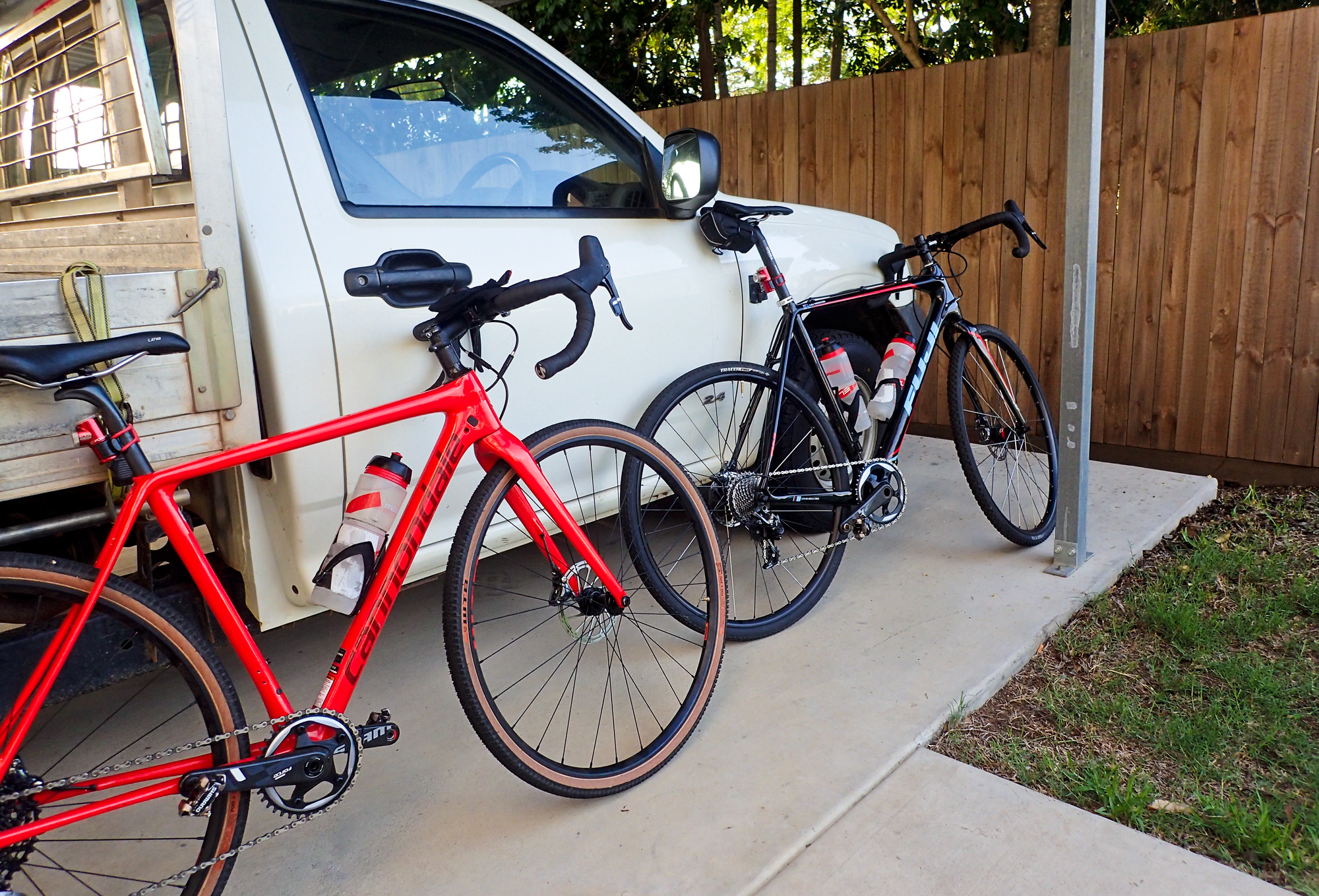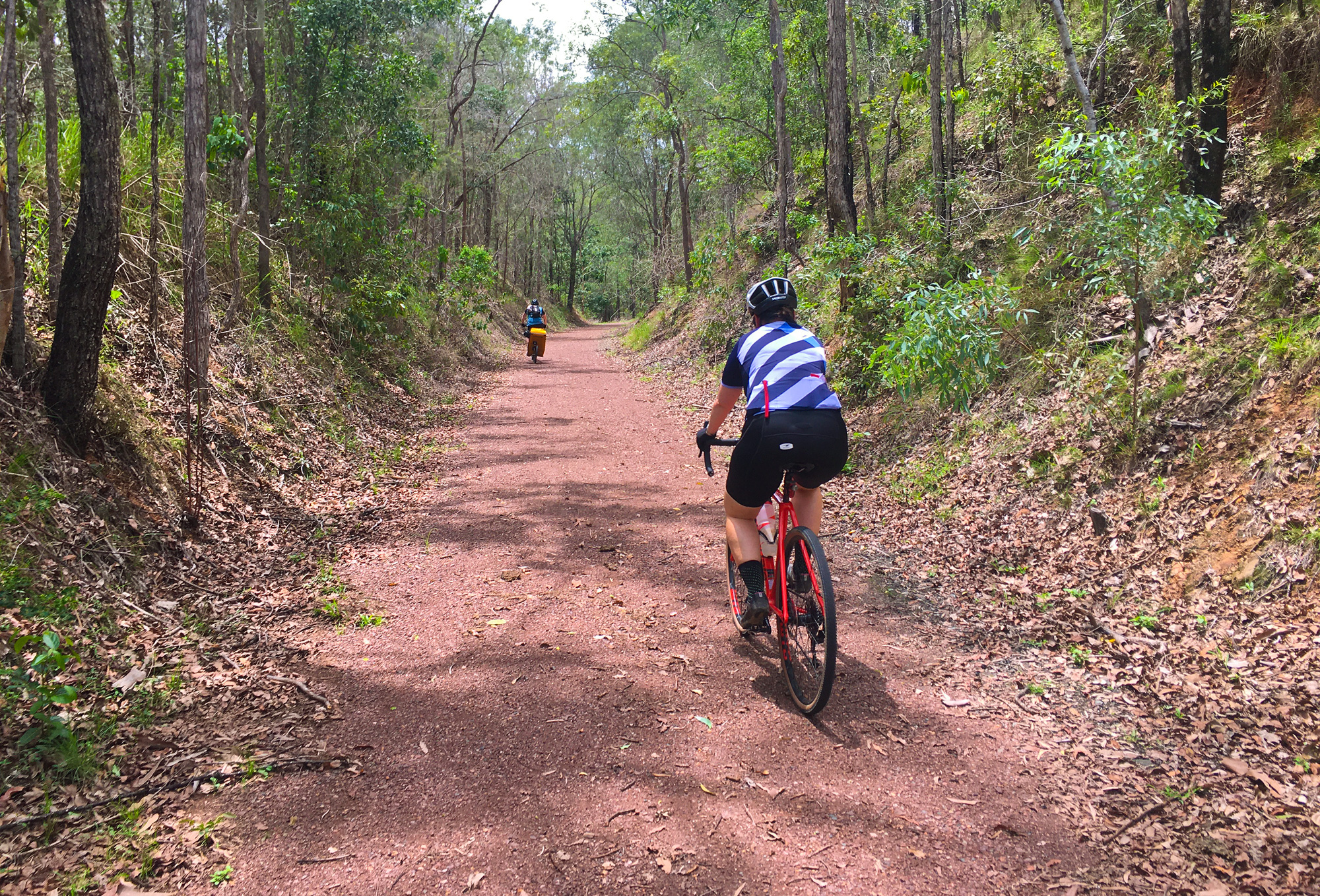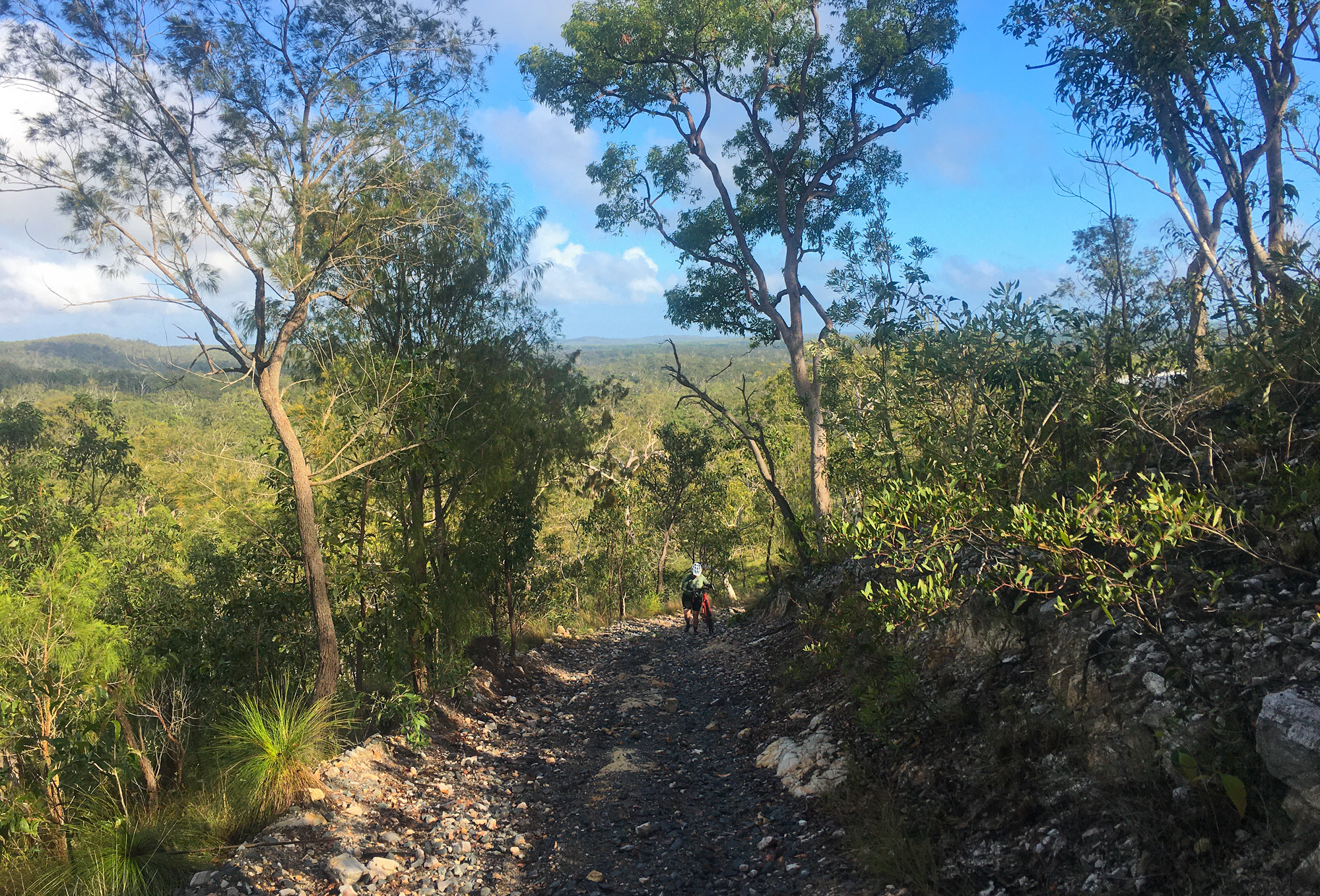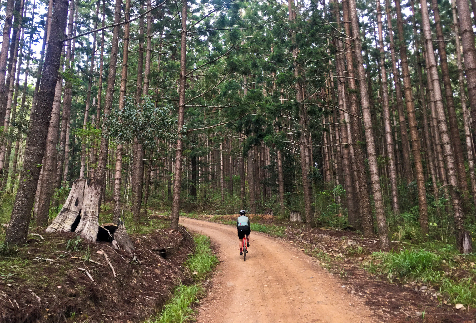 Eventually we made the way to the top of the climb. After removing the built up clay in the pedals, cleats and shoes we started out descent to the bottom of the valley. However it wasn’t to last very long. On the -10% and at times -15% gradients long ruts had formed and combined with the wet thick/tall grass made spotting them difficult which was made even worse with the slippery red clay. It wasn’t long until Bronwyn had her first couple moments shortly followed by a slow speed stack when she lost the front on some slippery clay. Luke quickly followed in a more dramatic fashion as he lost the front on one bit of slippery clay, into a long rut covered in grass, across the track into another rut and eventually losing the rear as it lost traction with the wet clay and spun around. We both decided to attempt the Mulgowie section another day when it wasn’t as wet on the steeper side. As we made our way back to Grandchester Mount Mort Road it still wasn’t stack free. One one -12% section Luke lost the bike on a soft section of clay when the front dug in and the rear slid out at low speed. Once we got back to the dirt road normal riding was resumed. The only problem we now had was avoiding eye level chunks of clay that were now being flicked off our wheels/bikes which was easily solved by grabbing a low hanging stick from a tree and scraping the clay off while riding. Once we got back onto Grandchester Mount Mort Road heading south it was 85% gravel roads over just about every single ridge line all the way back to Rosewood. You couldn’t see them all but when you got to the crest you knew there was another one just on the other side.