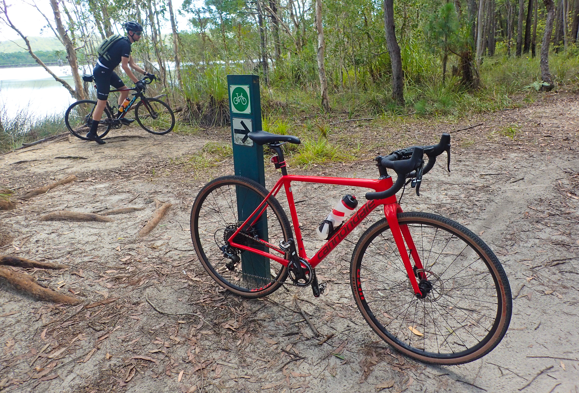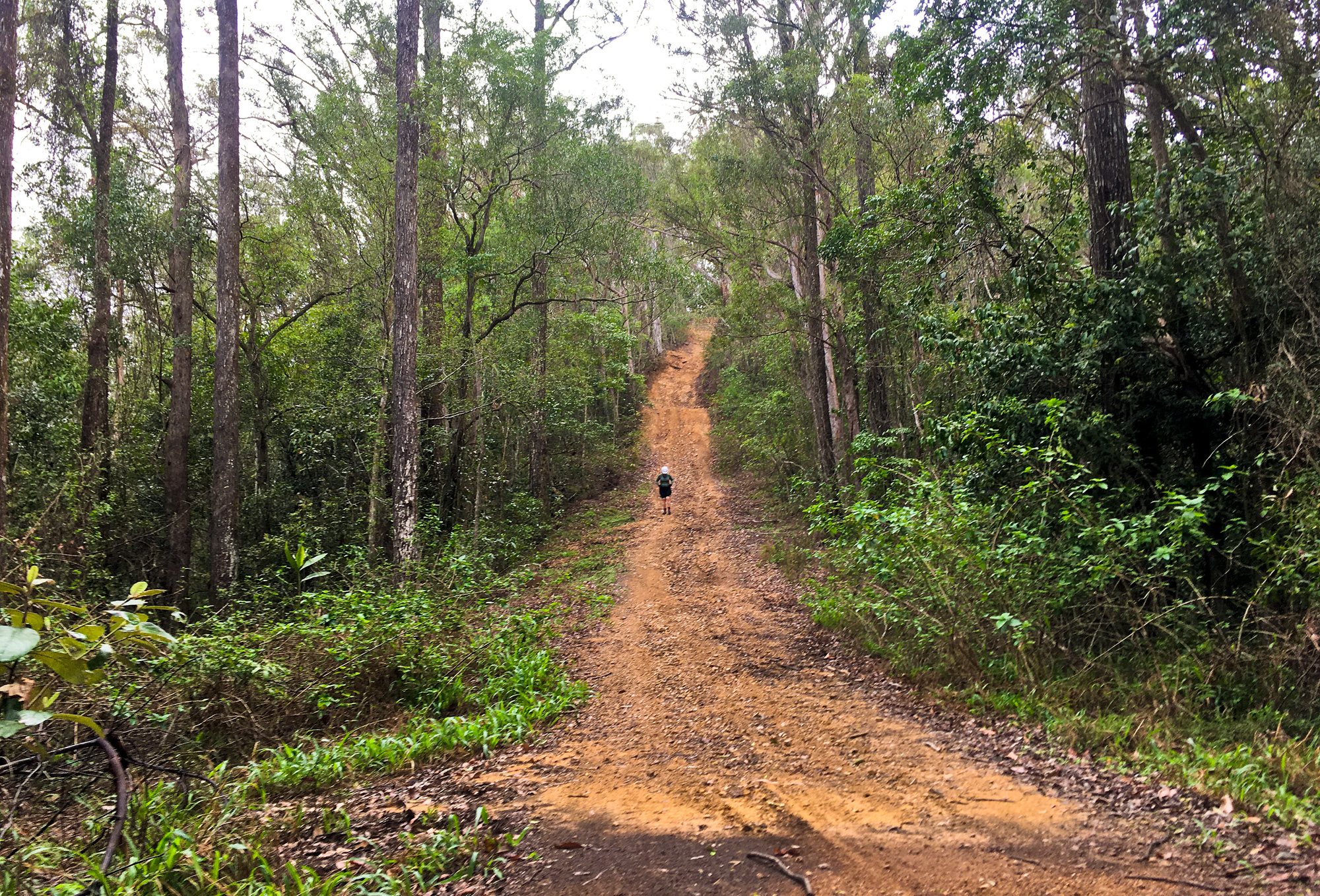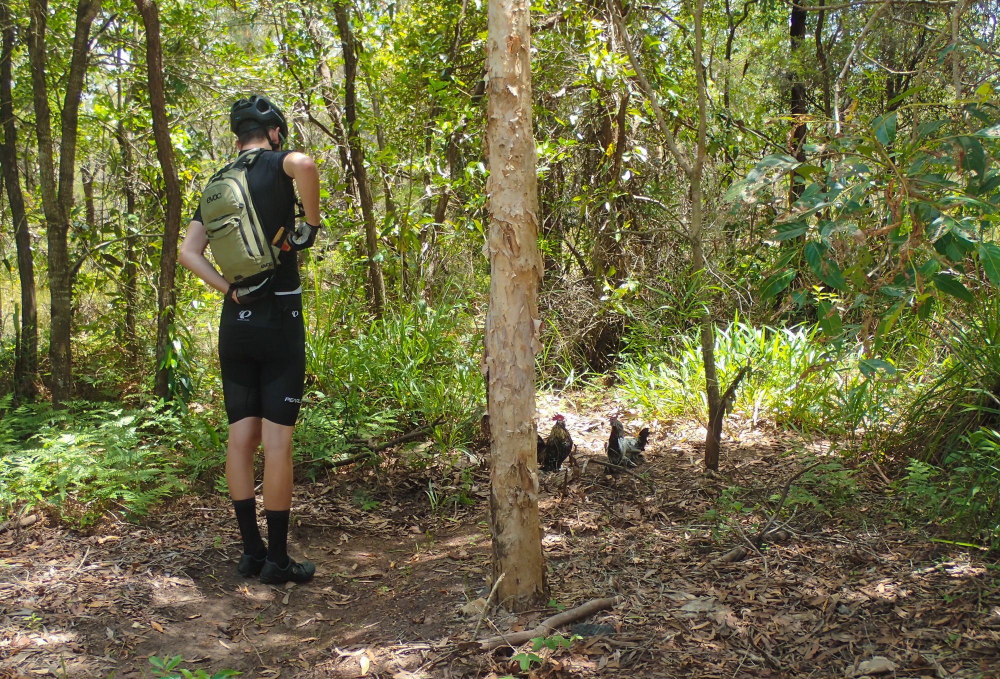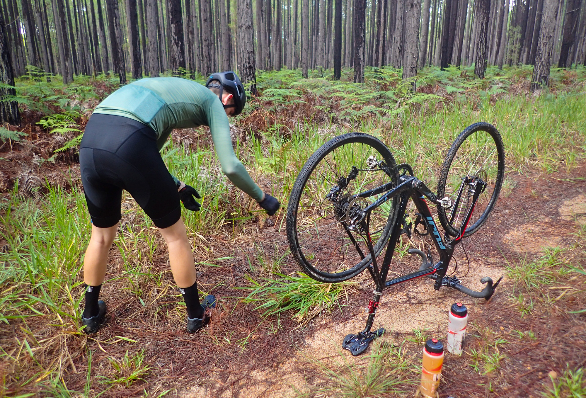 Eventually we made the way to the top of the climb. After removing the built up clay in the pedals, cleats and shoes we started out descent to the bottom of the valley. However it wasn’t to last very long. On the -10% and at times -15% gradients long ruts had formed and combined with the wet thick/tall grass made spotting them difficult which was made even worse with the slippery red clay. It wasn’t long until Bronwyn had her first couple moments shortly followed by a slow speed stack when she lost the front on some slippery clay. Luke quickly followed in a more dramatic fashion as he lost the front on one bit of slippery clay, into a long rut covered in grass, across the track into another rut and eventually losing the rear as it lost traction with the wet clay and spun around. We both decided to attempt the Mulgowie section another day when it wasn’t as wet on the steeper side. As we made our way back to Grandchester Mount Mort Road it still wasn’t stack free. One one -12% section Luke lost the bike on a soft section of clay when the front dug in and the rear slid out at low speed. Once we got back to the dirt road normal riding was resumed. The only problem we now had was avoiding eye level chunks of clay that were now being flicked off our wheels/bikes which was easily solved by grabbing a low hanging stick from a tree and scraping the clay off while riding. Once we got back onto Grandchester Mount Mort Road heading south it was 85% gravel roads over just about every single ridge line all the way back to Rosewood. You couldn’t see them all but when you got to the crest you knew there was another one just on the other side.