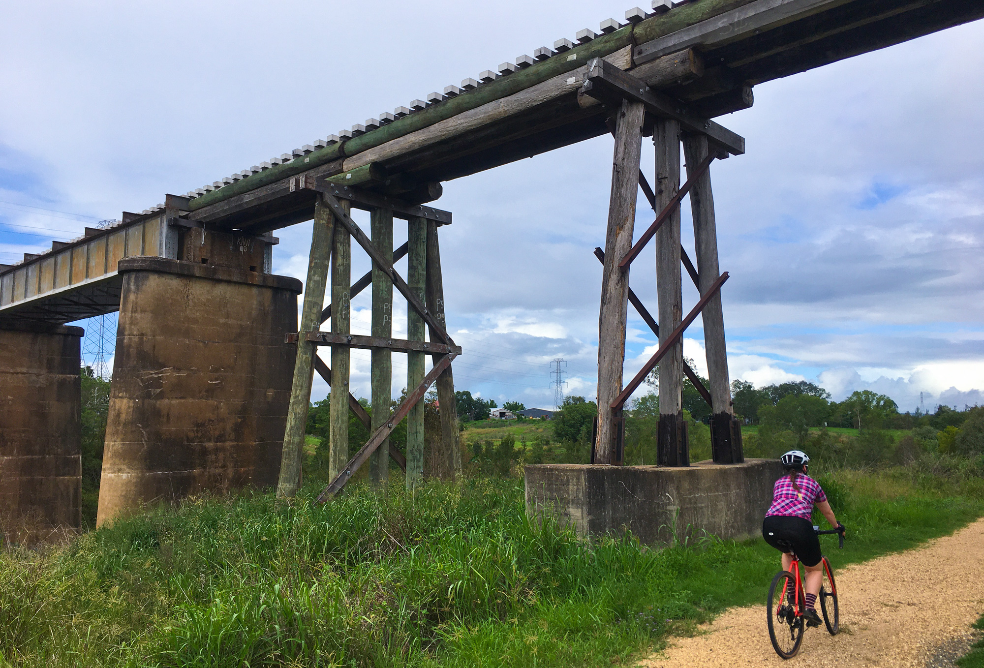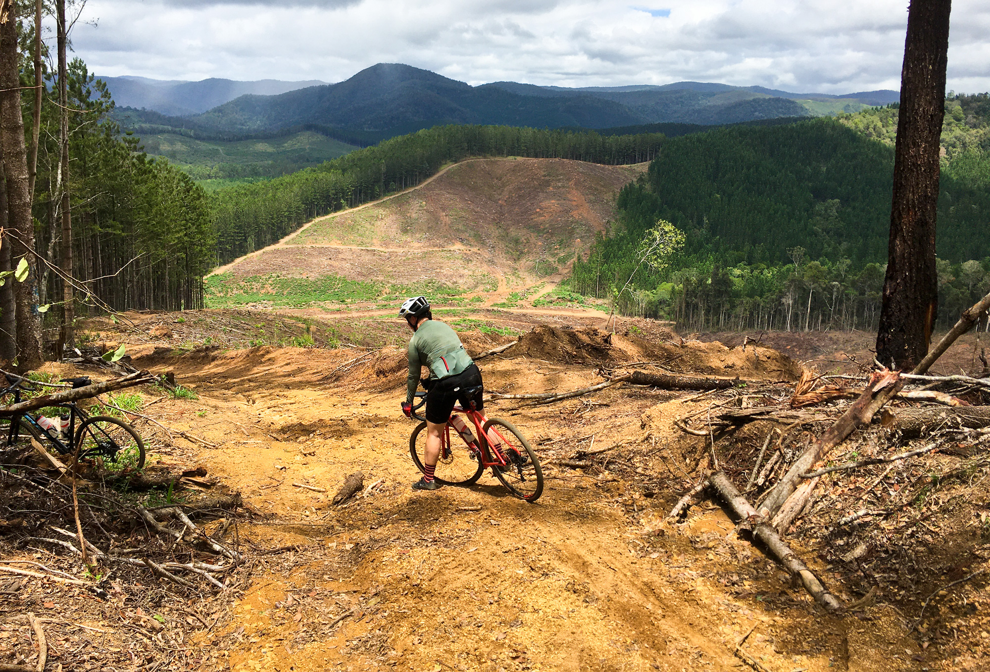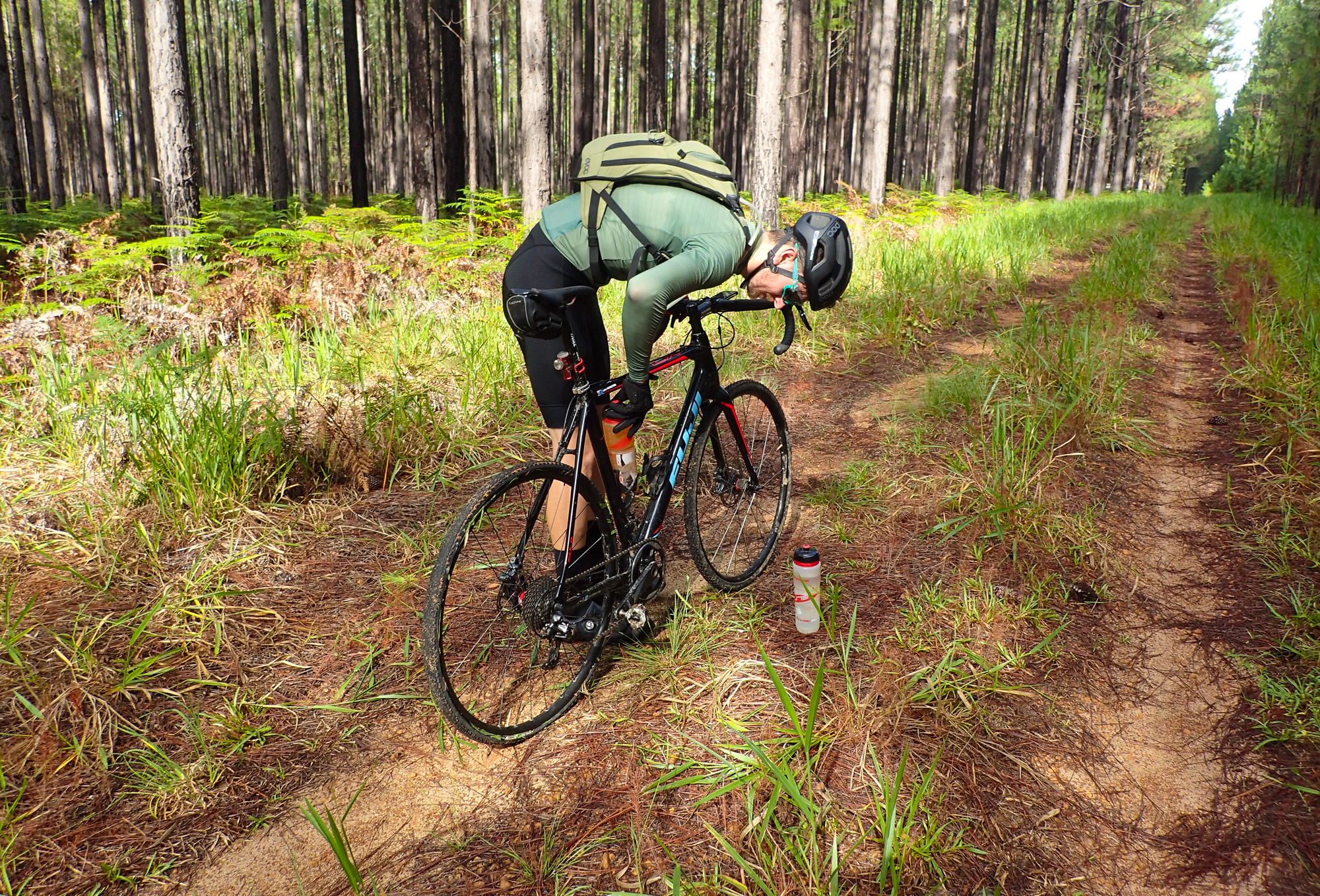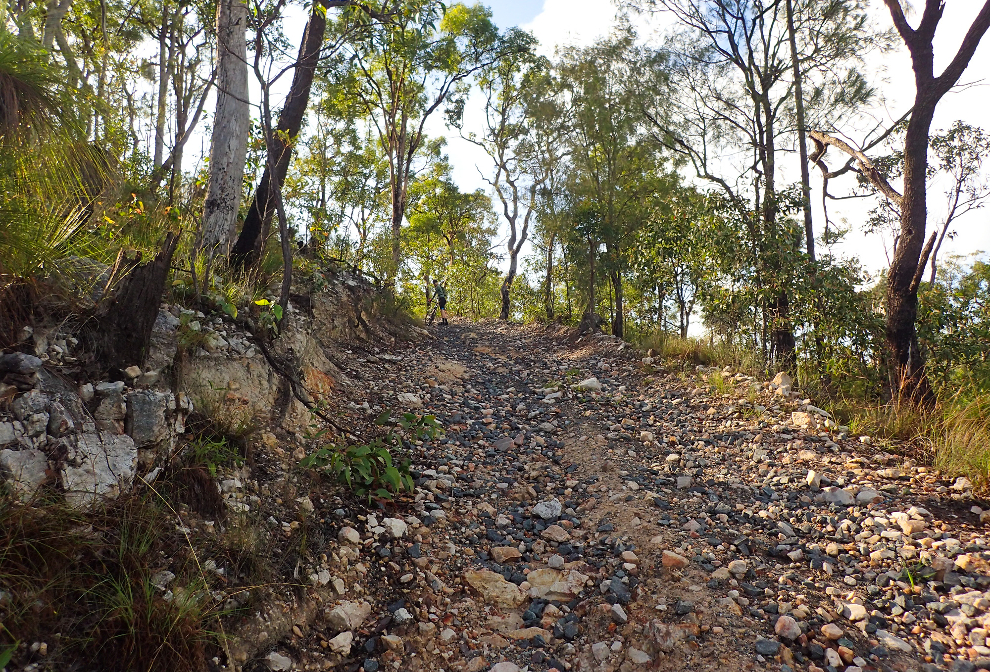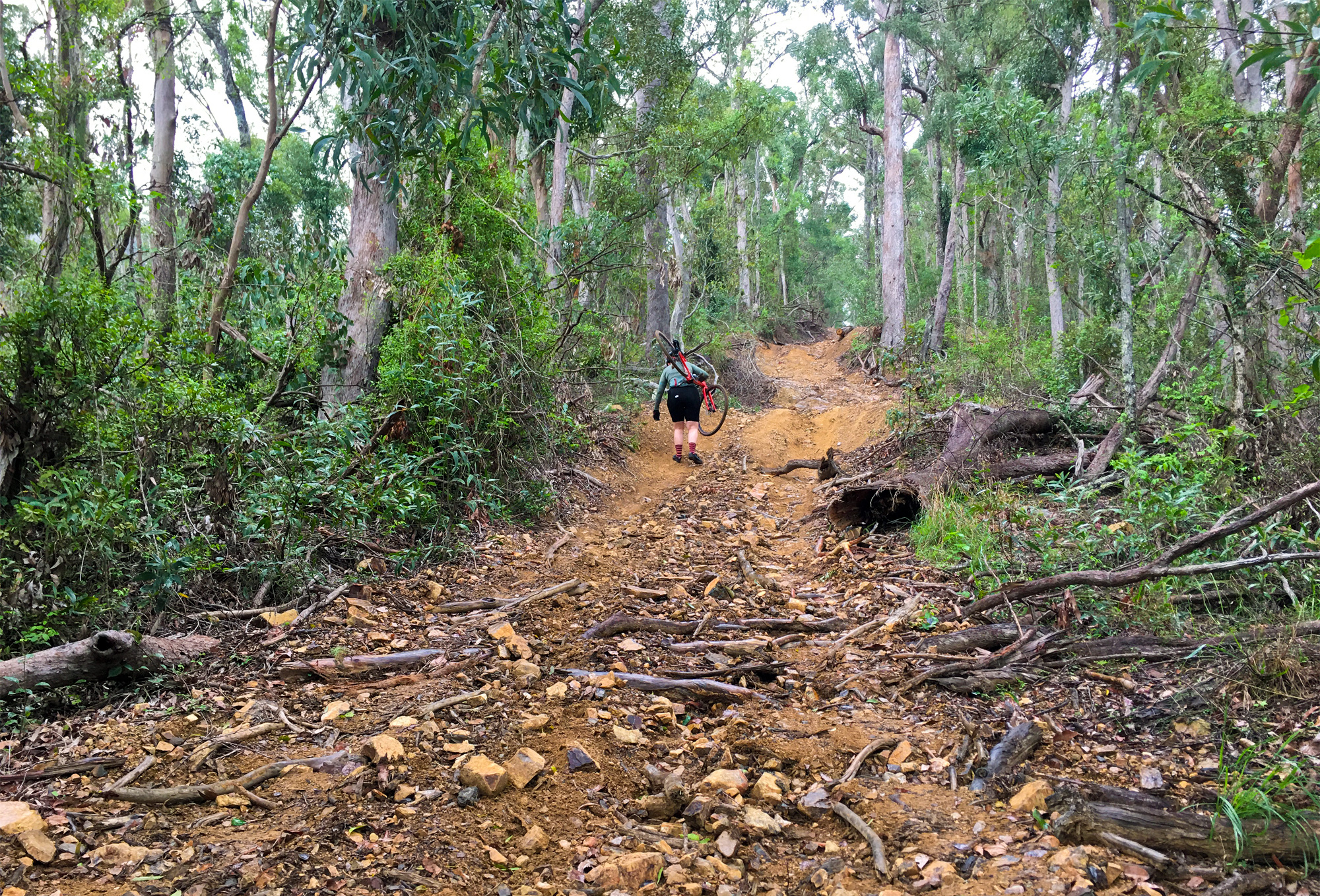 Eventually we made the way to the top of the climb. After removing the built up clay in the pedals, cleats and shoes we started out descent to the bottom of the valley. However it wasn’t to last very long. On the -10% and at times -15% gradients long ruts had formed and combined with the wet thick/tall grass made spotting them difficult which was made even worse with the slippery red clay. It wasn’t long until Bronwyn had her first couple moments shortly followed by a slow speed stack when she lost the front on some slippery clay. Luke quickly followed in a more dramatic fashion as he lost the front on one bit of slippery clay, into a long rut covered in grass, across the track into another rut and eventually losing the rear as it lost traction with the wet clay and spun around. We both decided to attempt the Mulgowie section another day when it wasn’t as wet on the steeper side. As we made our way back to Grandchester Mount Mort Road it still wasn’t stack free. One one -12% section Luke lost the bike on a soft section of clay when the front dug in and the rear slid out at low speed. Once we got back to the dirt road normal riding was resumed. The only problem we now had was avoiding eye level chunks of clay that were now being flicked off our wheels/bikes which was easily solved by grabbing a low hanging stick from a tree and scraping the clay off while riding. Once we got back onto Grandchester Mount Mort Road heading south it was 85% gravel roads over just about every single ridge line all the way back to Rosewood. You couldn’t see them all but when you got to the crest you knew there was another one just on the other side.