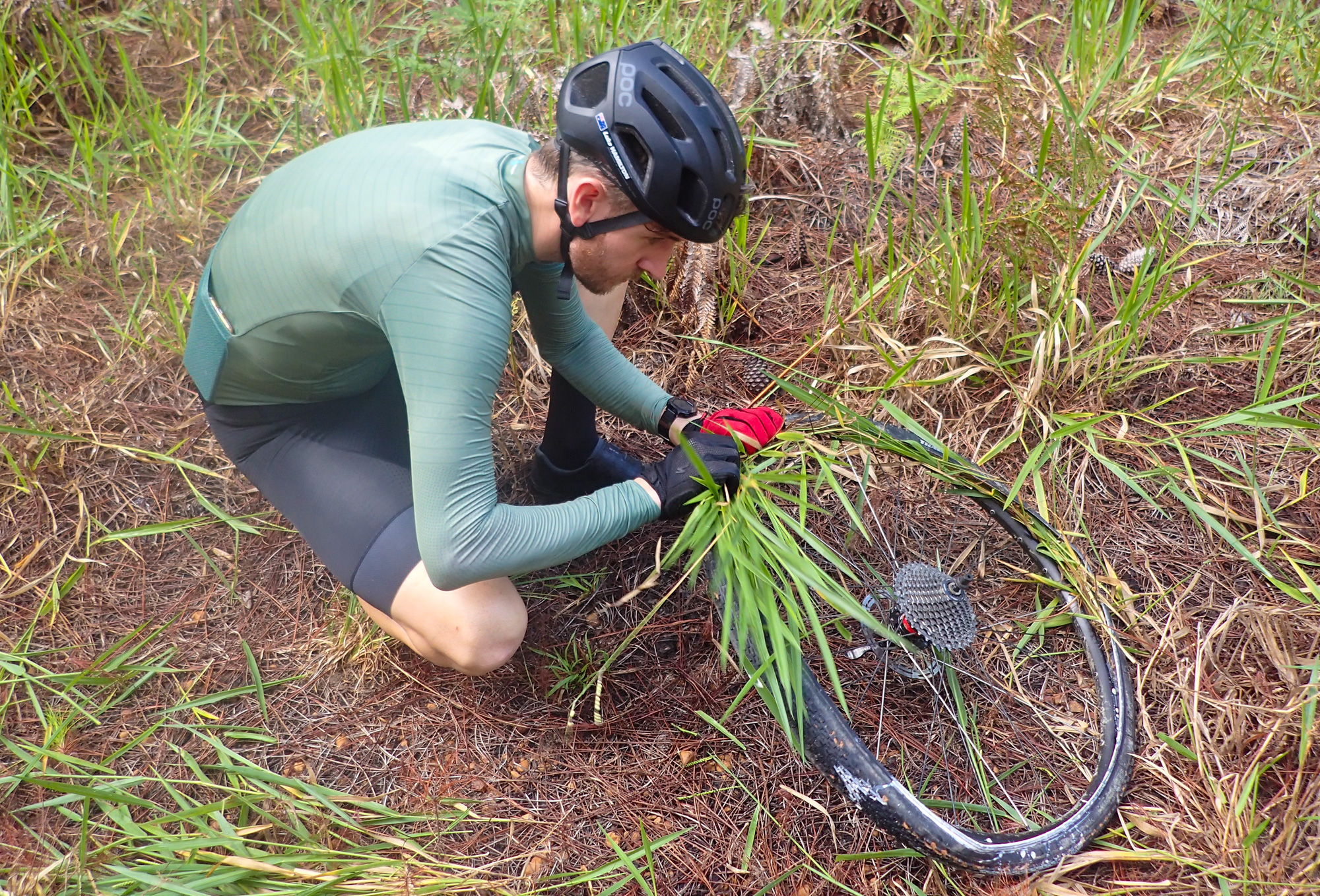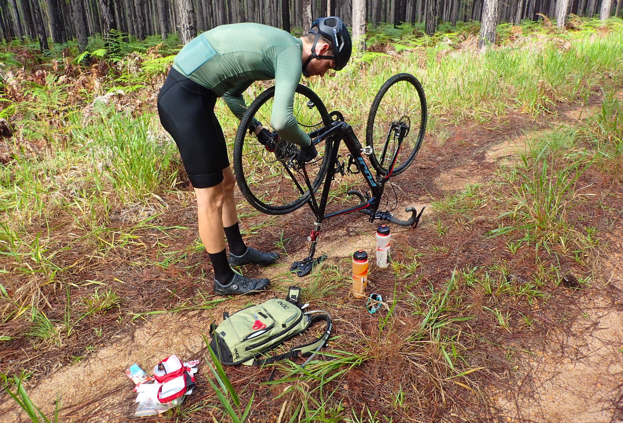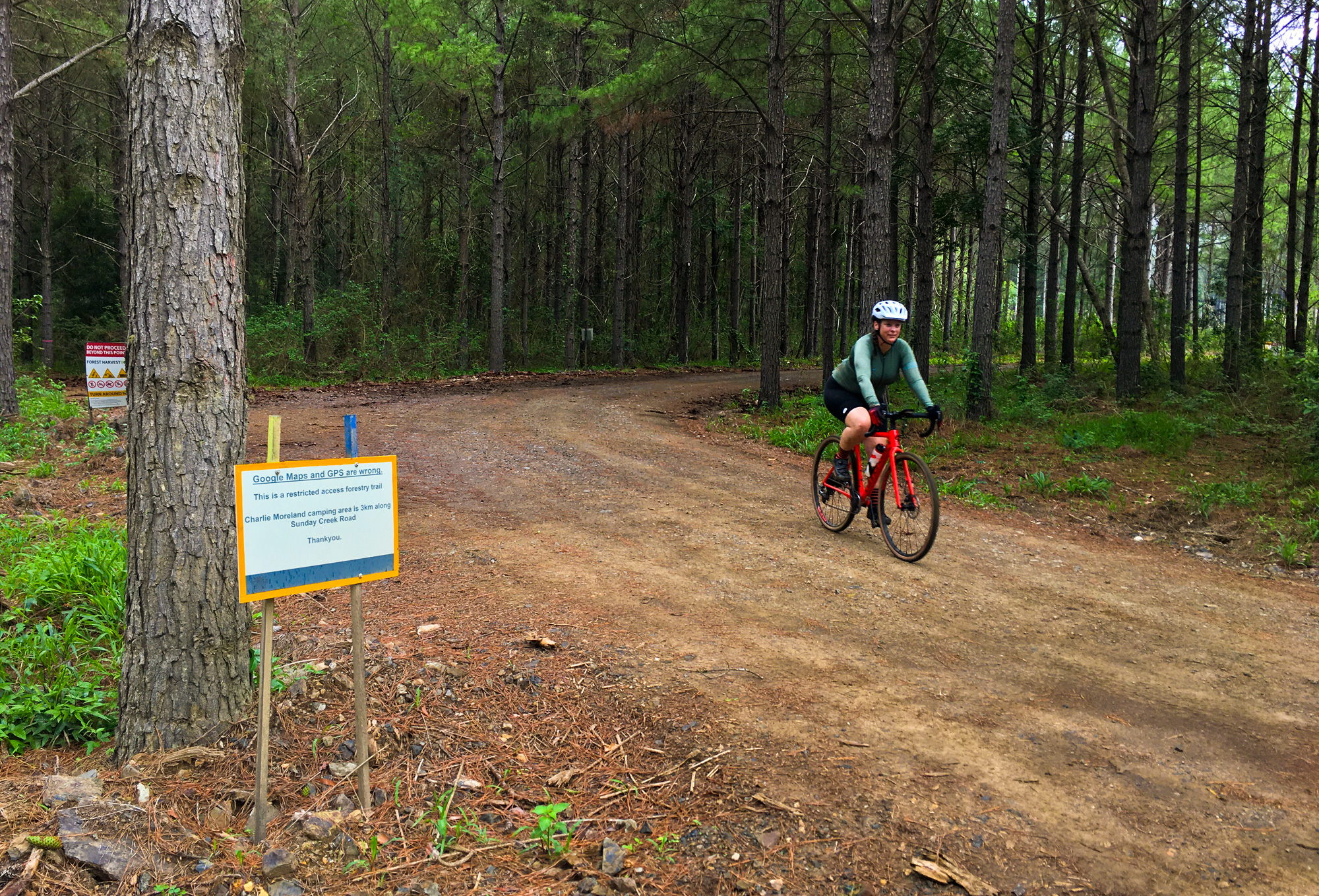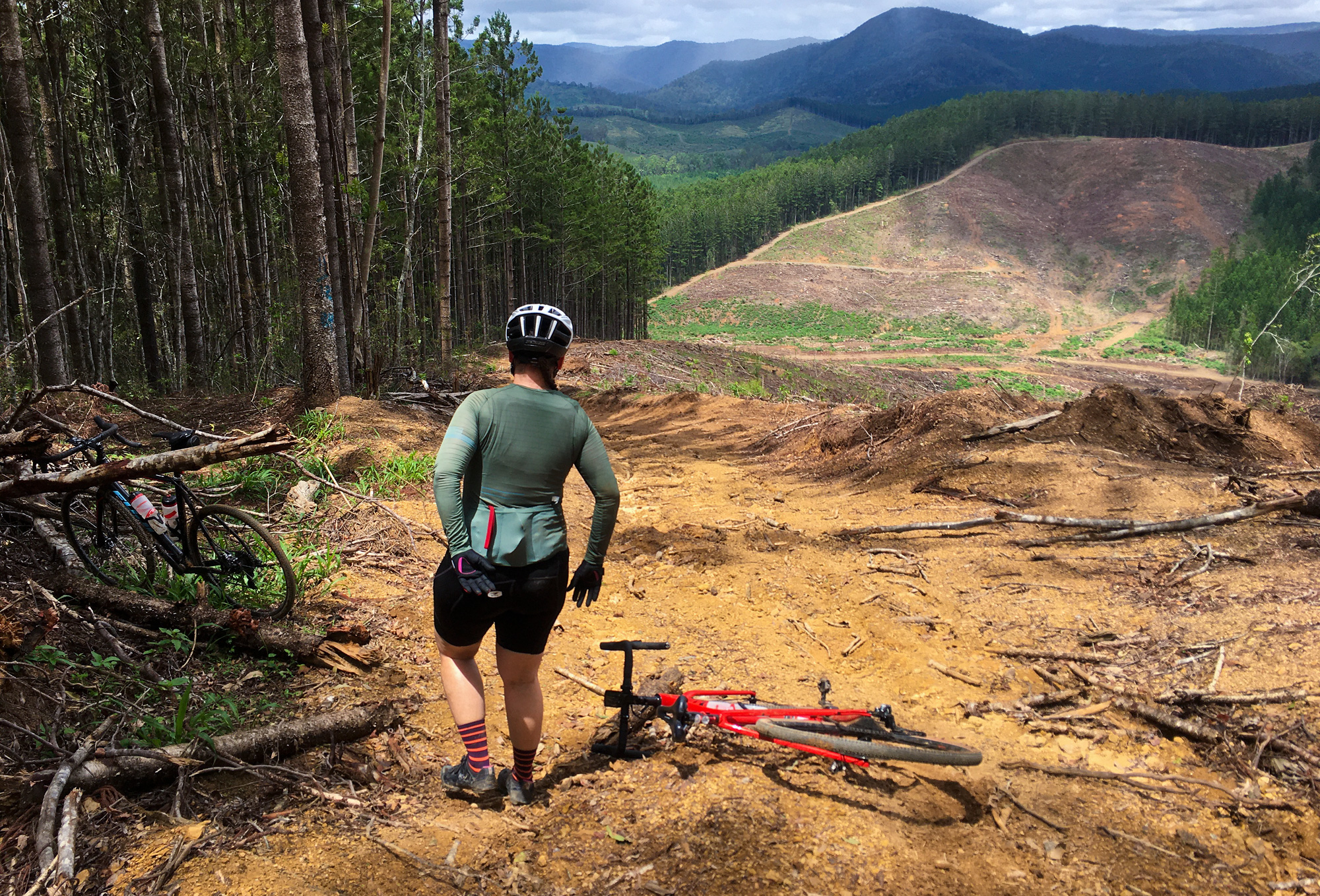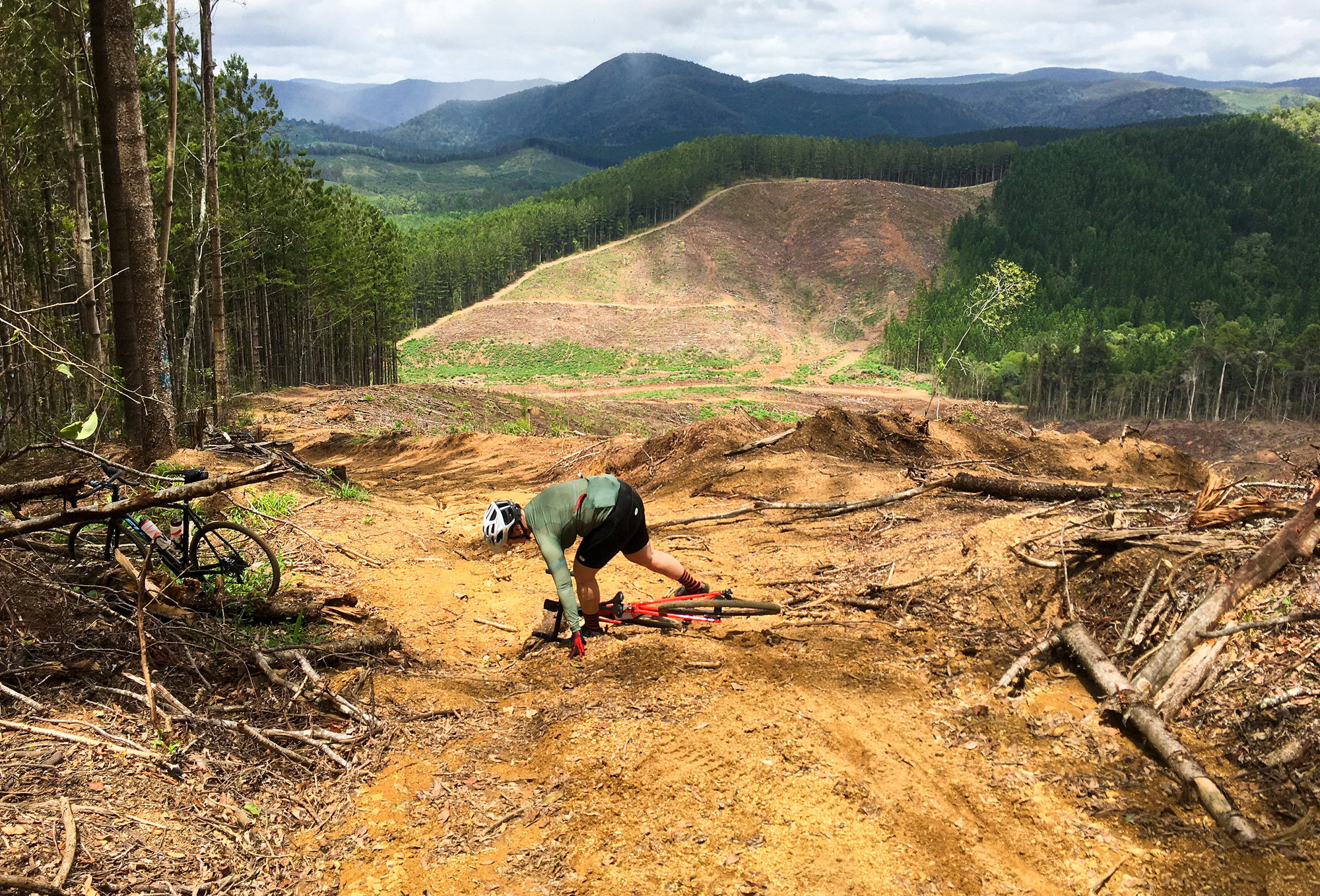 Eventually we made the way to the top of the climb. After removing the built up clay in the pedals, cleats and shoes we started out descent to the bottom of the valley. However it wasn’t to last very long. On the -10% and at times -15% gradients long ruts had formed and combined with the wet thick/tall grass made spotting them difficult which was made even worse with the slippery red clay. It wasn’t long until Bronwyn had her first couple moments shortly followed by a slow speed stack when she lost the front on some slippery clay. Luke quickly followed in a more dramatic fashion as he lost the front on one bit of slippery clay, into a long rut covered in grass, across the track into another rut and eventually losing the rear as it lost traction with the wet clay and spun around. We both decided to attempt the Mulgowie section another day when it wasn’t as wet on the steeper side. As we made our way back to Grandchester Mount Mort Road it still wasn’t stack free. One one -12% section Luke lost the bike on a soft section of clay when the front dug in and the rear slid out at low speed. Once we got back to the dirt road normal riding was resumed. The only problem we now had was avoiding eye level chunks of clay that were now being flicked off our wheels/bikes which was easily solved by grabbing a low hanging stick from a tree and scraping the clay off while riding. Once we got back onto Grandchester Mount Mort Road heading south it was 85% gravel roads over just about every single ridge line all the way back to Rosewood. You couldn’t see them all but when you got to the crest you knew there was another one just on the other side.
