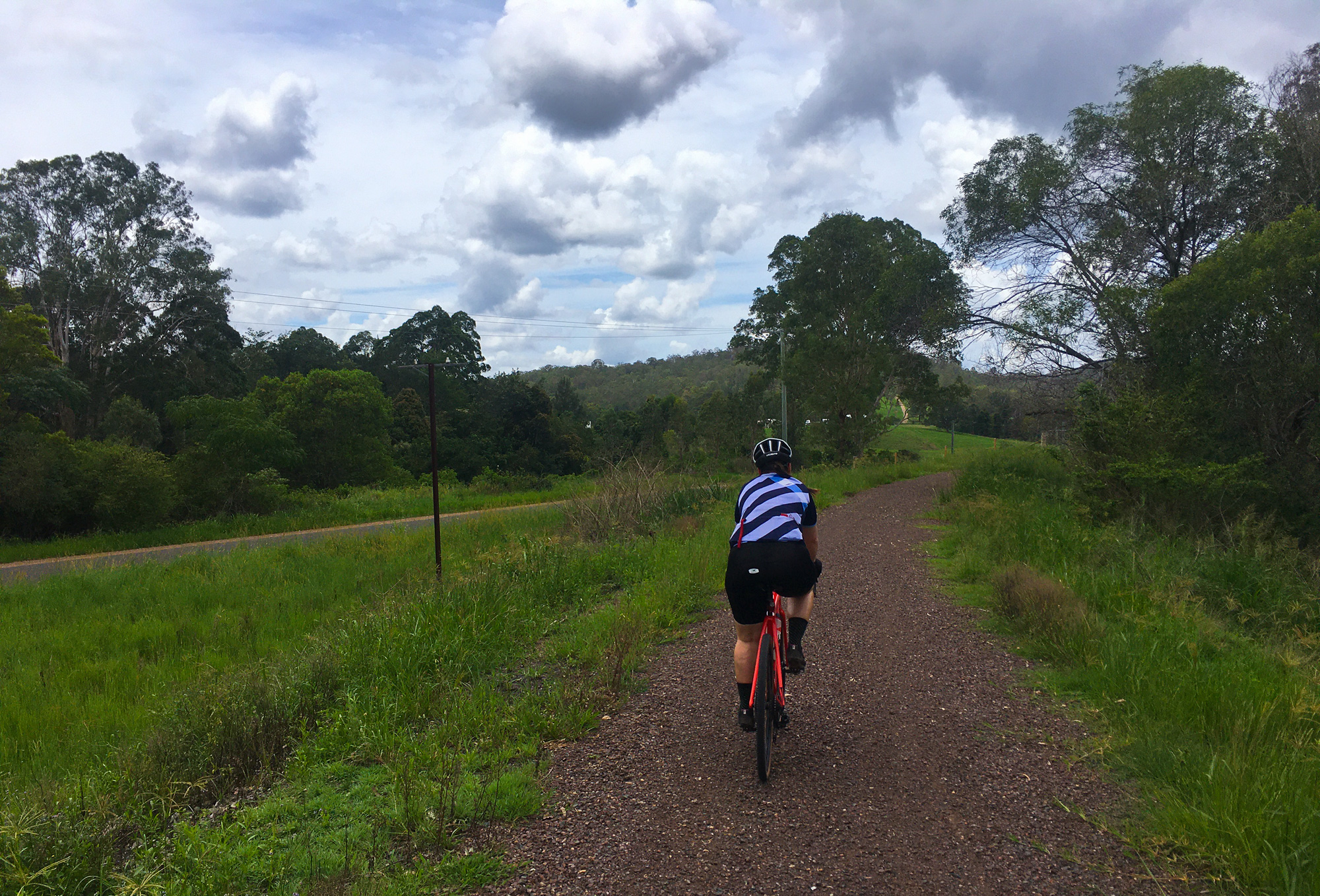 Following on from our previous ride from Rosewood to Boonah/Mt Alford we decided to further explore the still extremely green region. The intended route was to involve heading west from Rosewood before turning south at Calvert and heading towards Cottonvale. From there we were to head south along Grandchester Mount Mort road and turn west to go over the Mount Beau range to Mulgowie Road. Once there we were to head south to the turn around point in the mountain valley of Townson before heading north back over Mount Beau to Mount Mort and eventually back to Rosewood via the gravel Mount Walker West Road. Conditions were overcast with scattered showers and sever thunderstorms. It seemed that we had missed the majority of the showers and the yellow/red thunderstorms on the radar but just as we were about leave Rosewood some light rain came so we waited at the railway station for a few minutes to let it pass. When we finally got under way to the south it was a light grey mist hiding the thunderstorm behind it but every now and then you’d catch a glimpse of the lighting that was in it. For a brief time the sun came out but as we made our way towards Calvert the sun was gone and the rain was back.