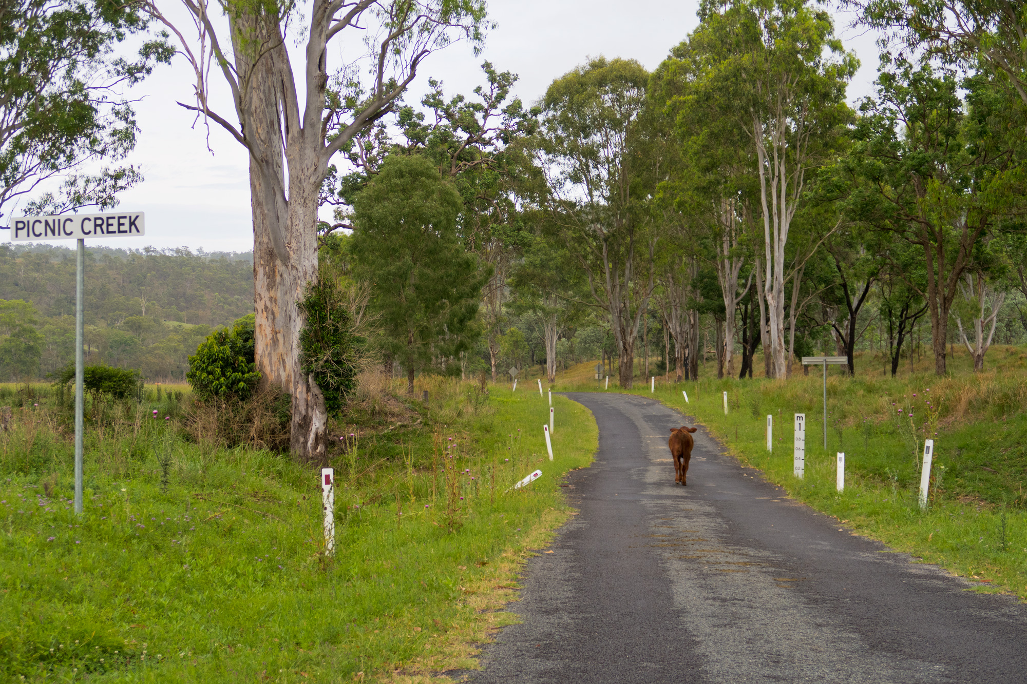 While the thickest section was only 30m Luke was continuously counting down the distance to the road. 1.7, 1.5, 1.3, 1.1, 0.9. At 0.7 he said that “We should be able to see the other track to the right”. We didn’t see any track but we did see a fence line and the lantana starting to get thicker up ahead. So Luke walked through the bush and popped out into a clearing and found that the was no secondary track as indicated on some maps but the fenceline and track we were on merged 50-60m further along meaning we could just bypass the last of the lantana. From there it was only 600m back to the Western Branch Road.