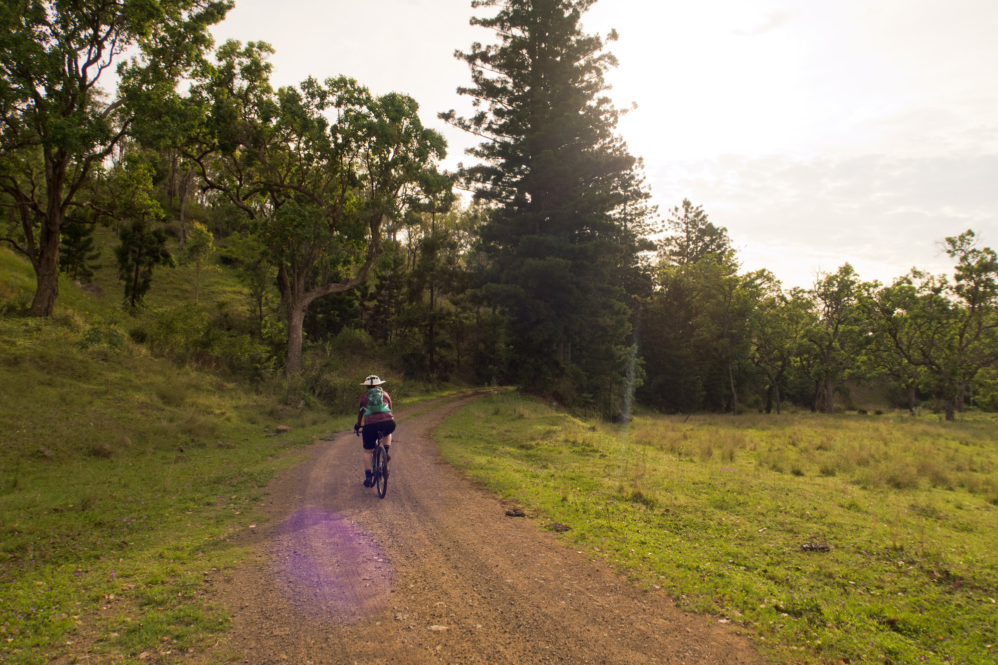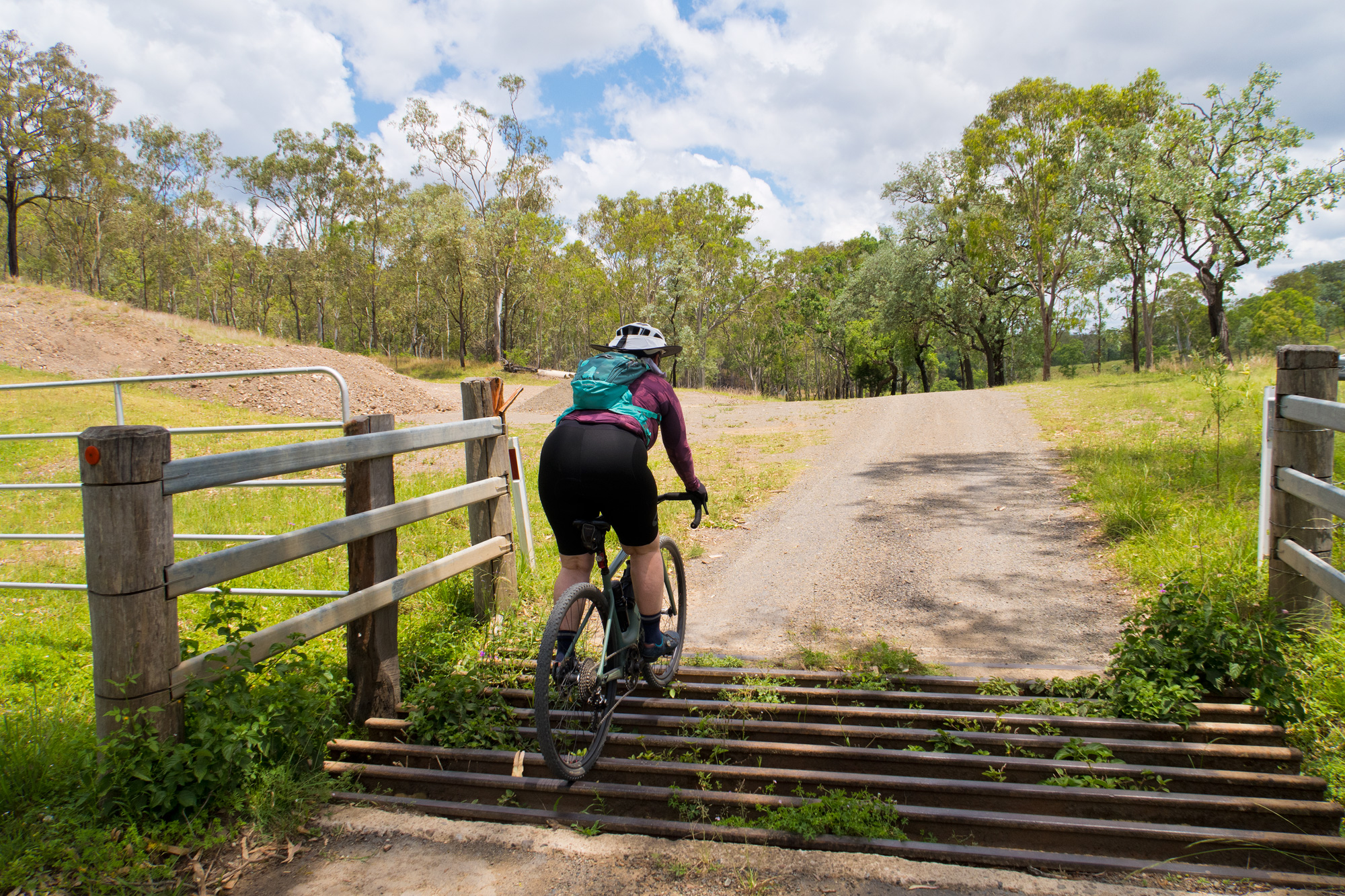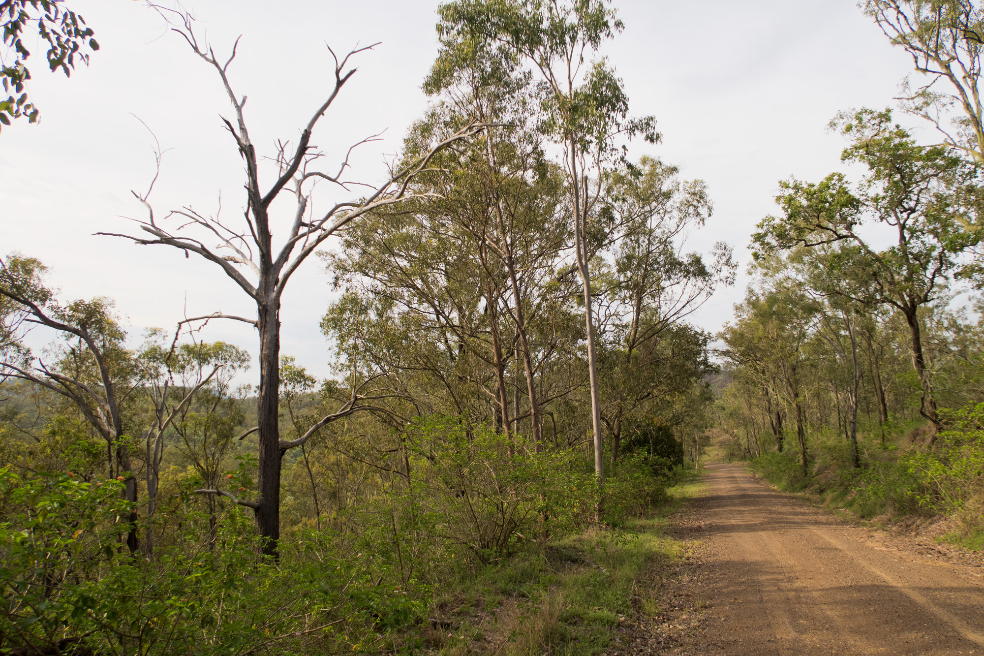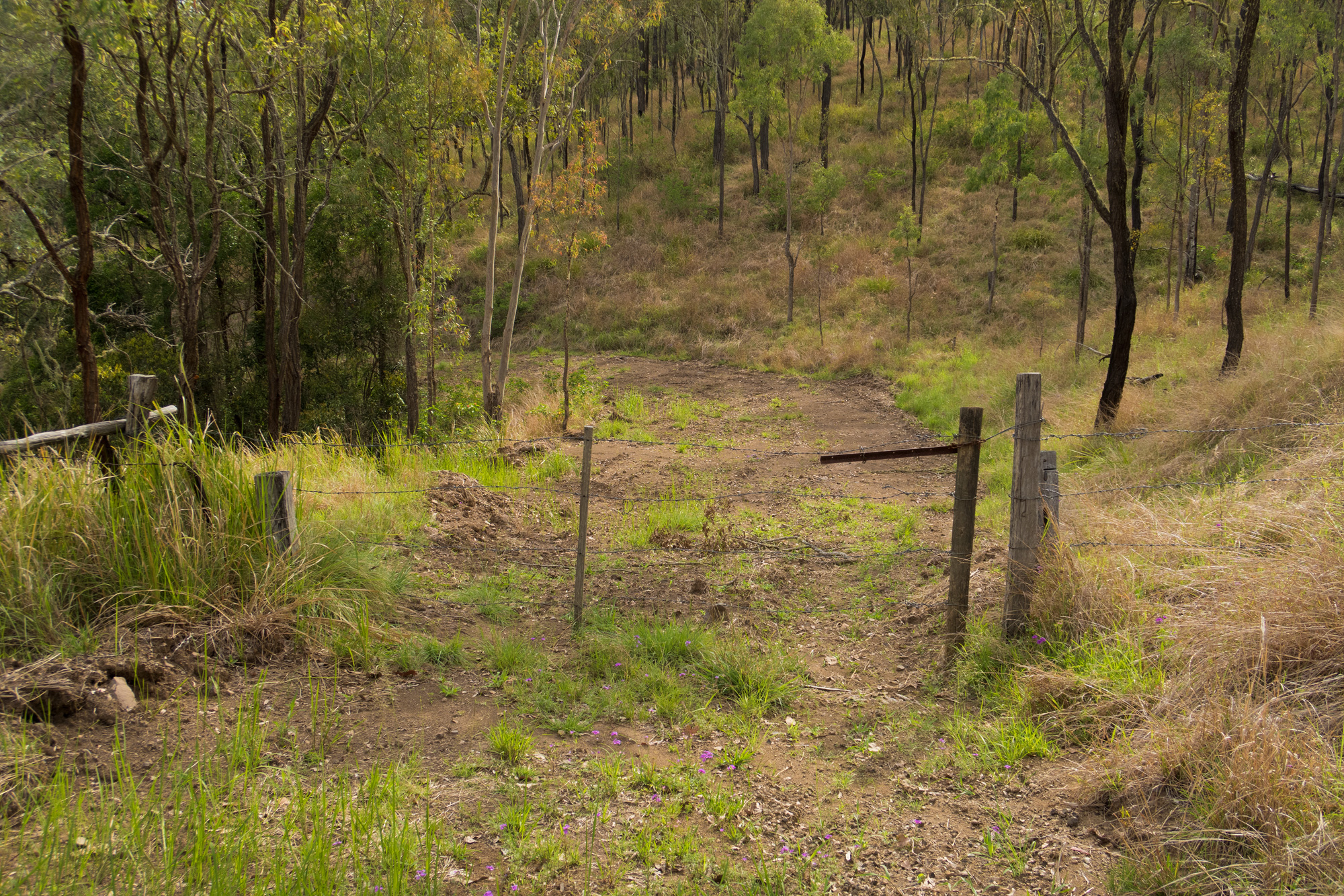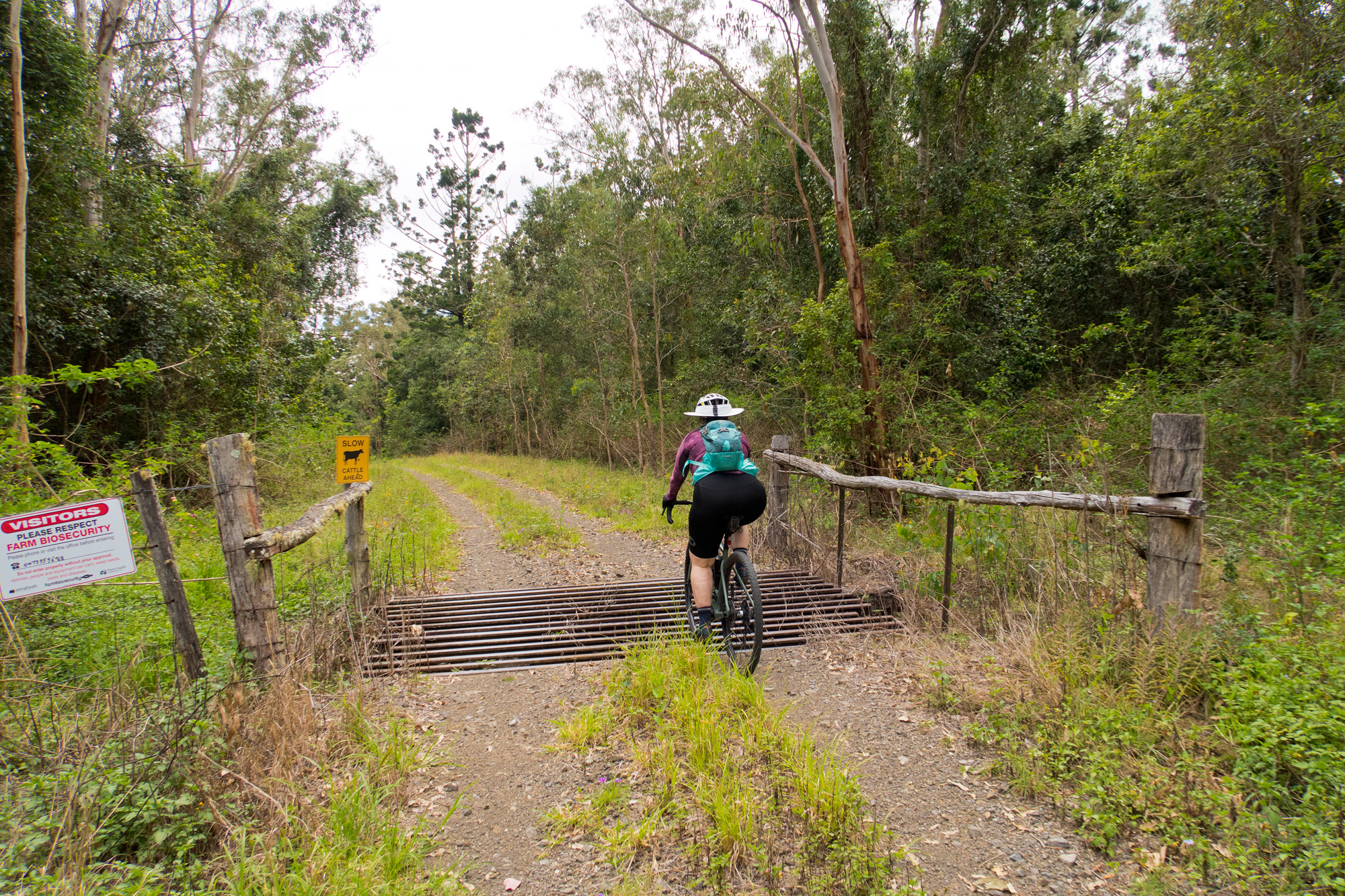 Our original plan was to continue to the right and continue along the Wombi Creek Road (Western Eastern Branch Link) before turning north and heading to Elgin Vale but a somewhat recently regraded track appeared – more than likely done as a fire access/management trail. A quick check on the map and it would eventually link back up with the route north. So we thought we’d check it out as we could ride on or continue back. There was a little more climbing but along the way there were a few places where you could look across to the Brisbane Range. Eventually at the top there was no flat running but instead it turned straight into a descent on semi soft dirt – defiantly a descent route instead of an ascent route with that surface. About a 1/3 into the descent we came across a barbed wire gate with a lock on it. It’s always interesting coming across the different types of gates and their retention locks when doing some of our adventure rides. But its always a good reminder not to bomb down random forestry descents especially in low light/night as the barded wire fences/gates aren’t the easiest to see.