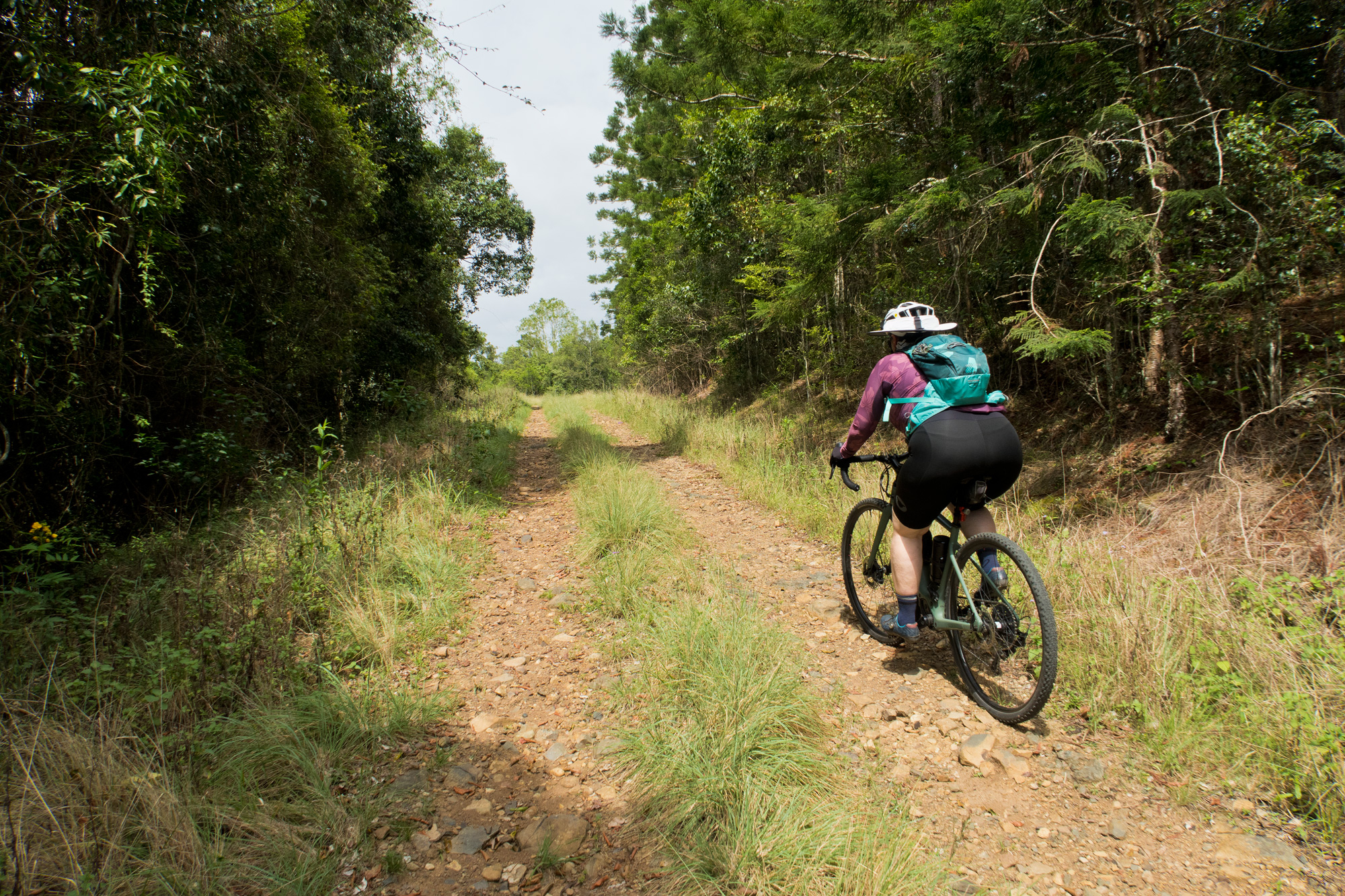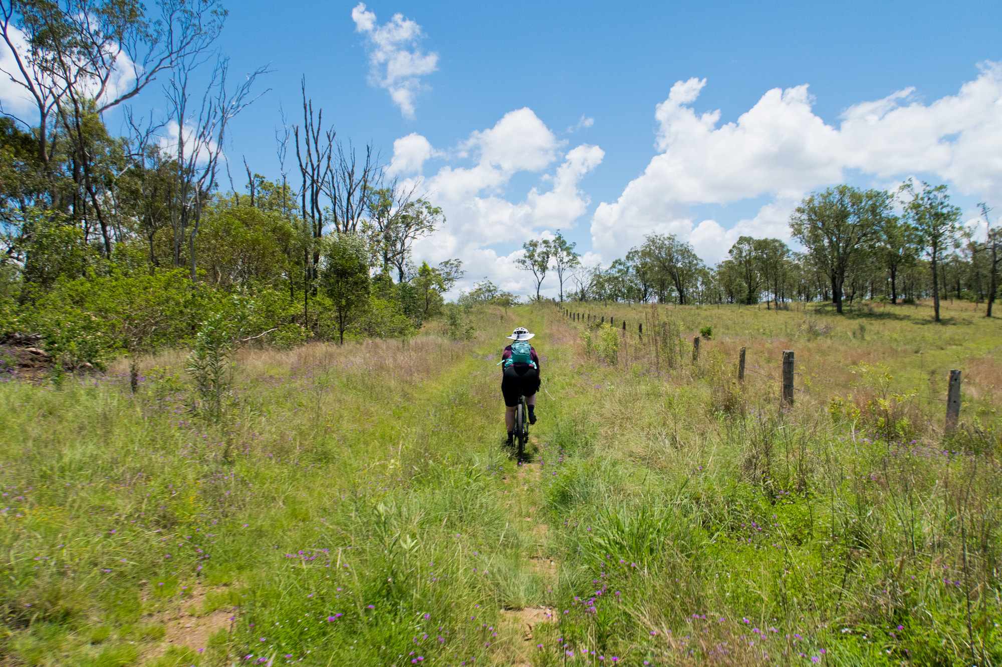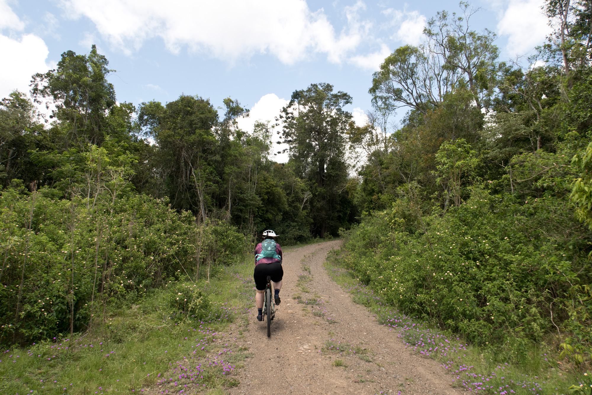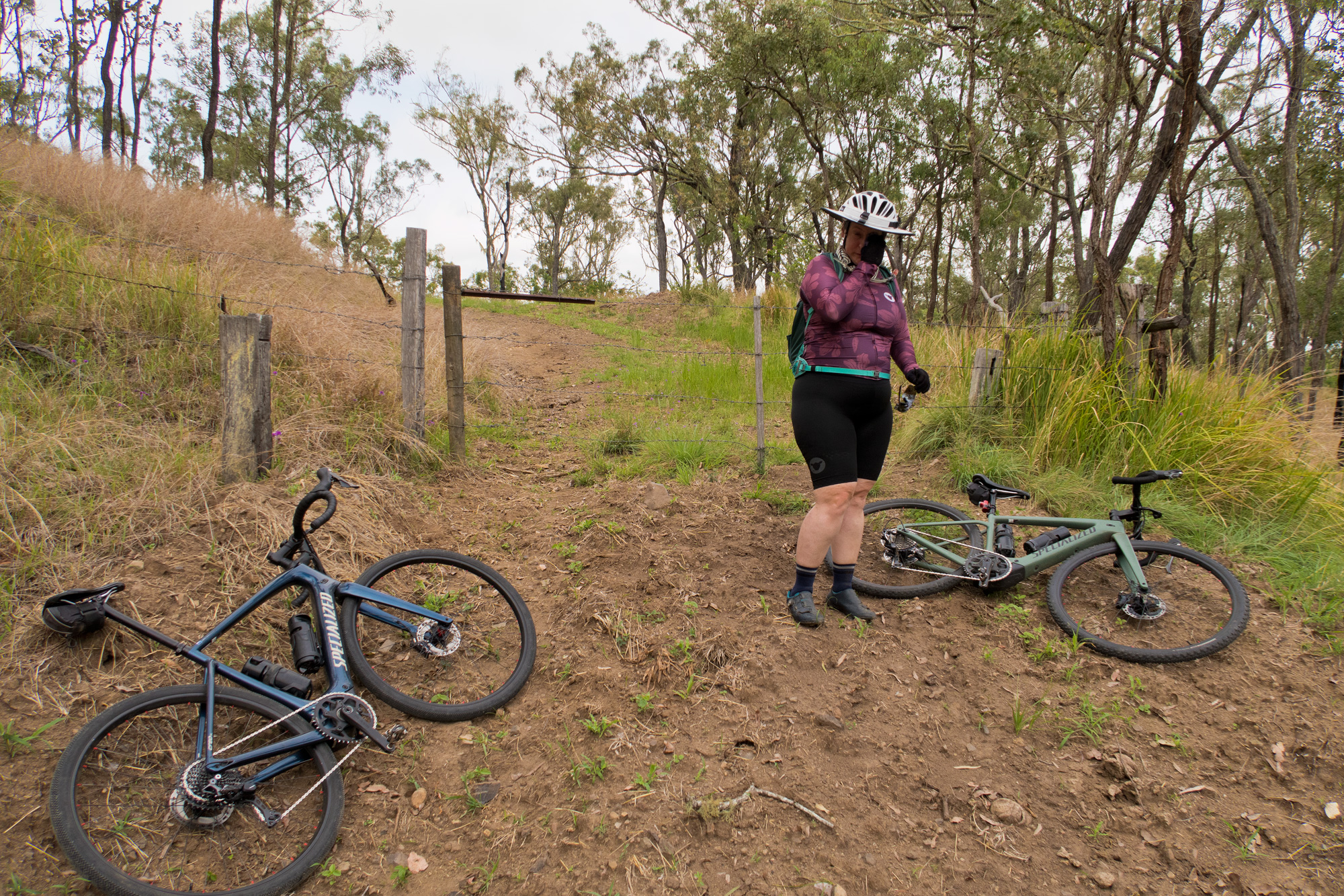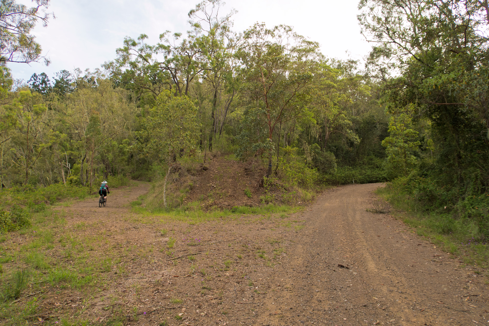 At this point now Bronwyn wasn’t enjoying the outlook of having to ride back along this same energy sucking hard but large loose rock trail so we made the decision to keep an eye out and try and make our way to the Western Branch Road without having to ride all the way via Elgin Vale. But as we continued north track after track that headed west was overgrown with lantana and weeds. So it was starting to look like we’d do a few loops around to the north and then head to Elgin Vale and come back via Manumbar Road/Western Branch Road.