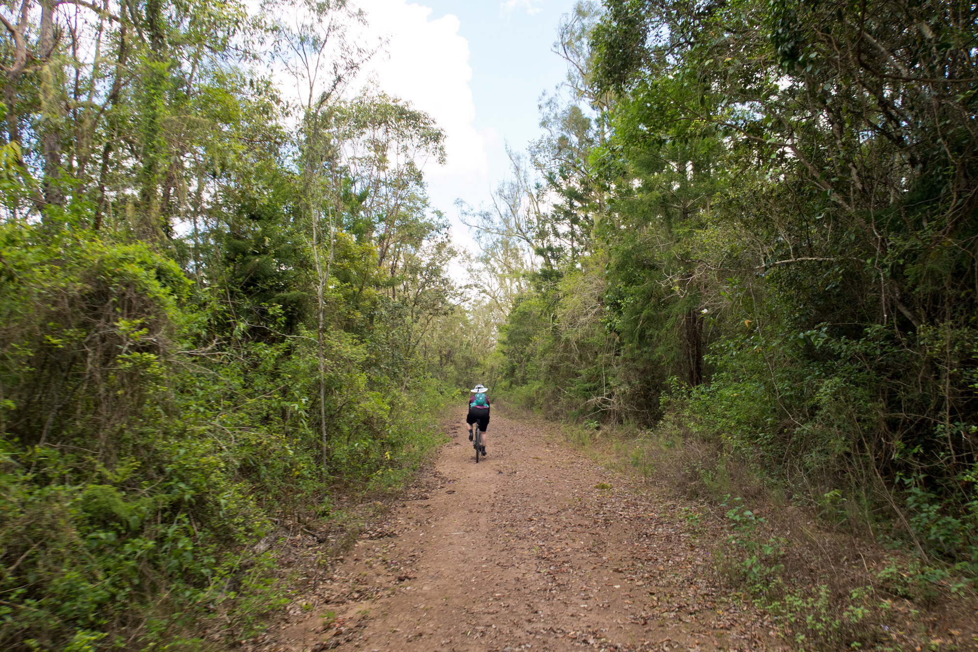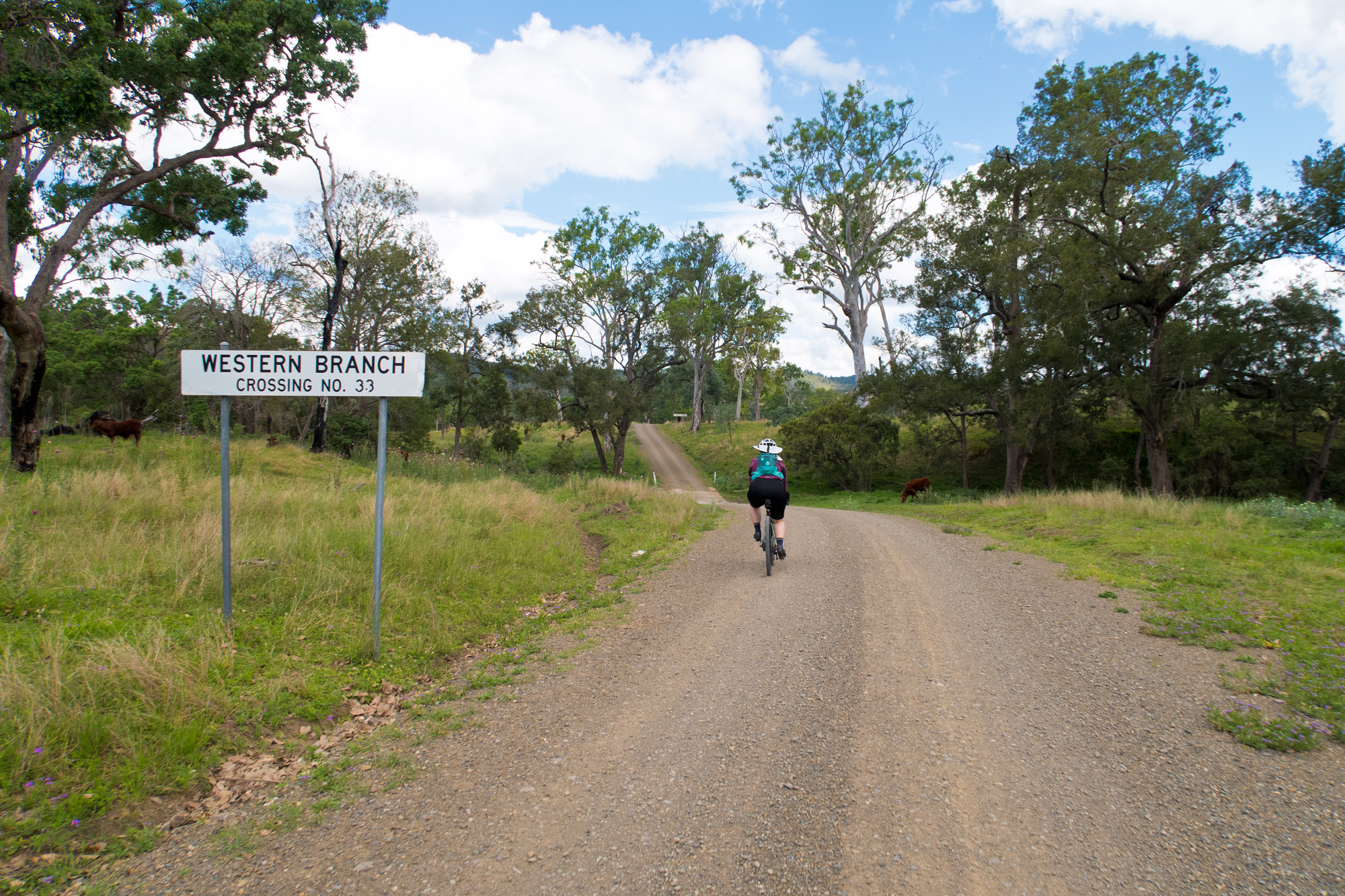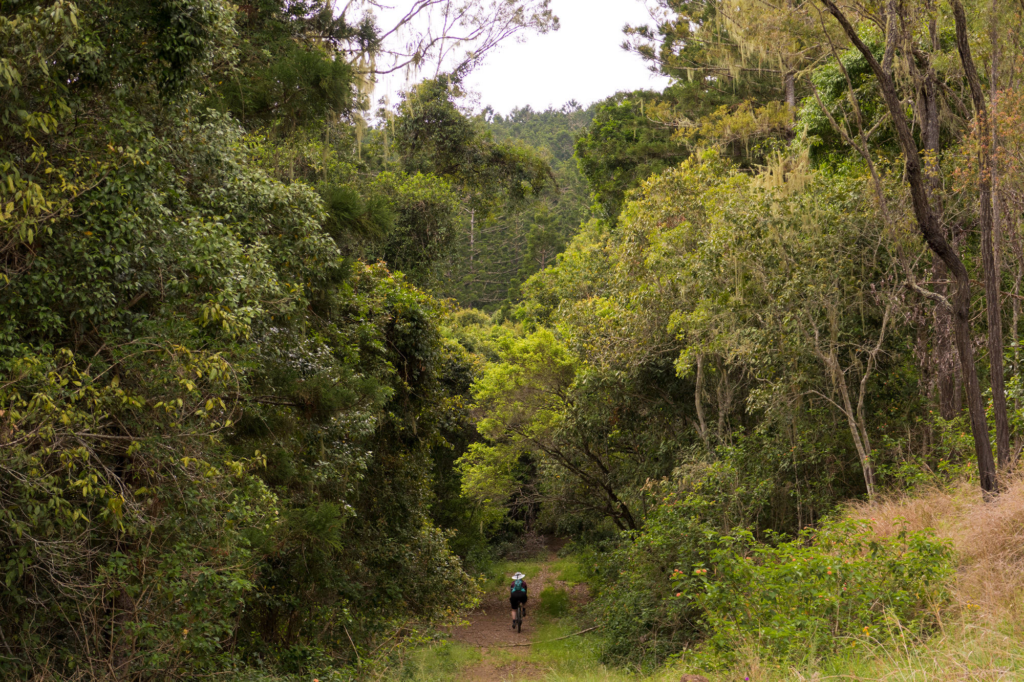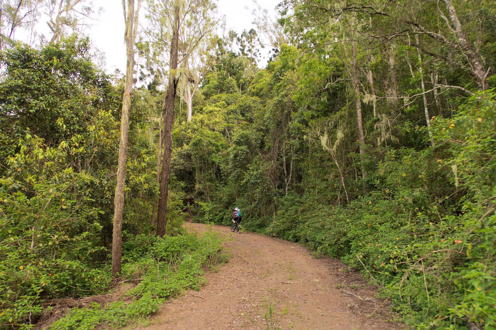 Through the gate on the right continued on with the cleared track while to slight left was a track that had the early signs on lantana starting to grow over it. To the right headed up to Elgin Vale for a 30km detour or to the slight left was 2km to the Western Branch road. We took the left. For the first 700m you could still ride through it if you ducked your head down but then it got thicker. Even though Luke considered bringing his machete/bush saw just in case but thought we wouldn’t need it.