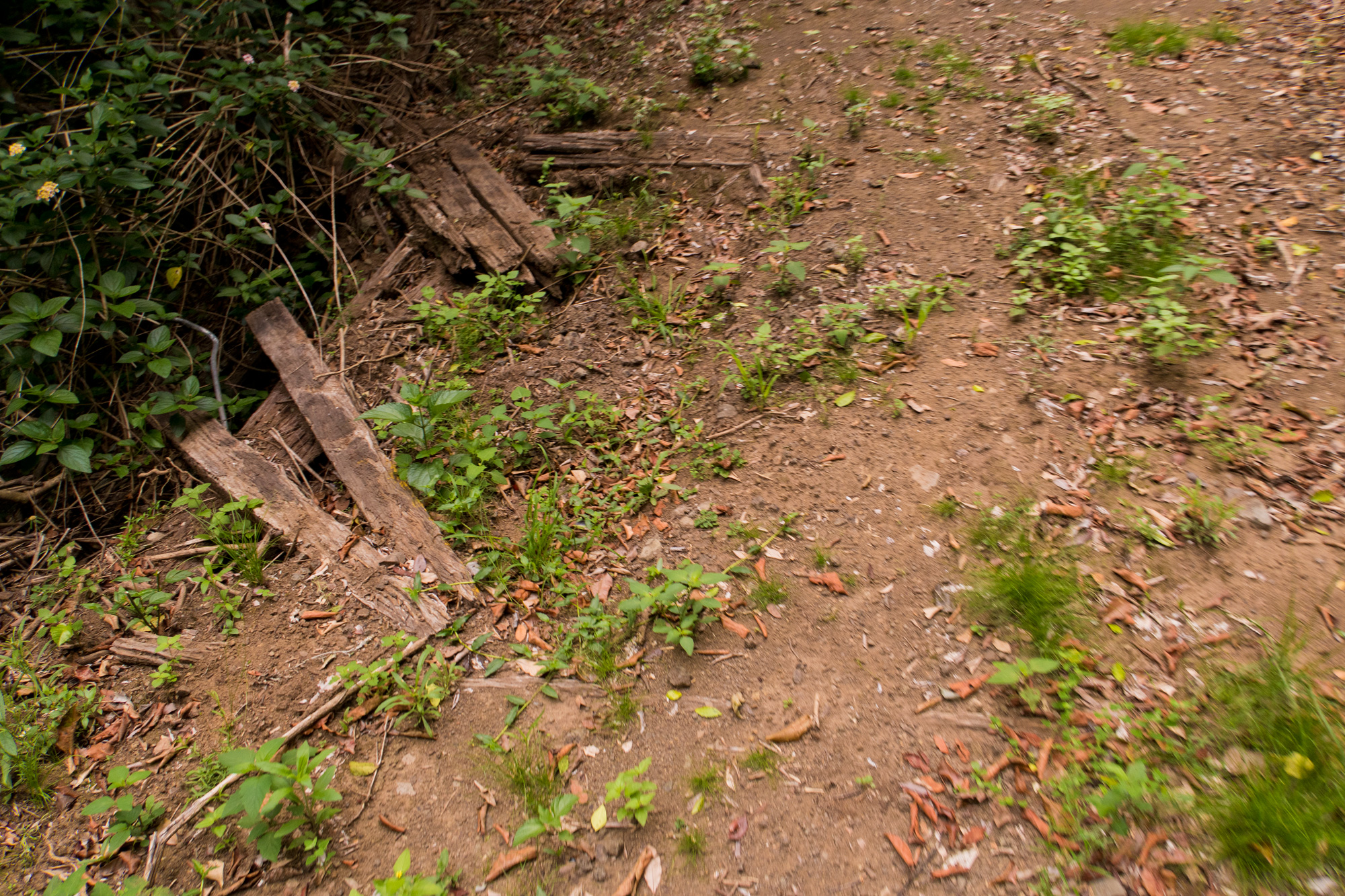 So close to connecting back up with our intended route. While the track to the right was unpassable the route to the left was the best looking option even while overgrown with flannel weeds.