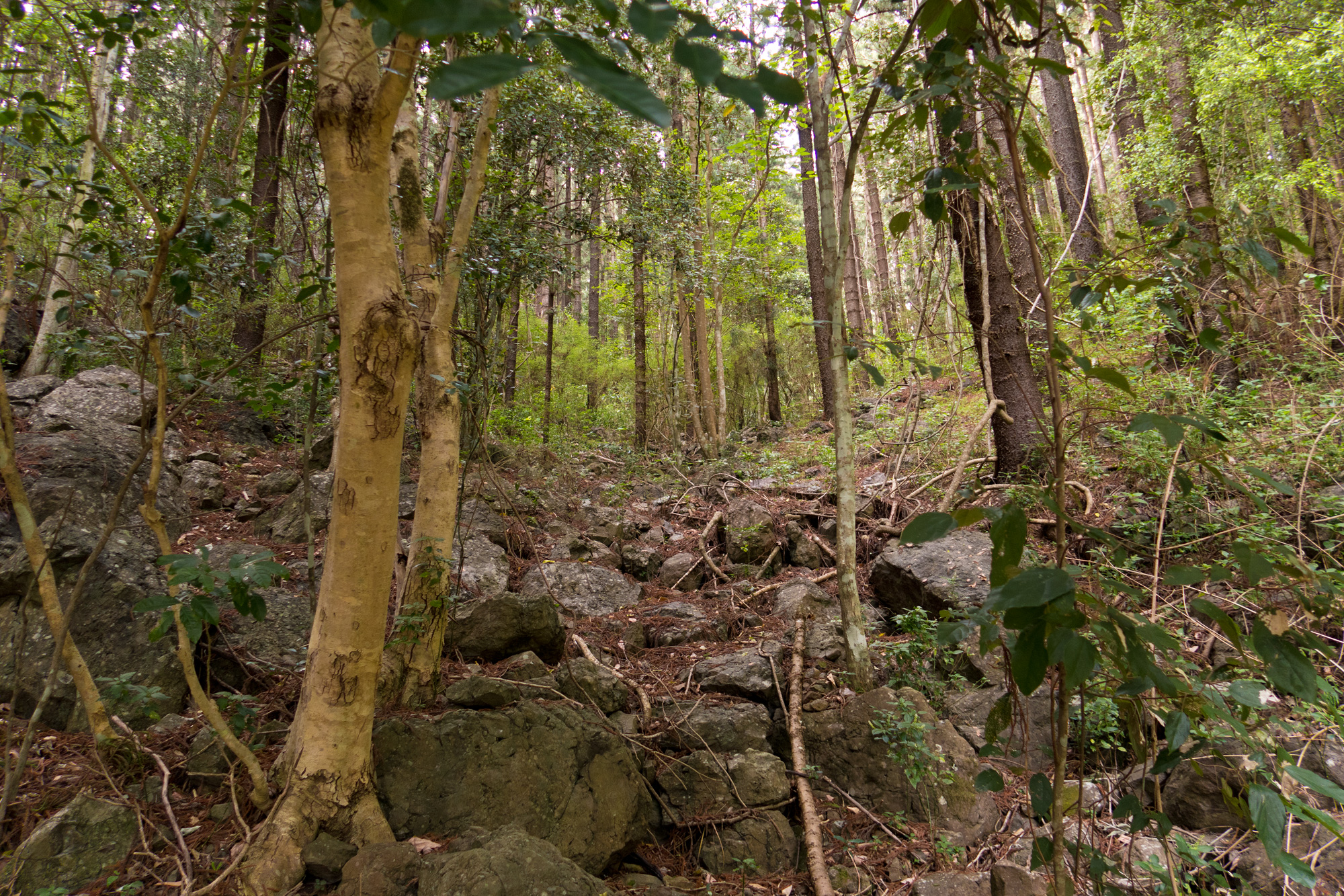In 2020 we came out of the track on the right. In 2025 it was completely overgrown and not navigable without some machinery. We checked out where we rejoined and other possible tracks but they too were also overgrown with lantana and weeds. That pretty much all but rules out any connection to the top where it changes to Elgin Vale State Forest via Eastern Branch road/Wombi Creek with the only link now via Wombi Creek Road (Western Eastern Branch link).