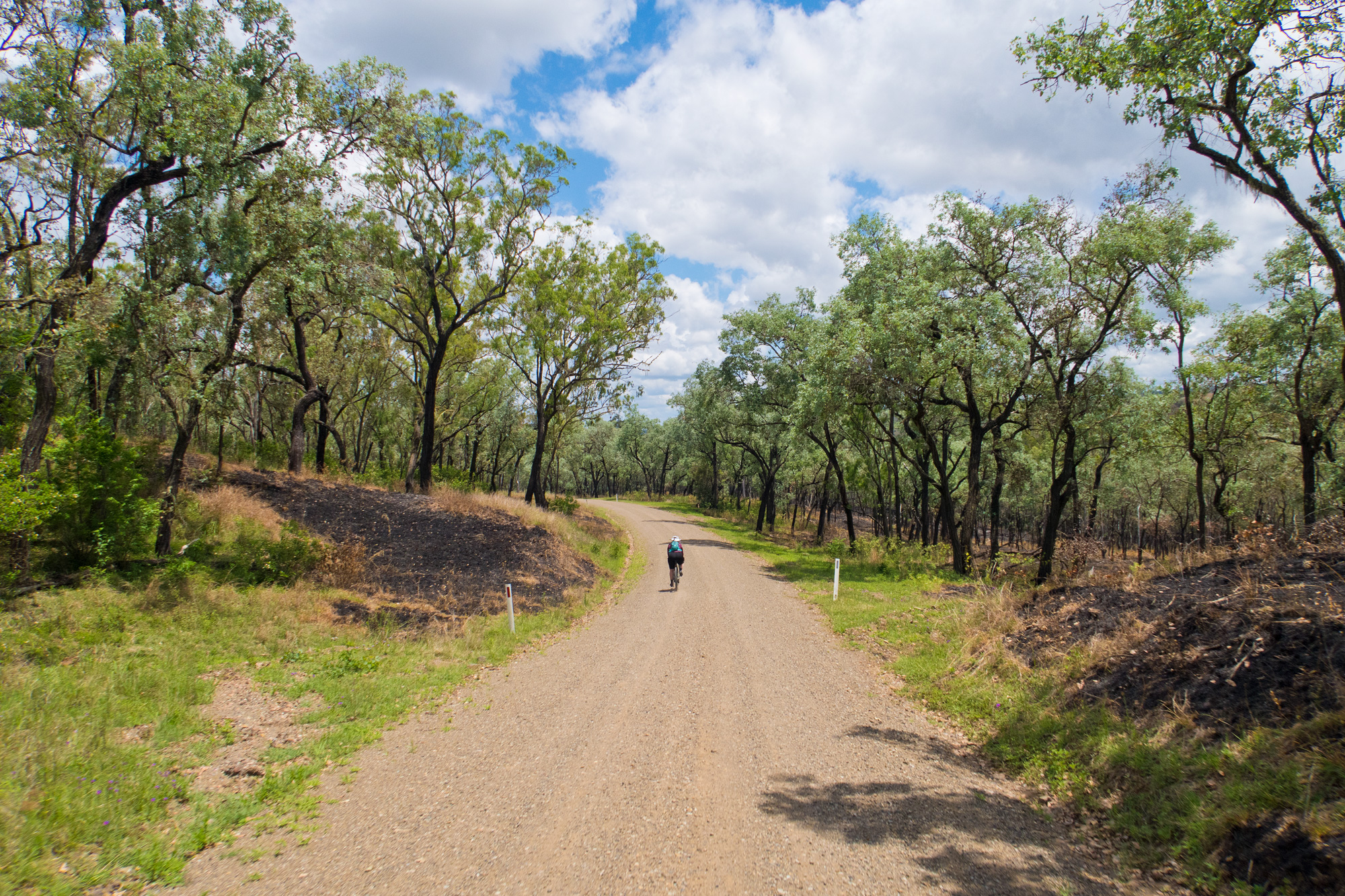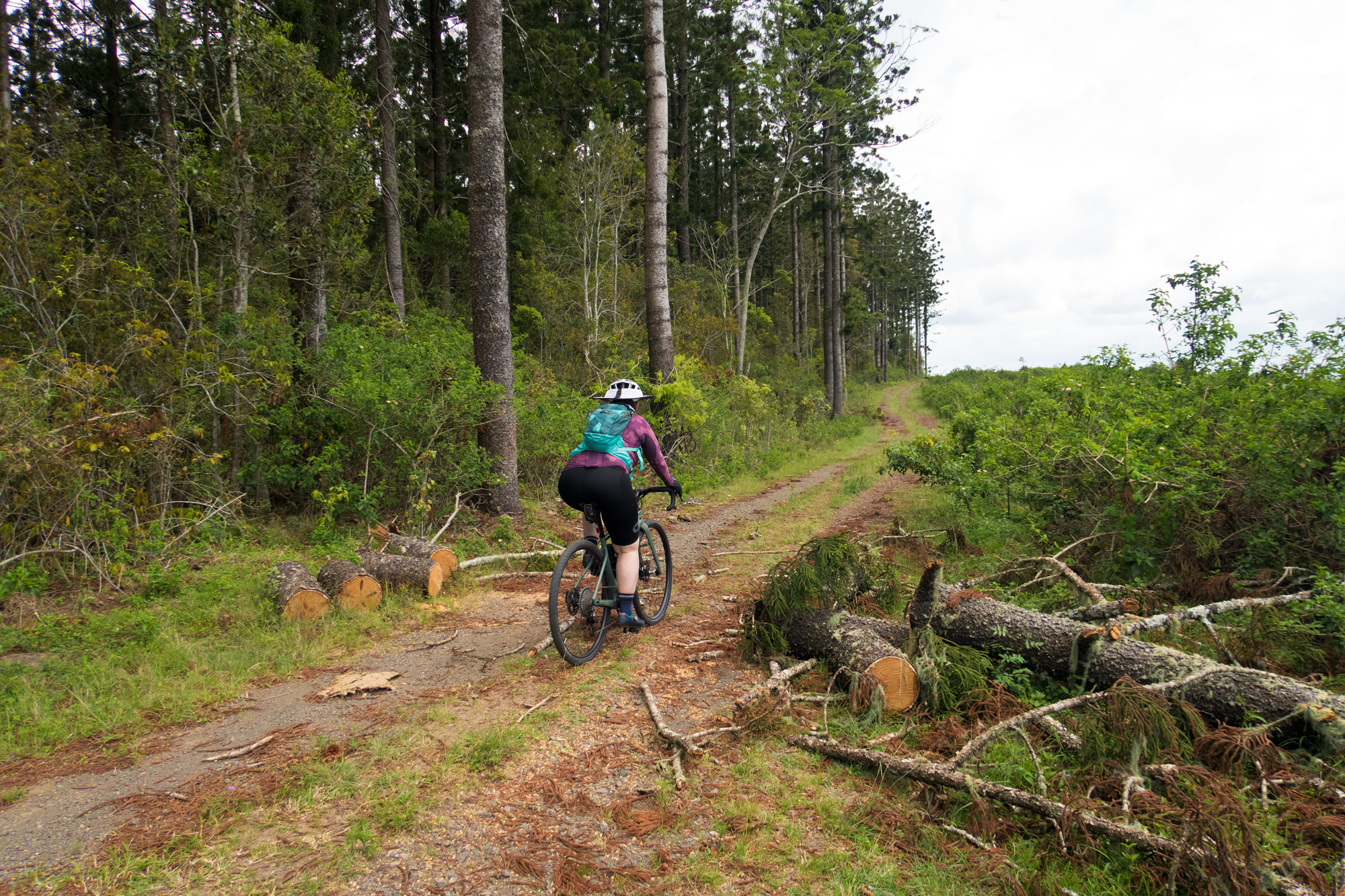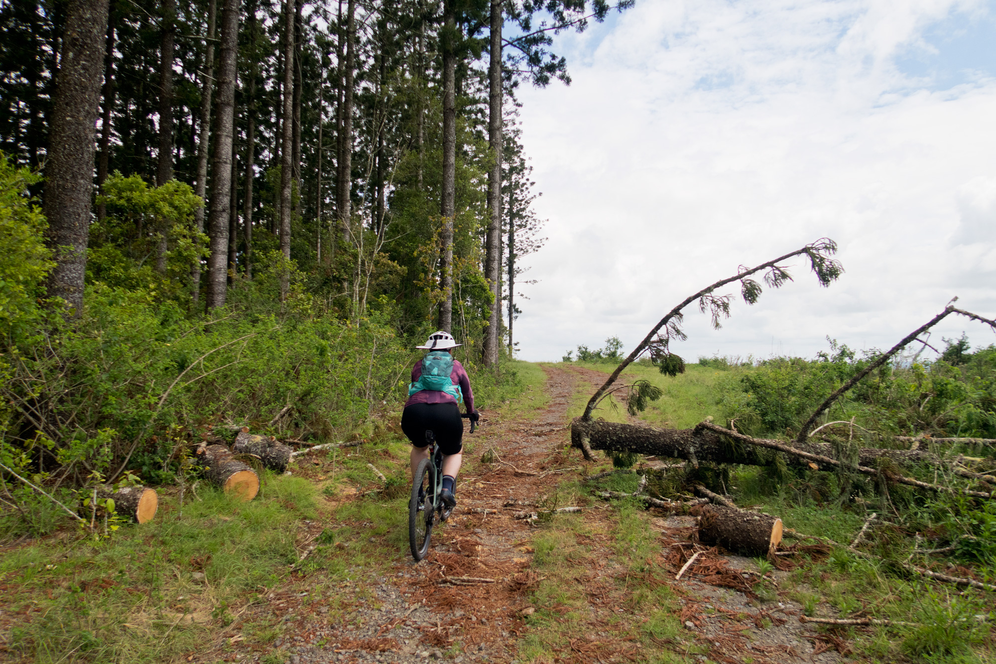Just like every other time as soon as we made it into the pine forest the temperature was just a lot cooler. Even with the direct 11-midday sun overhead it was still a lot cooler than exposed section we just rode through. It was looking good as we made our way west. We left the pine plantation and into eucalypt forests where it was a few degrees cooler but still dramatically better than the open and exposed areas. We went through a couple barbed wire gates again and along recently cleared sections of track but with about 2km to go until we hit the Western Branch road we got to a Y junction.