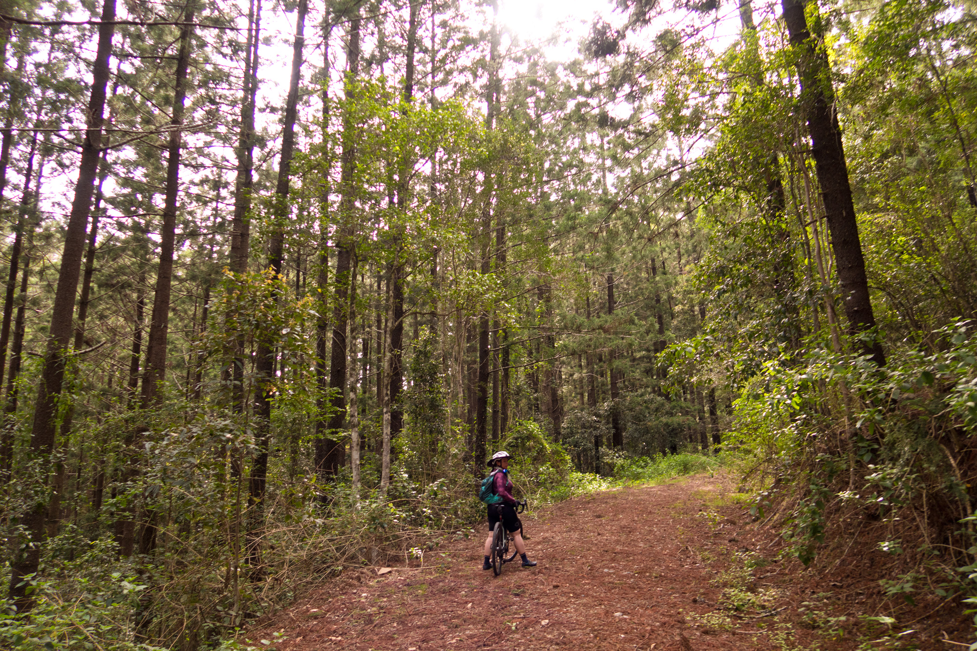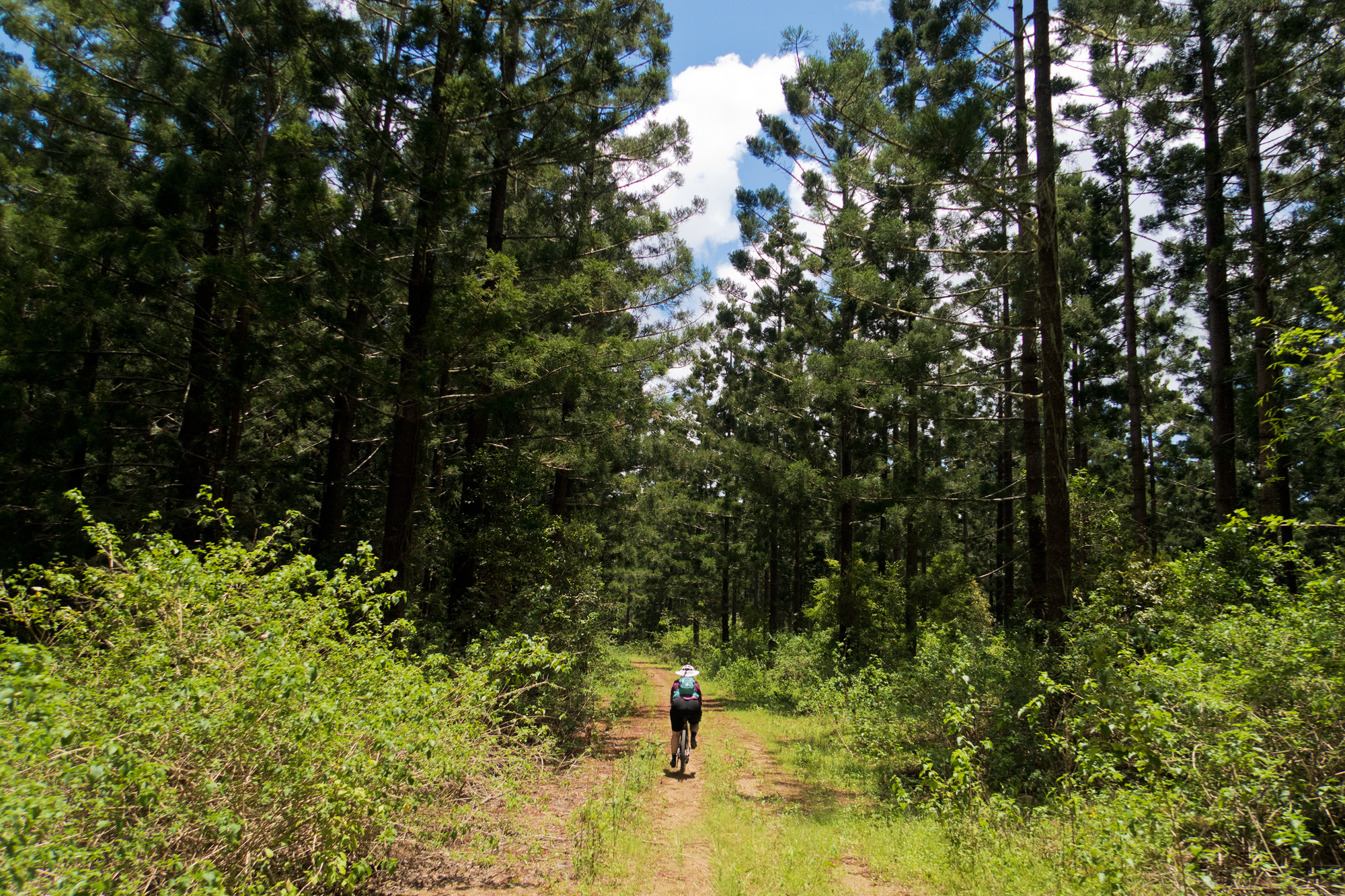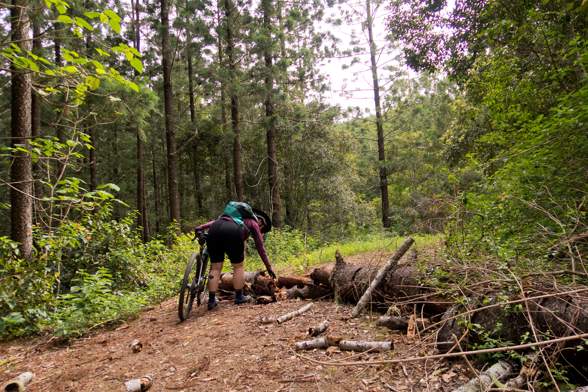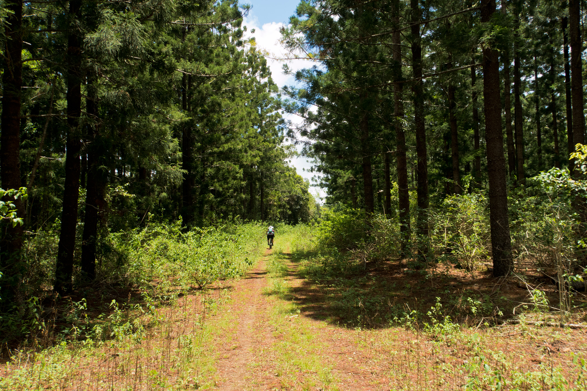 Just like every other time as soon as we made it into the pine forest the temperature was just a lot cooler. Even with the direct 11-midday sun overhead it was still a lot cooler than exposed section we just rode through. It was looking good as we made our way west. We left the pine plantation and into eucalypt forests where it was a few degrees cooler but still dramatically better than the open and exposed areas. We went through a couple barbed wire gates again and along recently cleared sections of track but with about 2km to go until we hit the Western Branch road we got to a Y junction.