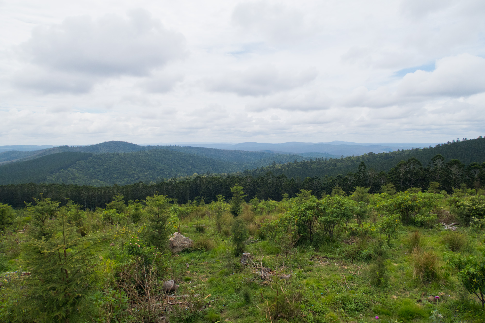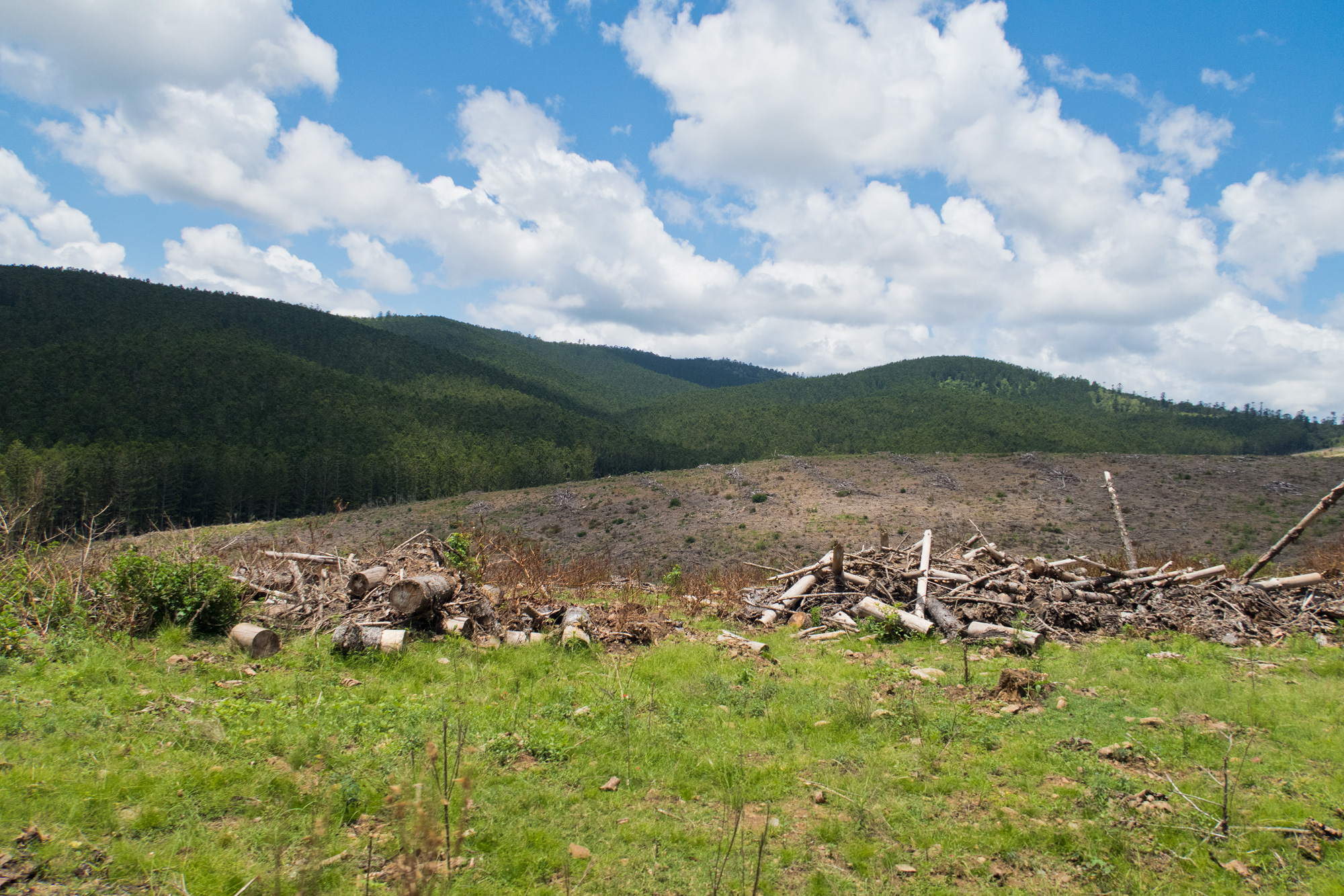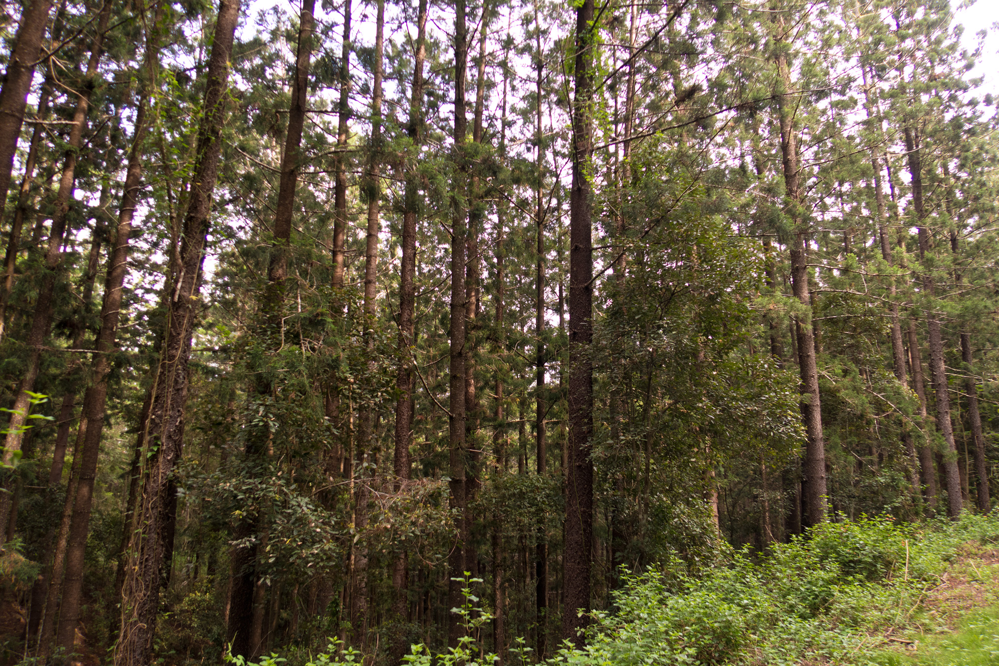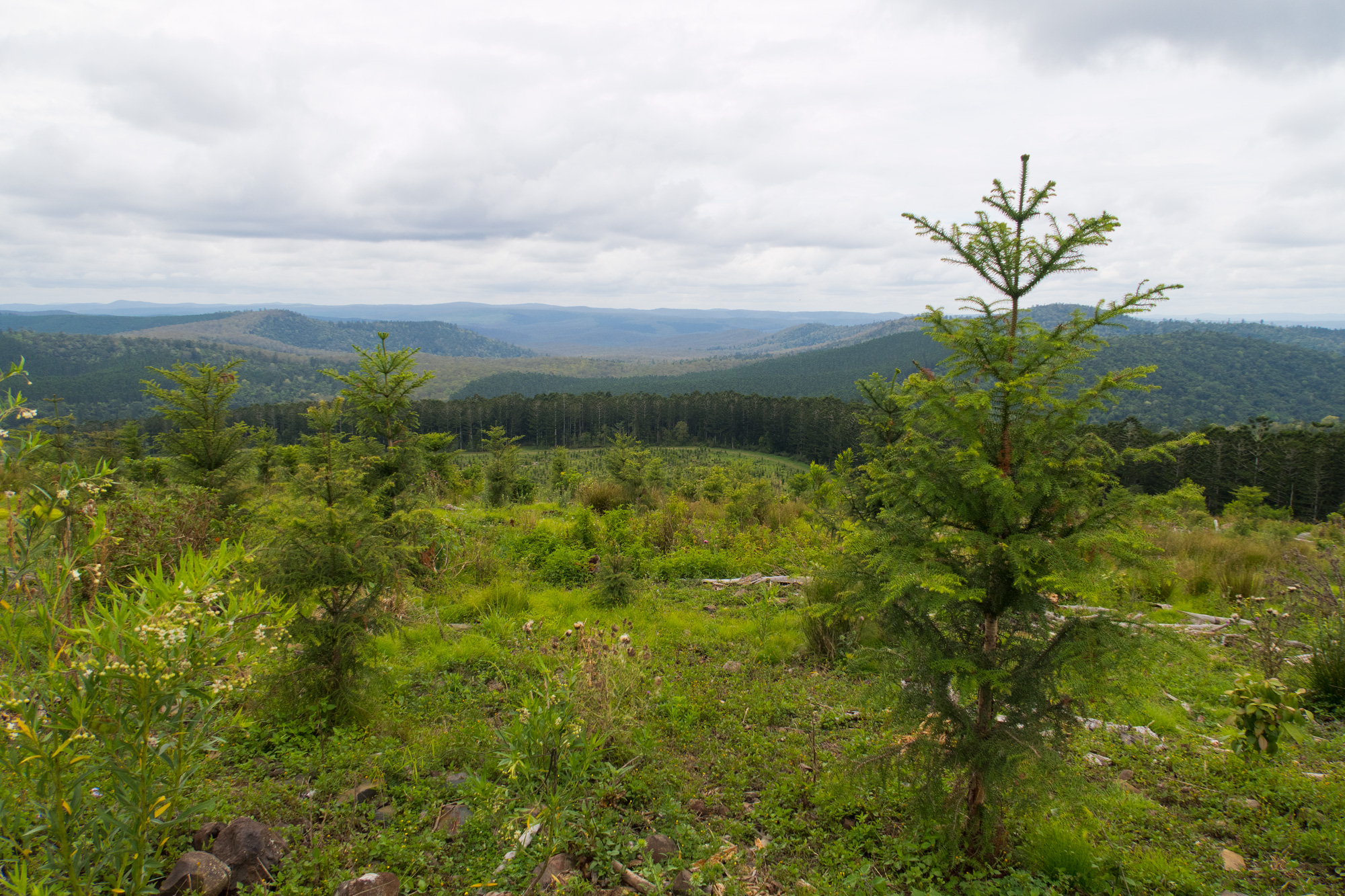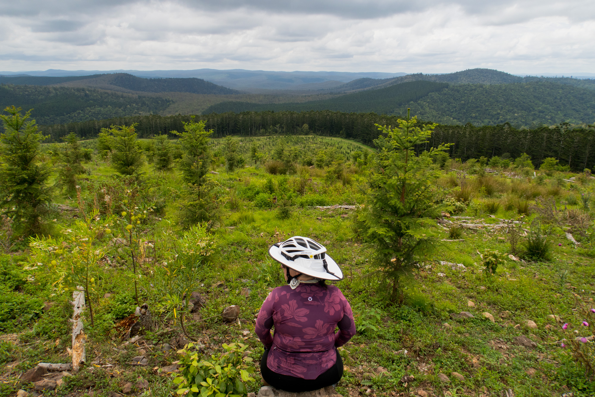 While we were having our pre prepared chicken sandwich brunch at the lookout we further checked our maps for possible alternative routes to get back to the Western Branch road without going via Elgin Vale or back along the track we just came. As we’d have to back track if it wasn’t passable we decided to cut off the loops to the east and instead check out some of the loops to the west. One route linked up to the Western Branch Road however it was the same track that was earlier covered in Lantana and weeds. As it was starting to get a bit warm now we headed off. The descent was a little steeper and rougher than last time as the logging track had lost all its road base since we had last ridden it. On the way down we past a large black dog (actually a cow) that just stared at us before running off. Eventually we got to the bottom and started our way west. This is where we first started seeing that the area had been somewhat recently logged so we had good expectations that the tracks should be passable and as we came out into an open area we could see the track go up and over the ridges so it was looking promising. But by now the heat had really started to build and since there was no longer any pine plantation it was hot, open and exposed. So we made the decision to cut the loops off and make a straight run back into the cooler temperature pine forests much to Bronwyns delight as she was starting to struggle just before the turn to head west.