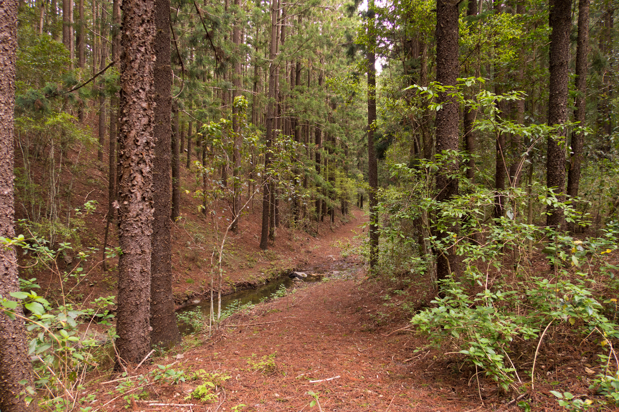 While we were resetting the gate the heat was noticeable and really started to ramp up but knowing we weren’t far from the pine forest we knew the dramatic change in temperature wasn’t far away. Once we were at the junction even though we were on the border of the pine forest it was already noticeably cooler to the point where our glasses were starting to fog up. Riding around the pine forests you’ll always come across creeks, creek crossings, dams, man made timber/rock bridges that are over 80 years old and tracks covered in pine needles.