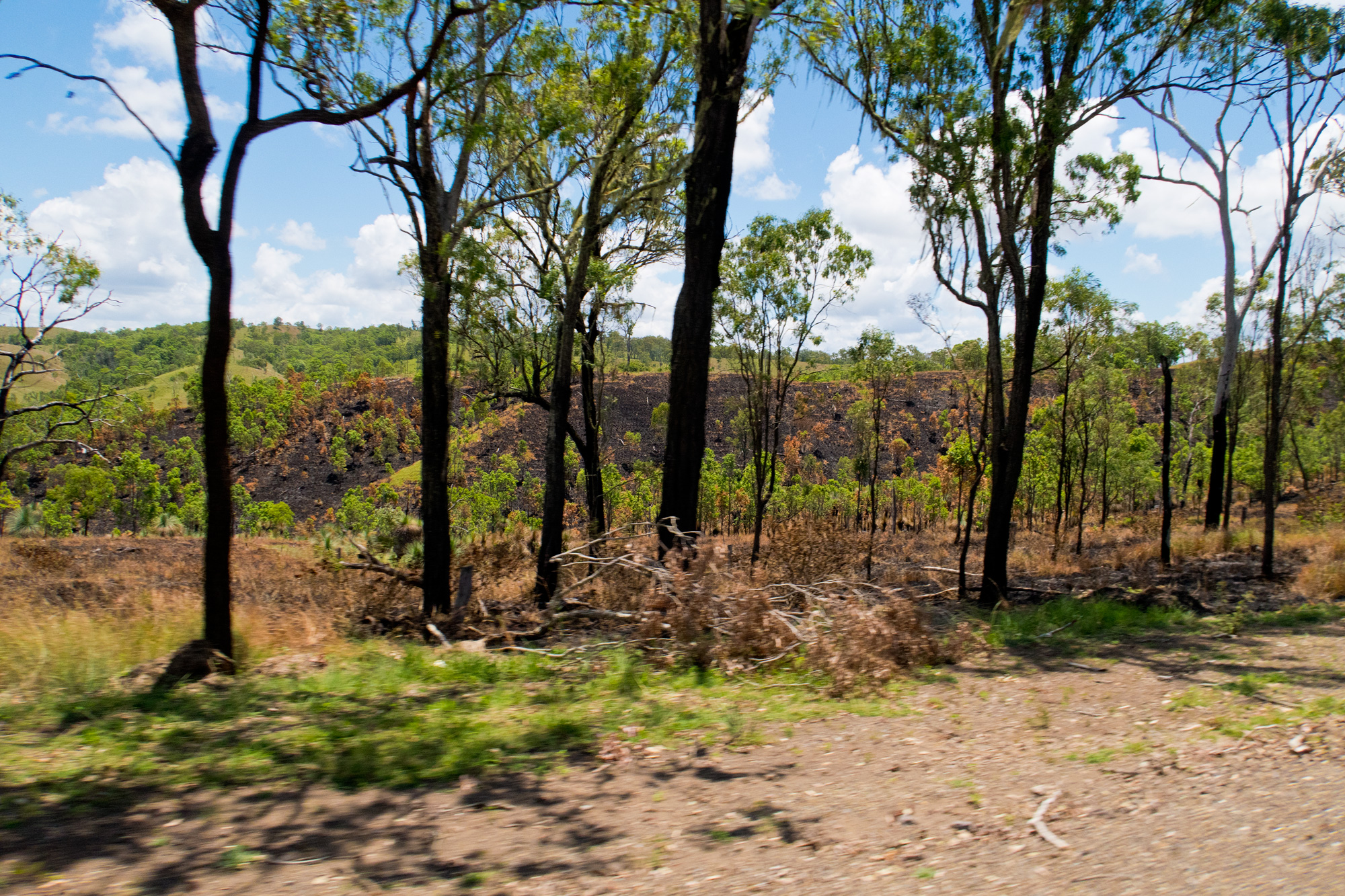 Once we were back onto the Western Branch Road it was definitely a lot greener after the recent rains but it was also a lot blacker with burnt out sections. It was very interesting seeing the blackened landscape with the hyper colour green regrowth.