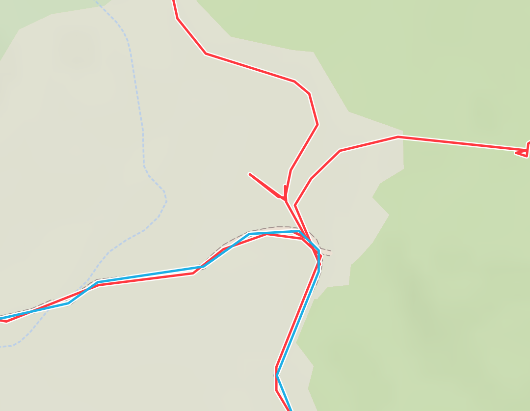 Red was our 2020 route in the area while the blue was our 2025 route.
