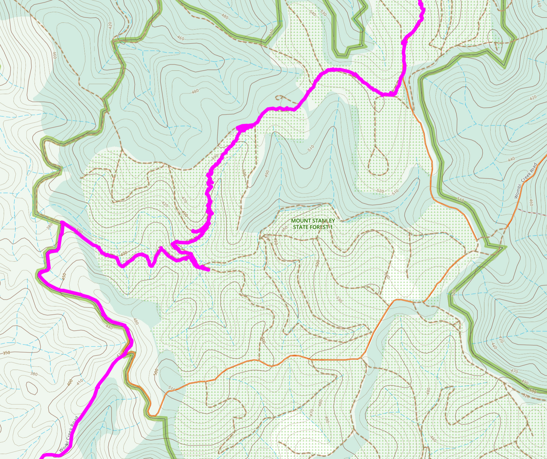 Mount Stanley State Forest (Pine Forest Section). The route we took is in purple.